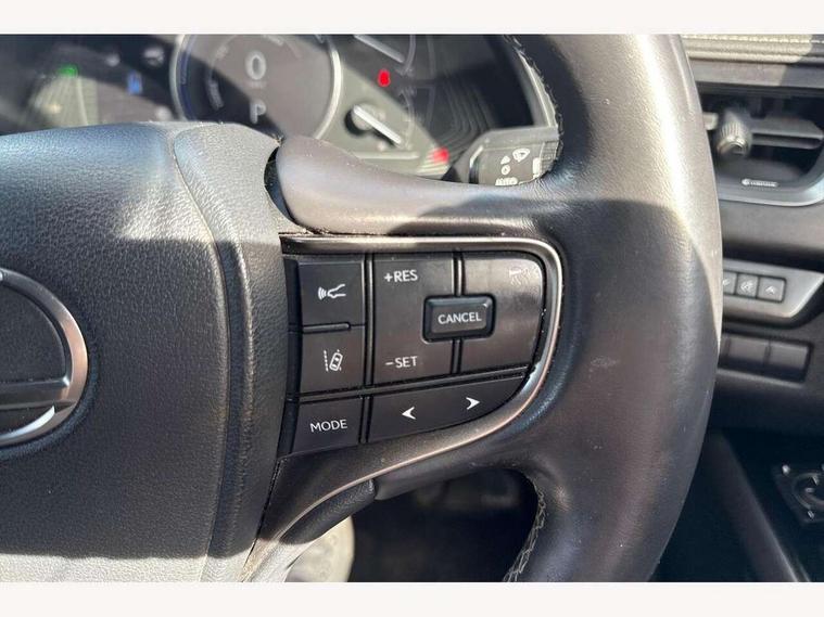 4 driving modes EV/Eco/Normal/Sport, 7" Lexus media display, 7" TFT instrument cluster, Analogue clock with GPS function, Apple car play/Android Auto, Compatible mobile phone bluetooth with audio streaming, E-call, Electric power steering (EPS) with speed sensitive features, Lane change flasher function, Lexus link connected services, Lexus navigation system, Lexus safety systems + includes dynamic radar cruise control, pre collision system day and night, lane tracing assist, road sign assist, Push button start, Remote touch interface, Reversing camera with back guide lines, Trip computer, Vehicle Dynamics Integrated Management (VDIM), Vehicle Stability Control (VSC), 2 front USB and 2 rear USB charging points, 6 speakers, AM/FM and DAB radio, AUX socket with VTR compatibility, CD player, Acoustic windscreen, Aero stabilising arch mouldings, Aero stabilising rear lights, Aero ventilated wheels, Aluminium roof rails, Bi-LED (low and high beam) headlights with Auto High Beam (AHB), Body adhesive, laser screw welding and laser brazed roof structure, Electric adjustable/heated door mirrors, Front and rear one touch power windows, with anti-jam protection, Headlight cleaners, LED daytime running lights, LED front and rear fog lights, LED tail lights, Light green UV glass, Rain sensor windscreen wipers, Rear wiper, Shark fin roof aerial, Single hidden exhaust pipe, Towing preparation, 12V accessory port centre console and luggage compartment, 2 cup holders in the front and rear centre console, 2 x folding shopping bag hooks in boot, 2 x sun visors with vanity mirror and lamp, 4 x tie down hooks in the boot, 5 headrests, 6 way driver and passenger manually adjustable front seats, 60/40 split folding rear seat, Card holder installed in driver and passengers sun visors, Centre armrest with storage, Driver and passenger door pocket, Dual zone electronic climate control + Nano-E humidity sensor, Glovebox, Leather gear lever, Leather steering wheel, LED interior illumination, Map pockets in the rear of passenger's front seat, Premium fabric upholstery, Rear air vents with 2 USB chargers, Rear armrest with 2 cupholders, Storage tray under audio panel, Textile carpet mats, Tilt/reach adjustable steering column, Under deck storage, Under desk side storage, 2 x Isofix child rear seat restraints, 3x3 point rear seatbelts, Anti-lock braking system (ABS), BAS (Brake Assist System), Driver and front passenger 2 stage airbag, Driver and front passenger knee airbag, Driver/front passenger side airbags, EBD - Electronic brakeforce distribution, ECB (Electronically Controlled Brake System), Electric parking brake, Front adjustable seatbelt anchor points, Front and rear curtain shield airbags, Front outer seatbelt+pre-tensioners, force limiter+tension reduction: 3-point with active safety link to PCS, Hill start assist control (HAC), Passenger airbag cut-off device, Rear outer seatbelt+pre-tensioners, force limiter+tension reduction: 3-point with active safety link to PCS, Centre belt w/o pre tensioner+force limiter, Secondary Collision Brake (SCB), TRC (Traction Control), Tyre pressure warning, 2 x remote key fobs, Anti theft system : Alarm instruction sensor, glass breakage sensor and engine immobiliser, Locking wheel nuts, Remote central door locking, Speed sensitive auto door locking, Two motion door lock with double lock, VIN Window etching, 17" alloy wheels, Tyre repair kit,