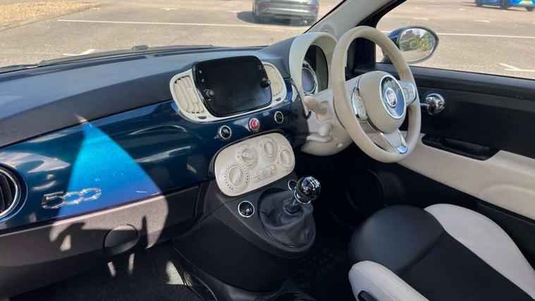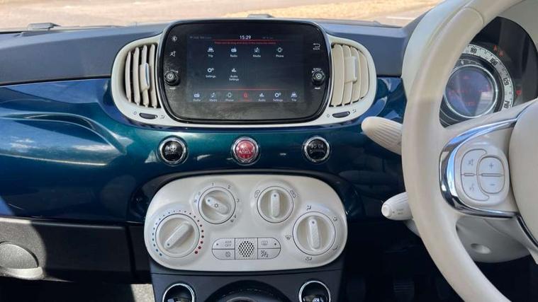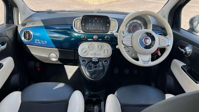 Apple car play/Android Auto, Cruise control, E-call, External temperature gauge, Power assist steering, Rear parking sensor, Speed limiter, Stop/start system, Trip computer, 4 speakers, 7" HD Touchscreen Radio, Bluetooth, USB and DAB, Rear speakers, 3rd brake light, Auto headlights, Body colour bumpers, Body coloured electrically adjustable door mirrors, Chrome plated exterior door handles, Dolcevita badge on fender, Dusk and rain sensors, Electric front windows, Fixed glass sunroof with sunblind, Front fog lights, Halogen headlamps, Heat insulated glass, Heated rear windows with wash wipe, LED daytime running lights, Rear side wing doors, Rear wiper, 1 passenger grab handle, 2 seat bench in second row, 50/50 split folding rear seats with height adjustable rear headrests, Air conditioning, Auxilliary 12V power socket, Chrome kit, Front headrests, Height adjustable drivers seat, Height adjustable steering wheel, Isofix child seat preparation, Single front passenger seat, Techno leather steering wheel with audio controls, 7 airbags - Driver, passenger, side, window and drivers knee airbags, ABS/EBD, ESC + ASR/MSR + HBA + Hill holder, Passenger airbag deactivation system, Traction control, Tyre pressure monitoring system, Automatic door locking, Immobiliser, Locking fuel filler cap, Remote central locking, 15" Alloy wheels,