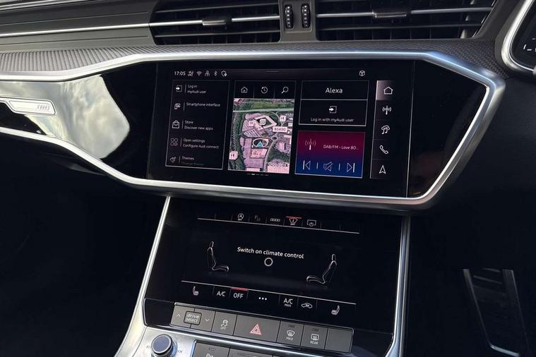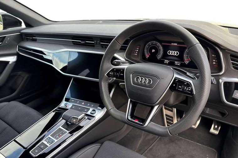 Audi connect safety and service (e-call), Audi connect with Amazon Alexa Integration, Audi drive select, Audi parking system plus - acoustic and visual park assist system for front and rear, Audi virtual cockpit, Automatic start/stop system with coasting functionality, Bluetooth interface, Camera based traffic sign recognition, Lane departure warning system, MMI navigation plus with 10.1" and 8.6" touch screens, Power operated tailgate, Progressive steering, Rear view camera, Service interval indicator, Smartphone interface includes wireless Apple carplay/Android Auto, Voice control system, Sports suspension, Audi front music interface, Audi sound system, Auxiliary input socket, DAB Digital radio, USB connection, Audi beam, Black roof rails, Body colour rear roof spoiler, Electric front/rear windows, Electrically adjustable heated and folding + automatically dimming exterior mirrors with memory function, Frameless auto dimming interior rear view mirror, Front intermittent wipers, Heat insulating darkened glass in side and rear windows, Heat insulating glass in windshield, LED rear lights with dynamic indicators, LED signature front daytime running light, LED third brake light, Matrix LED headlights, Matt black rear diffuser with diffuser strip and tailpipes in chrome, Matt black side air intake grille with inlay in matt aluminium, Omission of output/technology badging, Privacy glass, Radiator grille in anthracite black matt, single frame in chrome and horizontal struts in matt aluminium silver, Rain and light sensors, Rear side wing doors, Rear wiper, 2 zone deluxe electronic climate control, 40/20/40 split folding 3 rear seat bench in 3 parts with rear centre armrest, Audi phone box light, Black cloth headlining, Electrically adjustable front seats including seat height, fore/aft position, backrest angle and 4-way lumbar with memory for driver's seat, Front and rear floor mats, Front centre armrest, Front head restraints, Heated front seats, Height/reach adjust steering wheel, Illuminated door sill trims with S logo, Illuminated sun visors with vanity mirrors, Leather gear knob, Luggage compartment system, Rear headrests, Single front passenger seat, Stainless steel pedals and foot rest, Tool kit and car jack, Black styling package plus - A6 Black edition, LED Interior Ambient Lighting Pack - A6, Non smoking pack - A6, S line exterior style pack - A6, 3 point seatbelts on all seats, Airbags - Front side, front and rear including head, Audi pre-sense front, EBD - Electronic brakeforce distribution, Electromechanical parking brake, Electronic Stability Control (ESC) including ABS, ASR and EDL, Extended pedestrian protection measures, ISOFIX child seat mounting for front passenger seat and ISOFIX child seat mounting with Top Tether for outer rear seats, Manual child proof rear door locks, Seatbelt monitoring, Tyre pressure warning light, Warning triangle and first aid kit, Anti theft alarm with tow away protection, Anti-theft wheel bolts and wheel loosening detection, Immobiliser, Keyless Go, Remote central locking, Carbon twill inlays,