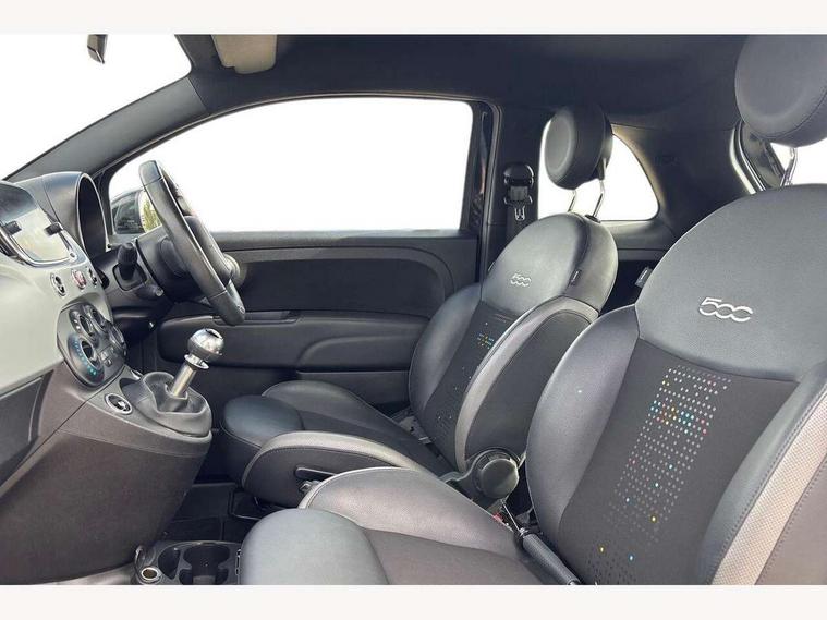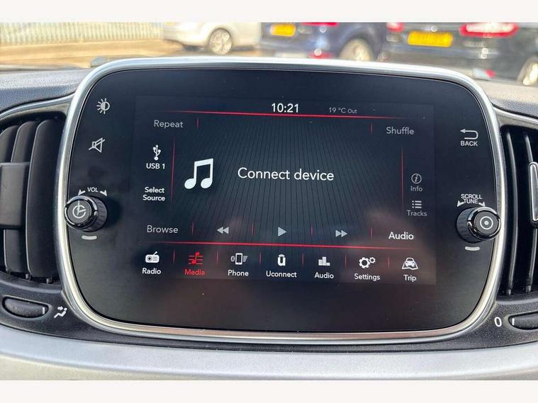 Adhesive skin for nest hub customized with 500 logo, Apple car play/Android Auto, Cruise control, External temperature gauge, Google nest hub with 7" smart display integrated with Google Assistant, digital portrait, smart home control, connected and controllable by voice, Google specific splash screen, Google welcome letter, Mopar connect services, Power assist steering, Rear parking sensor, Speed limiter, Stop/start system, Trip computer, 4 speakers, Rear speakers, Body colour electric adjustable door mirrors with defrosting / external temperature sensor, Body colour sports bumpers, Chrome plated exterior door handles, Dusk and rain sensors, Electric front windows, Front fog lights, Google specific exterior details with B-Pillar Google themed decal and Hey Google logo on fender, Halogen headlamps, Heat insulated glass, Heated rear windows with wash wipe, LED daytime running lights, 1 passenger grab handle, 50/50 split folding rear seats with height adjustable rear headrests, Auxilliary 12V power socket, Black door panel, Black pillars cover colour, Black techno leather steering wheel with audio controls, Front headrests, Google bag, Google key cover customized with 500 logo, Google specific interiors unique fabric seats upholstery, Google themed centre inserts, Height adjustable drivers seat, Height adjustable steering wheel, Isofix child seat preparation, Sports kit with top rear spoiler, side skirts and chrome exhaust, 7 airbags - Driver, passenger, side, window and drivers knee airbags, ABS/EBD, ESC + ASR/MSR + HBA + Hill holder, Passenger airbag deactivation system, Traction control, Tyre pressure monitoring system, Automatic door locking, Immobiliser, Locking fuel filler cap, Remote central locking, Silver matt dashboard with 500 logo silver,