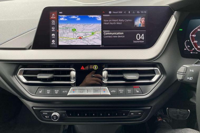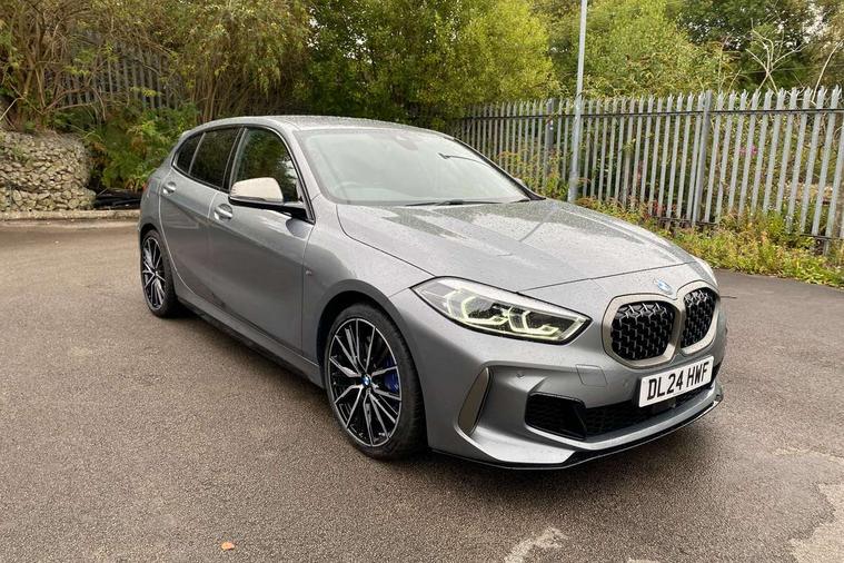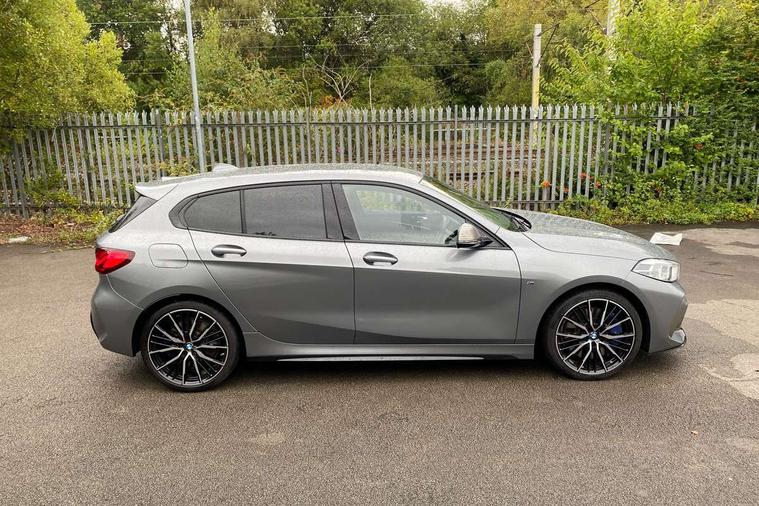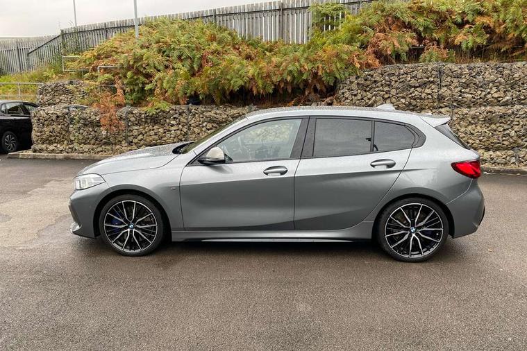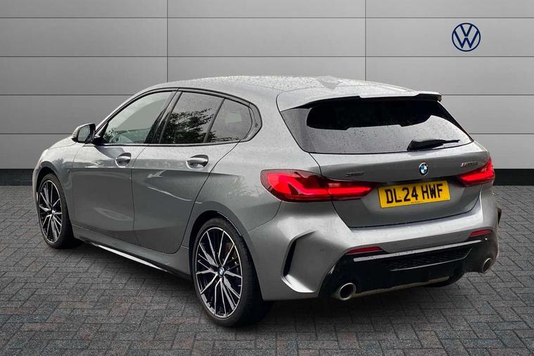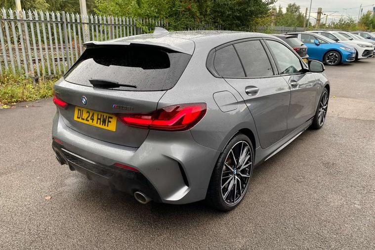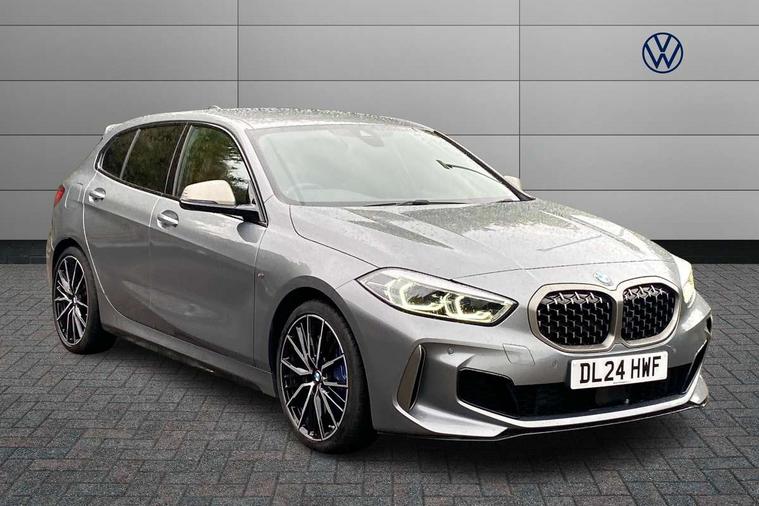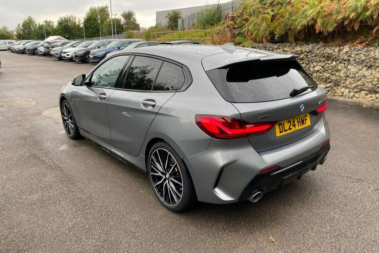 Active guard plus, Attentiveness assist, BMW ConnectedDrive online services, BMW Teleservices, Check Control warning system for monitoring of lights and door/luggage compartment open warning, Cruise control with speed limiter, Eco pro mode, Electric power steering, Electro hydraulically controlled multi-plate clutch transfers drive to rear axle and with power take-off device located on the front differential., Energy efficient operating strategy, Front axle single joint with specific axle kinematics to minimise drive influences on steering + provide increased rigidity agile driving behaviour, Gearshift time display in manual mode, Integrated owners handbook, Lane departure warning system, M Sports steering with M135i xDrive specific settings, Oil sensor for level and grade, On board computer, Optimum shift indicator, Personal Profile, Pull away assistant, Rigidly mounted rear subframe - Multi link construction with separate spring / damper configuration and excellent driving characteristics, Speed limit Info including no-overtaking indicator, Sporty fast gear shifting in sport mode, Aluminium lightweight construction, Anti roll bar front and rear, Balancer shaft, Double VANOS, Drive Performance Control, Eight speed sport automatic transmission with gearshift paddle switches, Electronic differential lock, Electronic selector lever, Engine cover with M performance designation, High precision injection, Larger fuel tank capacity (50 litres), Launch control, M135i specific heavily de-throttled engine intake air guide, M135i specific high-performance cooling package, M135i specific larger turbocharger with integrated divert-air valve, Petrol Particulate Filter, Twin tube gas filled shock absorbers with degressive characteristic curve, VALVETRONIC engine management, Variable, stepless and infinitely adjustable distribution of drive torque between the front and rear axles, xDrive intelligent all wheel drive with M135i specific reinforced components, DAB Digital radio, Auto dimming rear view mirror, Automatic headlight beam throw control, Automatic windscreen wipers and automatic headlight, Body colour door handles, Body colour roof trims, Cerium grey exterior mirror caps, Direction indicator side lights in exterior mirrors, Electrically adjustable exterior mirror with mirror adjustment switch on drivers armrest and aspheric on driver side, convex on passenger side, Exhaust tailpipe, Cerium Grey with bevelled finish - twin, round 100mm, left and right split, Fading support, Folding side mirrors with auto dimming/folding wing mirrors with auto dimming, Follow me home headlights, Front and rear bumper system with replaceable deformation elements, Front and rear electric windows with open and close fingertip control, anti trap facility and comfort closing, Front door sill finishers with M135i designation, Green tinted heat protection glazing, High gloss shadowline window frame, Recess cover mirror frames and B/C pillar embelisher trim, High level third brake light, Integrated front windscreen with washer jets, Kidney grille frame in Cerium Grey with Mesh design, LED daytime running lights, LED eyebrow turn indicators, Lightweight engineering, M logo designation side in cerium grey, M Performance exhaust system with valve control and minimised exhaust back pressure, M Performance specific setup, M Sport spoiler, Matt black air guide grilles, Matt black wheel arch trim, Model designation on electric bootlid includes xDrive designation for M135i xDrive, Nearside reverse light in rear light cluster, Preparation for high beam assistant, Rear fog lights, Rear side wing doors, Rear window wiper, Reinforced crank drive, new pistons and adapted con rods, Shark fin antenna, Trailer stabilisation logic, Visible VIN plate, Welcome lighting, 12V power socket in front centre console with blanking plug, 3 rear seat head restraints, 3 seat bench in 2nd row, 3 spoke sports leather steering wheel with black leather and stitching, pearl chrome decorative finish, specific M Badge, Anthracite headlining, Black boot net with lashing eyes, Cargo function on 2nd seat row, Child seat ISOFIX attachment for two outer rear seats and front passenger seat with anchorage points, Conditioned based service, Driver and front passenger backrest net on rear, Driver and front passenger seat heating, Driver side folding compartment in instrument panel, Folding rear clothes hook, Four grab handles integrated in roof lining, Front and rear door pockets with bottle holders, Front and rear side armrest integrated into door trim, Front armrest, Front M sports seats, Glove compartment, Height adjustable front head restraints, Luggage compartment for bag hooks on left and right, foldable luggage compartment liner and four lashing eyelets, Manual adjust steering wheel, Multi-function controls for steering wheel, Single front passenger seat, Storage compartment in centre console, Storage compartment in luggage compartment, Stowage of the parcel shelf in luggage compartment trim, Sun visors with vanity mirrors and insert tab, Two front centre console cupholders, Two zone automatic air conditioning, Type C two USB ports in rear centre console, Velour floor mats, Additional interior lighting pack - 1 Series M135i, BMW live cockpit professional pack- 1 Series, Connected pack professional - 1 Series, Interior lights pack - 1 Series, M Sport exterior styling aerodynamics pack - 1 Series 135i, 2 tone horn, 3 point seatbelts on all seats, front pyrotechnic belt tensioners, stopper and belt force limiters, rear coded belt buckles, Airbags - Front driver/passenger, front and rear curtain head protection, front side, manual deactivation of front passenger airbag, Anti lock braking system (ABS) with brake assist, BMW emergency call, Brake drying, Braking readiness, Child proof locking system in rear door, City braking function, Comfort modes, Cornering brake control, Crash sensor activating of airbags, Unlocking doors, hazard warning lights, fuel cut off, 