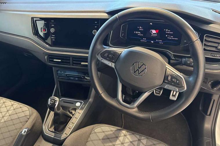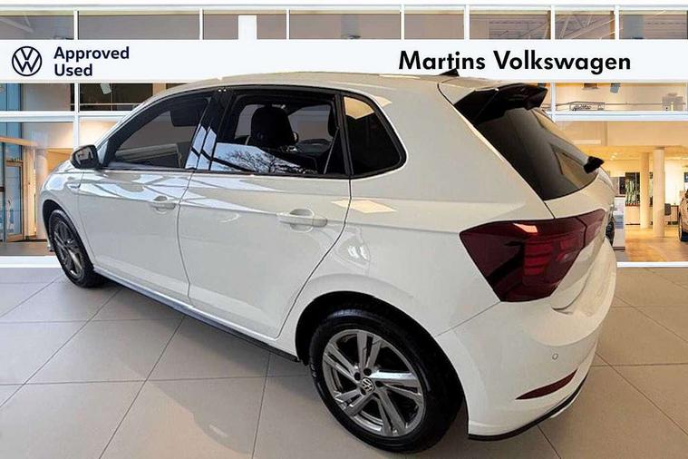 Advanced driver attention and drowsiness monitor, Bluetooth mobile phone interface, Digital Cockpit Pro with 10.25" Display, Dynamic road sign display, Emergency call service, Multifunction camera, Power assisted speed sensitive steering, Predictive adaptive cruise control without follow-to-stop and speed limiter, Preparation for We connect and We connect plus, Speedo and rev counter, electronic odometer, trip, service interval display and fuel gauge, Standard rear axle, Travel Assist - Lane keeping system and traffic jam assist, Travel assist including emergency assist, Trip computer, Warning signal and warning light for front and rear seatbelts not fastened, Washer fluid level indicator, Wireless app connect, Front wheel drive, Rear shock absorpion, Start-stop system with battery regeneration (recuperation - energy recovery during braking), DAB Digital radio, Diversity antenna for FM reception, Front and rear 6 speakers, Body colour bumpers, Body colour door handles, Electric front windows, Front scuff plates with R-Line logo, Heat insulating darkened glass in side and rear windows, Heat insulating glass windscreen, Power folding adjustable/heated exterior mirrors and front passenger exterior mirror lowering function, Rear electric windows, Rear fog light, Rear side wing doors, Rear windscreen washer and wiper with interval delay, Third brake light, 12V power socket in centre console, 2 USB-C ports in the front, 2 USB-C charging sockets on the center console in the rear, 3 rear head restraints, 60/40 split folding rear seat and rear seat bench not split, Air care climatronic air conditoning system with active combination filter and 2-zone temperature control, Black roof lining, Carpet mats, front and rear, Chrome plated radiator grille inserts, air vent surrounds and light switch surrounds, Door and side trim panel, Driver and front passenger seat height adjustment, Driver/passenger sunvisors with illuminated vanity mirrors, Front centre armrest, Front footwell illumination, Front seat backrest storage pockets, Front sports comfort seats, Handbrake lever handle in leather, Headliner in recycled material, Isofix child seat preparation easy-fit (for two outer rear seats, and front passenger seat) compatible with I-size, Karoso artvelours cloth upholstery, Leather trimmed gear knob, LED interior light with switch off delay and dimmer, 2 reading lights front and rear, Luggage compartment cover, Luggage compartment floor, Luggage compartment lighting, Lumbar adjustment for front seats, Multifunction steering wheel, Single front passenger seat, Stainless steel pedals, Standard pedal cluster, Light and sight pack - Polo R-Line/Black Edition, 3 point height adj front seatbelts + pretensioners, 3x3 point rear seatbelts, ABS, Driver and front passenger airbag with front passenger airbag deactivation, Drivers and front passengers safety optimised head restraints, ESC (Electronic stability control) + EDL (Electronic Differntial lock) and ASR (Traction control), Extended and predictive pedestrian/ cyclist protection, Front curtain and side airbags with center airbag, Hill hold control, Manual child lock in rear doors, Single tone horn, Tyre pressure loss indicator, Alarm with interior protection, Anti-theft alarm system with interior monitoring, backup horn, and towing protection, Anti-theft wheel bolts, Electronic engine immobiliser, Chrome applications on rotary light, mirror adjustment, window regulator switches, outlet with frame in black, Dark grey anodised matt decorative inserts in dash and front door panels, 16" Valencia alloy wheels, Low rolling resistance tyres,