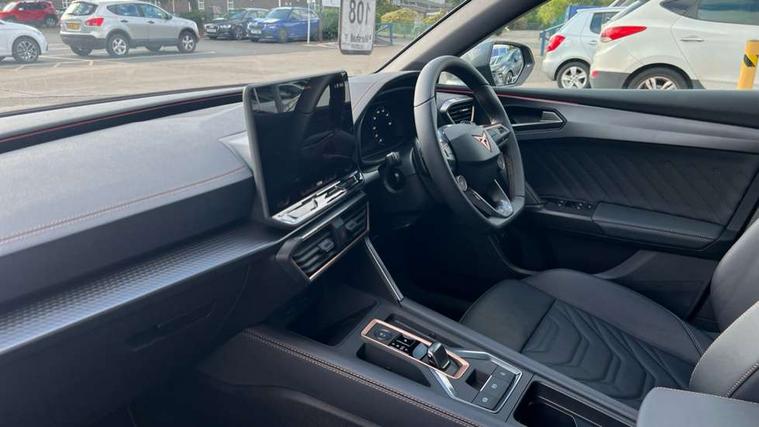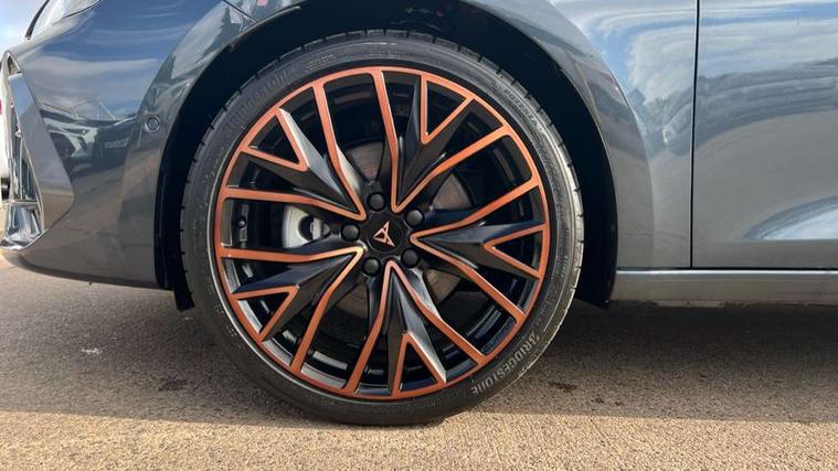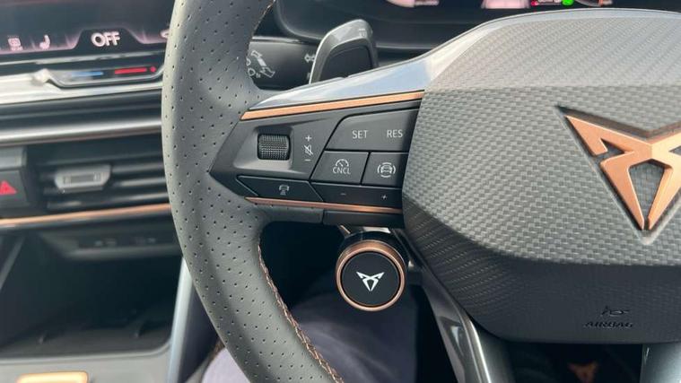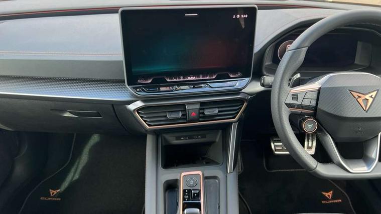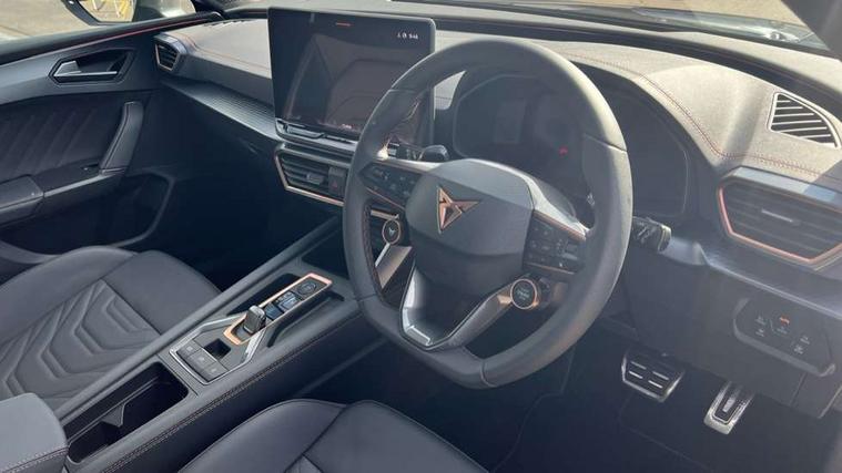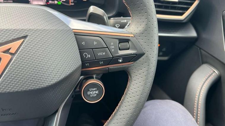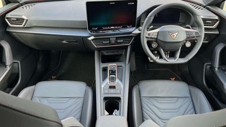 Adaptive cruise control with follow-to-stop and speed limiter, CUPRA drive profile selection with (Comfort/Performance/Individual), throttle response and gearshift mode, Digital cockpit, Driver alert system, Dynamic road sign display, E-call, Four x USB Type C ports (2 in front and 2 in rear), Front and rear parking sensors, Front assist with forward collision warning braking reaction to vehicles, pedestrians and cyclists, Front cross traffic assist, Full link smartphone integration with Mirror Link, wireless Apple CarPlay and wired Google Android Auto, Intelligent park assist, Lane change assist with emergency assist, Lockable tailgate, Rear view camera, RPM, trip computer, outside temp gauge, instrument light brightness, low fuel warning light, lights on reminder, gearshift indicator, Service interval indicator, Side and exit assist, Start/stop system with regenerative braking, Virtual pedal with electric tailgate, Wireless phone charger, Auxiliary input socket, Auto dimming rear view mirror, Body colour door handles, Body coloured bumpers, Cupra sports bumpers, Dark tinted rear windows, Electric front/rear windows, Electrically adjustable, heated and folding door mirrors, Gloss black roof rails, High beam assist, LED front fog lamps with cornering function, LED headlights with dynamic turn signals, tail lights, rear fog lights with rear coast to coast lighting, LED rear fog lamp, Rain sensing wipers, Rear diffuser with black simulated exhaust pipes, Rear side wing doors, Rear wash/wipe, Separate daytime running light with automatic headlight control and coming home feature, Third brake light, Welcome light with logo projector in door mirrors, 12v power supply in centre console, 3 seat bench in 2nd row, 5 headrests, 60/40 split rear bench seat with armrest, Ambient lighting (glovebox, footwell, ambient lighting multicoloured), Black headlining, Cupra sports pedals, CUPRA Supersports, heated steering wheel with satellite buttons, Electrically adjustable driver seat and lumbar support with memory function + manually adjustable passenger seat, Front and rear reading lights X 4, Front centre armrest, Heated front seats, Height/reach adjust steering wheel, Illuminated interior front door sills, Interior wraparound lighting, ISOFIX points in outer rear seats with top tether anchorage points, Leather upholstery, Single front passenger seat, Sliding boot cover, Storage pockets on rear of front seats, Sunvisors with illuminated mirror, Three zone climate control, Dynamic and comfort pack - Leon Cupra, Media system plus with 12.9" display + navigation pack - Leon Cupra, 3 point seatbelts on all rear seats, ABS, Brake control system - ESC and brake booster, Child proof door locks, Cupra black brake calipers, Disc brakes in front, Driver and front passenger airbags with front passenger airbag de-activation, front side and curtain airbags, Electronic parking brake, Hill hold control, Pre-crash front and rear seat belt tensioner, window closure and hazard lights, Rear disc brakes, Seat belt reminder for front and rear seats, Tiredness recognition system, Tyre pressure monitoring system, Anti theft alarm system with interior monitoring in cab, backup horn and towing protection, KESSY Advanced - Keyless start, keyless entry, Locking wheel bolts, Chrome and copper interior detailing, Tool kit,