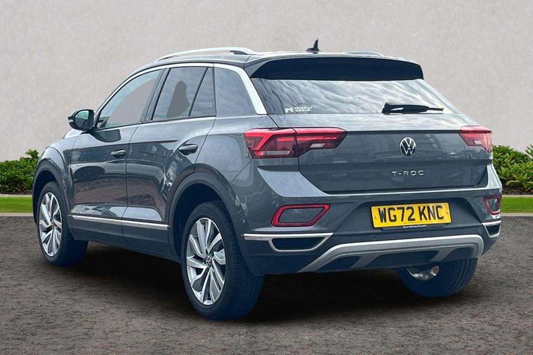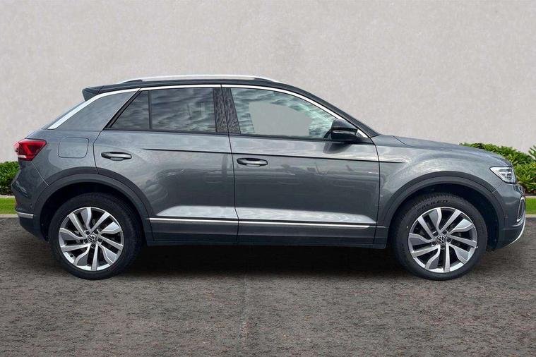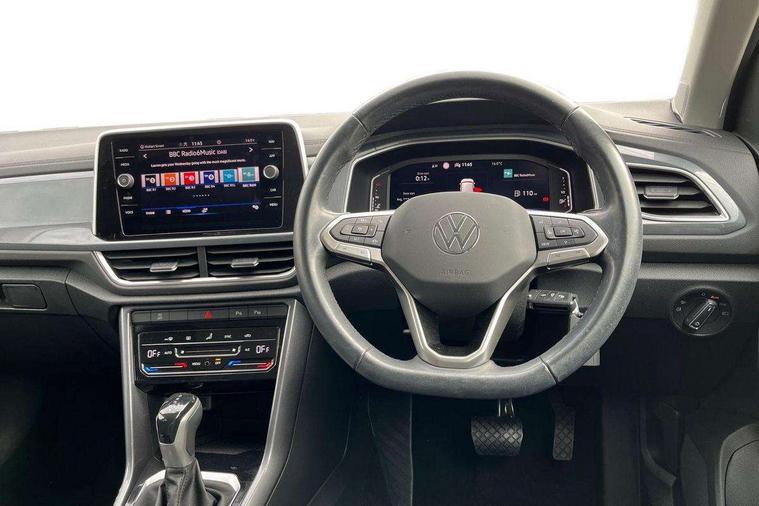 10.25" Digital cockpit pro, Bluetooth mobile phone interface, Driver alert system with fatigue detection, Driver tips and journey analysis, Emergency call service, Lane keeping system Lane Assist, Modified key software - reduce switch off time for key status change to Long no motion, Online services, Park assist including front and rear parking sensors, Service interval indicator, Tailgate/trunk lid release from outside, Think blue trainer driver tips and journey analysis, Warning sound and light for front seatbelts unfastened, Wireless app connect, Battery regeneration during braking, Start/stop function with battery regeneration, Diversity antenna for FM reception, Front and rear 6 speakers, Music playback - MP3, WMA and AAC files, Premium USB cable in choice of either Apple or Android smartphone compatibility, SD card slot, Simultaneous pairing of 2 compatible mobile devices, Title and cover art display, We Connect and We Connect Plus functionality, 3rd brake light, Auto dimming interior rear view mirror, Automatic hazard lights activation under emergency braking, Automatic headlight control with LED separate daytime running lights with coming/leaving home function, Body colour sports bumpers with silver metallic underbody fascia, Dynamic headlight range control with self adjusting whilst driving, Extended roof spoiler, Exterior mirrors aspherical on driver side, convex on front passenger side, External USB type C socket and charging sockets, Front windscreen wiper with intermittent wipe and 4 position delay, Heated rear window, LED Plus headlamps, LED rear combination lamps, LED rear number plate lights, LED tail lamp rear comination lamps, Light mode for poor weather, rain, fog or snow, Power windows with comfort operation and circuit breaker, Rain sensor, Rear exhaust tailpipe, Rear fog light on one side and reversing lights on both sides, Rear side wing doors, Rear wash/wipe with intermittent wipe setting, Remote electrically foldable door mirrors, puddle lights and reverse activated passenger's door mirror, 12V power socket in centre console, 3 rear head restraints, 3 seat bench in 2nd row, 4 load lashing points in luggage compartment, Air care climatronic air conditoning system with active combination filter and 2-zone temperature control, Chrome plated radiator grille inserts, air vent surrounds and light switch surrounds, Door and side trim panel with leatherette insert, Drawer under drivers seat, Front + rear carpet mats, Front centre armrest, Front comfort sports seats, Front cupholders x 2, Front footwell illumination, Instrument lighting, white adjustable panel illumination, Interior ambient lighting and surround lighting, Interior light delay, Isofix child seat preparation, Leather gearshift handle, LED interior light with switch off delay/dimmer and 2 front/rear LED reading lights, Load-through provision with cup holder when folded down ('Unsplit rear seat bench, split folding backrest, with centre armrest), Luggage compartment lighting, Non-folding front passenger seat backrest, Single front passenger seat, Storage compartment in left and right luggage area, Storage compartment in rear doors, Storage compartments in driver and front passenger doors, Sunvisors with illuminated vanity mirrors, Variable boot floor, height adjustable and removable, Driver assistance pack without proactive passenger protection - T-Roc, 3 point height adj front seatbelts + pretensioners, 3 point seatbelts in outer rear with ECE label, ABS, Child locks on rear doors, Driver and front passenger airbag with front passenger airbag deactivation, Driver and front passenger safety-optimised head restraints, Drivers seatbelt reminder, Electronic parking brake, Electronic Stability Control (ESC) inc EDL (Electronic Differential Lock) and ASR (Traction Control), Front and rear passengers curtain airbag system including front side airbags, Front assist with city emergency braking and pedestrian monitoring, Front seat side impact airbags, Predictive pedestrian protection, Rear disc brakes, Single tone horn, Tyre pressure loss indicator, Volkswagen roadside assistance, Alarm with interior protection, Anti-theft alarm system with interior monitoring, backup horn, and towing protection, Remote central locking with SAFELOCK, radio remote control with 2 remote control folding keys, Trims for alloy wheels,