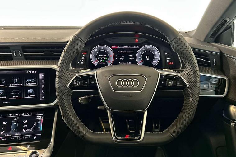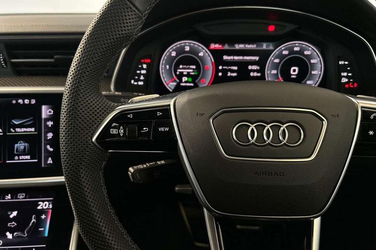 Audi connect safety and service (e-call), Audi connect with Amazon Alexa Integration, Audi drive select, Audi parking system plus - acoustic and visual park assist system for front and rear, Audi virtual cockpit, Automatic start/stop system with coasting functionality, Bluetooth interface, Camera based traffic sign recognition, Colour driver's information system display, Lane departure warning system, MMI nav plus with MMI touch + 10.1" and 8.6" HD haptic touch screen/3D city models/country information/online map/route info and personal route assist, Operating buttons in black, glass look with haptic feedback, Progressive steering, Rear view camera, Service indicator, Smartphone interface includes wireless Apple carplay/Android Auto, Voice control system, 22 litre AdBlue tank, Diesel particulate filter, Quattro on demand, Sports suspension, Audi music interface, Audi sound system with 6 channel amplifier, 180 watt amplifying capacity and 10 loudspeakers including subwoofer, Auxiliary input socket, DAB digital radio module, Audi beam, Audi rings, front and rear as well as A7 at the rear in black, Black rear diffuser with chrome inlays, Electrically adjustable heated and folding + automatically dimming exterior mirrors with memory function, Frameless auto dimming interior rear view mirror, Front and rear electric windows, Gloss black highlights on the exterior area of the Audi Single frame, Gloss black highlights on the front and rear bumpers, Gloss black highlights on the radiator grille, Gloss black highlights on the side windows trim strips, HD Matrix LED headlights, Heat insulating darkened glass in side and rear windows, LED rear lights with dynamic indicators, Omission of output/technology badging, Privacy glass with side and rear windows, Rain and light sensors, Rear side wing doors, Rear wiper, Retractable rear boot spoiler, S air inlet in titanium anthracite black, Signature LED daytime running lights, Towbar preparation, Windscreen with heat-insulating glass, 2 zone deluxe electronic climate control, 4-way electric lumbar support, 40/20/40 split folding 3 seater rear seat bench with rear centre armrest, Audi phone box light, Black cloth headlining, Electrically adjustable front seats - driver seat with memory, Front and rear headrests, Front centre armrest, Heated front seats, Height/reach adjust steering wheel, Illuminated door sill trims with S logo, Illuminated sun visors with vanity mirrors, ISOFIX child seat mounting and top tether in front and outer rear seats with front passenger airbag deactivation, Leather gear knob, Leatherette upper instrument panel and door shoulders, Luggage compartment lid, electrically opening and closing, S line front and rear floor mats with contrast stitching, Single front passenger seat, Stainless steel pedals and foot rest, LED interior ambient lighting pack - A7, Non smoking pack - A7, 3 point seatbelts on all seats, Audi pre-sense front, Driver and passenger airbags, Electromechanical parking brake, Electronic stabilisation control including ABS, ASR and EDL, Extended pedestrian protection measures, Hill hold assist, Manual child lock in rear doors, Seatbelt monitoring, Tyre pressure warning light, Warning triangle and first aid kit, Anti theft alarm with tow away protection, Anti-theft wheel bolts and wheel loosening detection, Immobiliser, Keyless Go, Preparation for tracking system, Remote central locking, Carbon twill inlays, 20" 5 segment spoke evo style Audi sport black matte diamond turned alloy wheels, Tool kit,