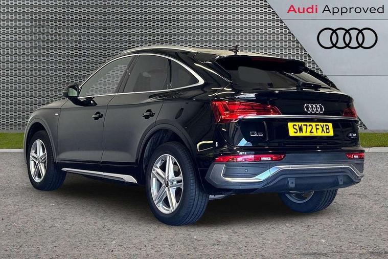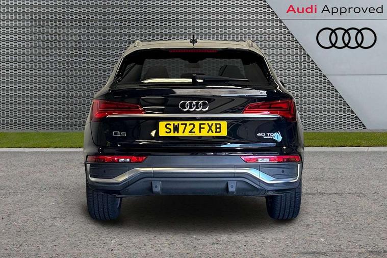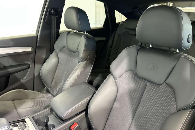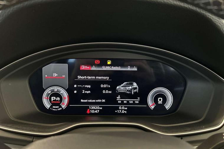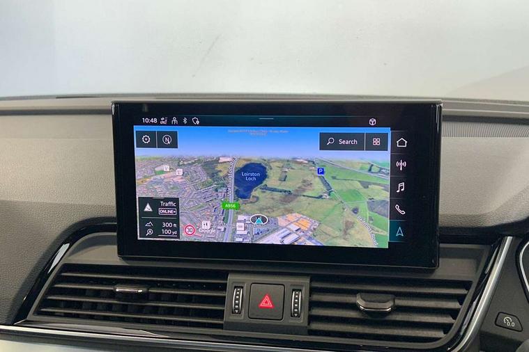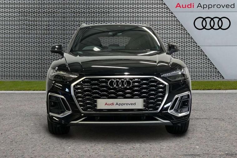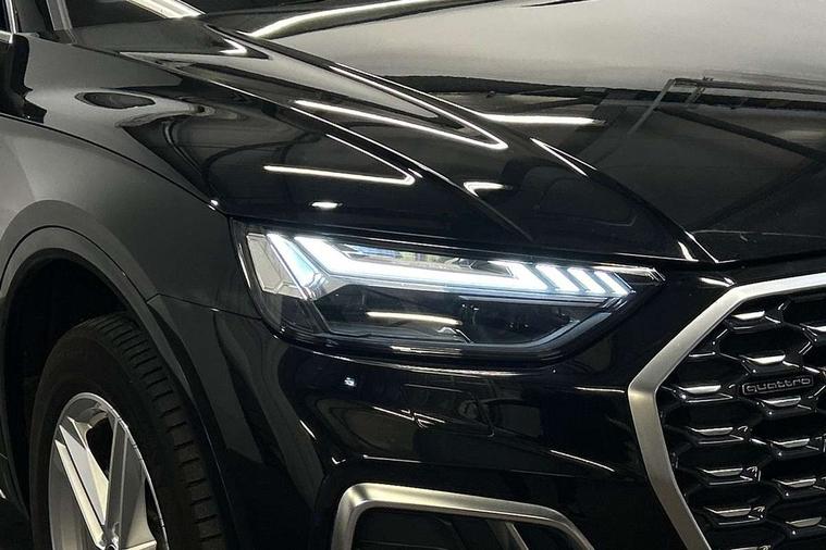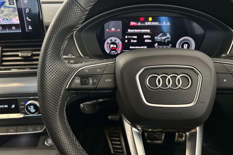Audi connect safety and service (e-call), Audi connect with Amazon Alexa Integration, Audi drive select, Audi virtual cockpit plus with 12.3" screen and three different layout designs, Audi wireless smartphone interface, Automatic start-stop system with coasting functionality and efficiency programme, Bluetooth interface, Electro - mechanical power assisted steering, MMI navigation plus with 10.1" touch screen, Power tailgate, Reversing camera, Service interval indicator, Voice control system with Audi hotword activation "Hey Audi", Diesel particulate filter, Quattro on demand, S line sports suspension, 2 x USB charging port with aux input socket, DAB Digital radio, Acoustic windscreen, Aluminium roof rails, Audi matrix LED headlights with dynamic front and rear indicators, Auto dimming door mirrors, Auto dimming rear view mirror, Automatic headlight adjustment, Automatic headlights and windscreen wipers, Body colour door mirrors, Body colour rear diffuser with matt aluminium silver surrounds, Body colour underbody protection, Chrome plated exhaust trims, Daytime running lights, Door sills in Selenite silver, Electric adjustable/heated/folding door mirrors, Front air inlet surrounds in aluminium, Front and rear electric windows, Front radiator grille in honeycomb design, Headlight washers, High level LED brake light, Lower bumpers painted in contrast Manhattan grey, Rear chrome trim strip below lights, Rear privacy glass and rear side windows, Rear side wing doors, Rear wiper, Roof bars, S Line badges on the front wings, S Line front and rear bumpers, S Line rear spoiler, S Line side skirts, 3 rear headrests, 40:20:40 split folding 3 rear bench seat in 2nd row with rear centre armrest, Black cloth headlining, Comfort front centre armrest, Contrast stitching on seats, steering wheel and gear lever gaiter, Deluxe 3 zone electronic climate control, Front head restraints, Front/rear floor mats, Gear lever in black leather, Heated front seats, Height/reach adjustable steering column, Illuminated door sill trims with S logo, ISOFIX child seat mounting and top tether, Manual seat adjustment with 4-way electric lumbar support, Removable luggage compartment floor, Single front passenger seat, Stainless steel pedals, Sunvisors with vanity mirrors, Trunk roller cover, High gloss pack - Q5, LED interior light pack - Q5, 3 point seatbelts on all seats, 6 airbags - Driver, front passenger, curtain and side airbags, Electrically operated child locks on rear doors, Electromechanical parking brake, Electronic stabilisation control including ABS, ASR and EDL, Front passenger airbag deactivation, Hill descent control, Hill hold assist, Multi collision brake assist, Pop-up bonnet for pedestrian protection, Pre sense city, Seat belt force limiter, Seatbelt monitoring, Tyre pressure warning, Warning triangle and first aid kit, Anti theft alarm, Anti-theft wheel bolts, Keyless Go access/ignition system, Remote central locking, Matt brushed aluminium inlays,