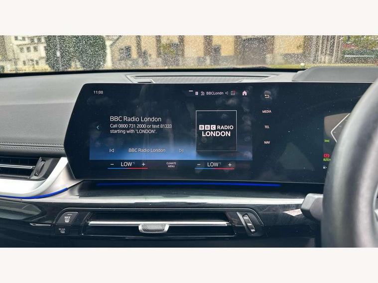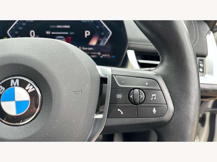 Active Guard + lane departure warning, speed limiting, front collision warning, Left turn warning with brake function and evasion assist, Attentiveness assist, BMW Live Cockpit Plus with 10.25" instrument cluster and 10.7" display, BMW Online services, BMW Teleservices, Brake pad wear indicator, Condition based service, Connected eDrive Services, Drive off assistant, Electrically opening/closing tailgate with opening/closing with remote control and contactless opening and closing, iDrive controller, Language version English, My Modes, Parking Assistant with Reversing Assistant, active PDC, Lateral Parking Aid, Rear View Camera and Park Distance Control, Personal Profile - automatic lock when driving away selectable, Servotronic PAS, Tyre puncture warning system, Widescreen display, Performance Control, Standard suspension, Steptronic transmission with double clutch, xDrive intelligent four wheel drive system, DAB Digital radio, Aluminium satinated roof rails, Badge on engine compartment lid and tailgate, BMW individual exterior line aluminium satinated window frame and window guide rail in front door/pillar trim/door mirrors in high gloss black, Contoured rear roof spoiler in vehicle colour with side aeroblades in black high-gloss, Dynamic brake lights, Electric adjustable heated door mirrors, Electric windows - front and rear, with open/close fingertip control, anti-trap facility and comfort closing, Follow me home headlights, Front bumper panel with air inlet in matt black, Front door exit lights, Front entry sills aluminium inserts with BMW inscription, Heated rear window, LED 3rd brake light integrated in rear spoiler, LED daytime running lights, LED number plate light, Mirror caps painted in contrasting colour dark grey, Radiator grille frame in aluminium matt, Radiator grille struts in aluminium matt, Rain sensor including auto headlights activation, Rear bumper panel with two L-shaped trims In pearl chrome, Rear side wing doors, Rear wiper, Roof trim strips painted in body colour, Trailer stabilisation logic, Welcome lighting, Windscreen washer nozzle for rear view camera, Windscreen wipers with front and rear heated washer nozzles, 12V - Power sockets with front centre console and luggage compartment, 2 cup holders in front, 2 x USB Type C ports for charging and data transmission (front centre console) and 2 x USB Type C ports for charging (rear centre console), 3 rear headrests, 3 seat bench in 2nd row, 3 upper retaining strap clips integrated into rear panels of seat backrests, 40:20:40 split folding rear seats, Ambient interior lighting, Anthracite Velour front and rear floormats, Bottle trays in all doors, Child seat ISOFIX attachment for two outer rear seats and front passenger seat with anchorage points, Clothes hook rear, Driver and front passenger heated seats, Dual zone automatic air conditioning, Front and rear door pockets, Front centre console storage compartment, Front sports seats, Front/rear adjustable head restraints, Glove compartment, Light on right in luggage compartment, Map pockets, Middle centre console storage compartment, Rear armrest in door trim panel, Single front passenger seat, Sport leather multifunction steering wheel with thumbrests and operation of instrument display, audio, telephone and driver assistance, Storage compartment with folding cover under centre console armrest cushion, Connected Package Professional - X1, ABS/EBD, Automatic hold function, Automatic Stability Control (ASC), Black belt painted in contrasting colour dark grey, BMW emergency call, Braking readiness, Cornering brake control (CBC), Crash Sensor - activates hazard/interior lighting + unlocks doors, Driver/Front Passenger airbags, Driver/front passenger side airbags, Dry braking, Dynamic stability control + (DSC+), Electromechanical parking brake, Energy recovery system, Front and rear brake discs, Front and rear head airbags, Front passenger airbag deactivation, Integrated brake system, PC iBrake PostCrash approach control warning with light braking function, Rear door child safety locks, Three point seat belts in all seats, Tyre pressure monitor, Warning triangle, Alarm system with tilt sensor, monitoring doors, bonnet interior and tailgate, Closing system with central locking, Locking wheel bolts, Luxury instrument panel, Tyre repair kit (including Tyre sealant and 12V Compressor),