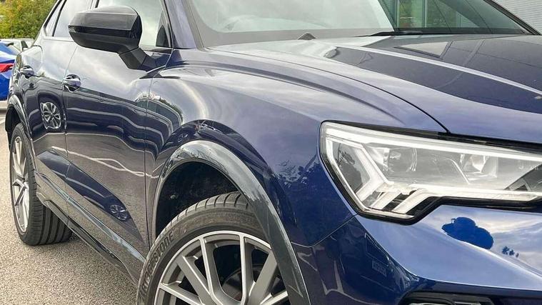 Audi connect safety and service, Audi drive select, Audi lane departure warning, Audi Virtual Cockpit - 10.25" display, Bluetooth interface, Camera based traffic sign recognition, Distraction and Fatigue warning, Legal emergency call, MMI Navigation Plus with high resolution 10.1 inch touchscreen colour display, Power operated tailgate, Progressive steering, Service interval indicator, Smartphone interface includes wireless Apple carplay/Android Auto, Start stop system with recuperation, Voice control system with natural language interaction, Diesel particulate filter, Sports suspension, 2 USB-C ports with charge and data functions, 6 passive loudspeakers, DAB digital radio module, Acoustic windscreen, Audi Beam uses LEDs to project the Audi logo onto the ground as you exit your Q3, Auto dimming door mirrors, Auto dimming frameless rear view mirror, Diffuser grille in grained matt black, Diffuser trim in selenite silver, Electrically folding, adjustable and heated door mirrors with integrated LED side indicators and kerb view function for passenger side, Front and rear electric windows, Front fog lights, Front underbody protection in manhattan grey paint finish, High gloss black finish B and C pillars, LED Dynamic rear indicators, LED headlights with LED daytime running lights, LED rear lights, LED third brake light, Privacy glass dark tinted rear and rear-side windows (from B-pillar backwards), Rain and light sensors, Rear side wing doors, Rear underbody protection in matt black, Rear wiper, S line front and rear bumpers and side skirts in contrasting Manhattan grey paint finish, Variable front intermittent wipers, 12V socket in rear centre console, 3 seat bench in 2nd row, 40:20:40 folding with manual adjustment for 60:40 forwards/backwards position and backrest angle, Adjustable rear seat bench/backrest with centre armrest and cupholder, Black cloth headlining, Dual zone electronic climate control, Electric lumbar support, Front and rear black floor mats with contrast stitching, Front and rear headrests, Front centre armrest, Height and reach adjustable steering wheel, Illuminated door sill trims with S logo, ISOFIX child seat mounting for front passenger with airbag deactivation and outer rear seat including top tether attachment point for outer rear seats, Luggage compartment sill protection in stainless steel, Manual front seats with height adjustment, Perforated leather gearknob, Single front passenger seat, Stainless steel pedals, Twin leather upholstery with front sport seats + S embossing, Black styling pack - Q3, Non smoking pack - Q3, 3x3 point rear seatbelts, 6 airbags - Driver, front passenger, curtain and side windows, Audi pre-sense front with pedestrain and cyclist recognition, Electrically operated child locks on rear doors, Electromechanical parking brake, Electronic stabilisation control including ABS, ASR and EDL, Front seatbelt reminder, Hill descent control, Hill hold assist, Pre sense basic, Seatbelt monitoring, Tyre pressure warning, Warning triangle and first aid kit, Anti theft alarm, Anti theft wheel bolts, Immobiliser, Remote central locking, Aluminium look interior elements, Detail dashboard around MMI touch colour display in glass look, black with surround in aluminium look, Leatherette door armrest, Piano black inlay,