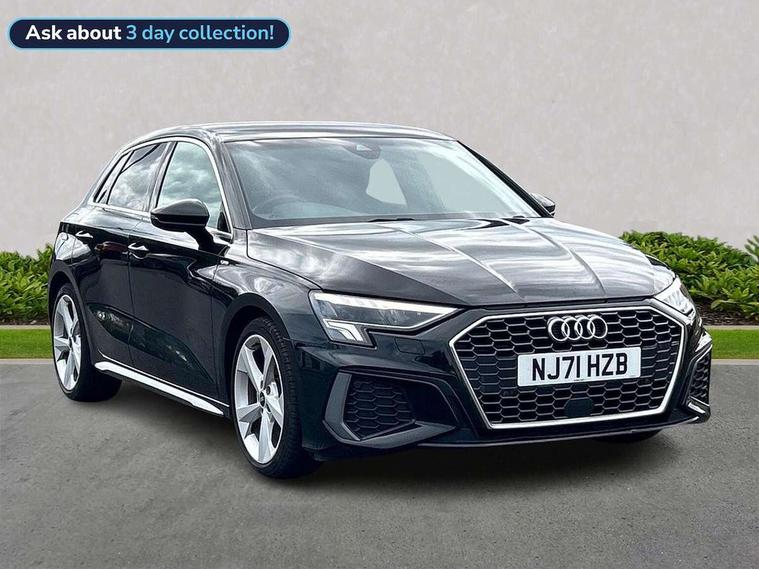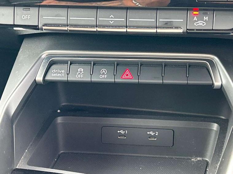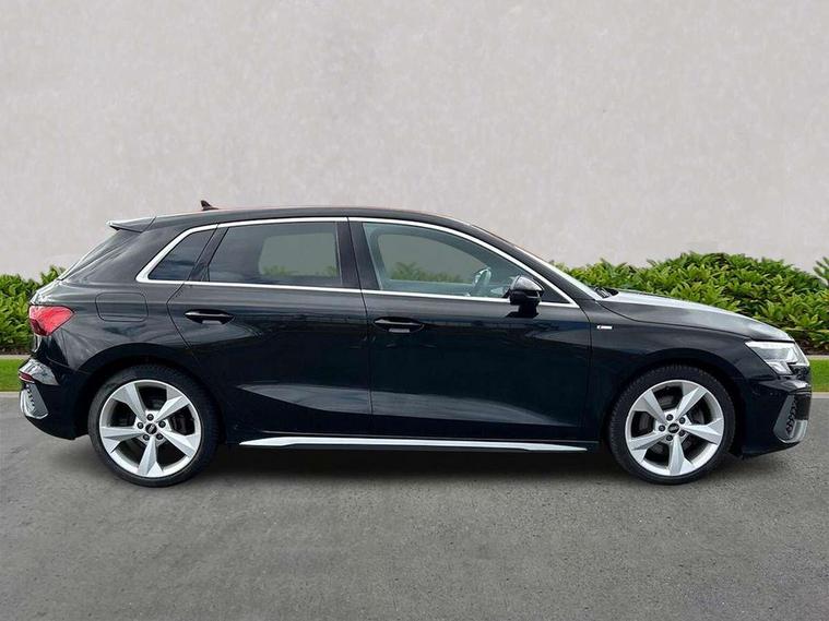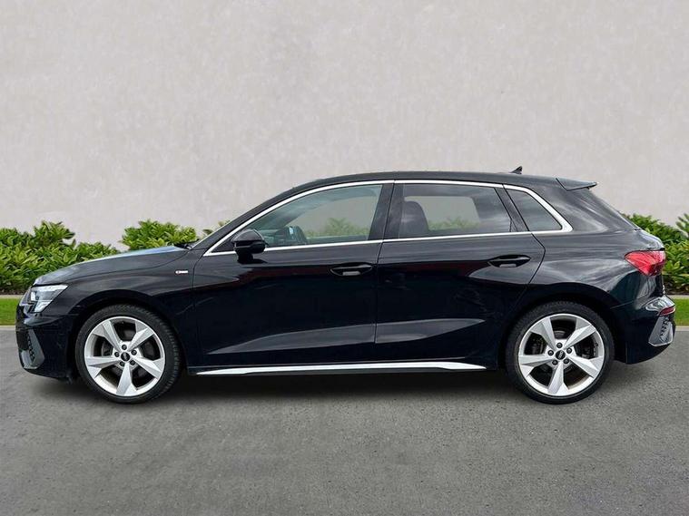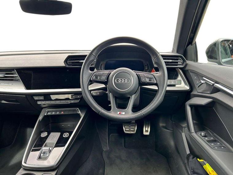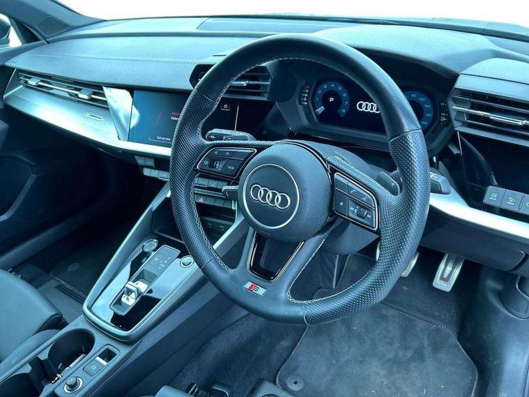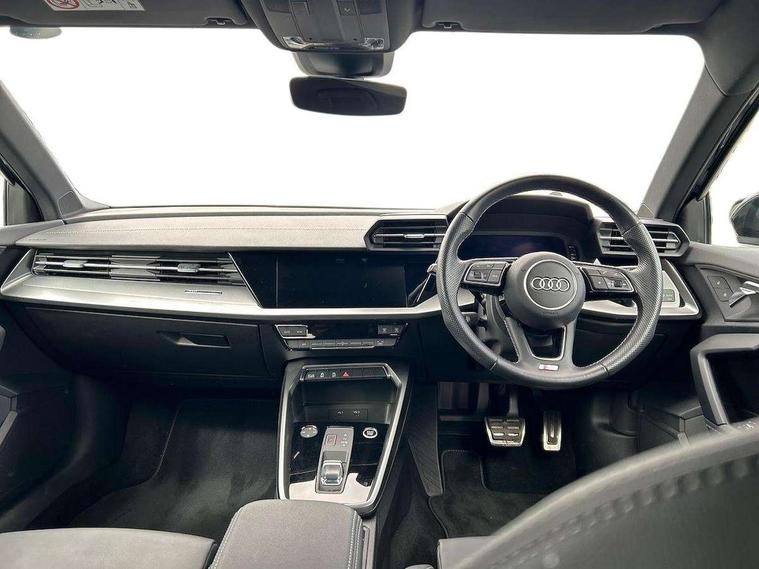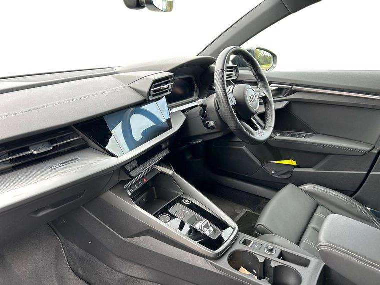 Audi connect emergency call and service, Audi drive select (Auto, Comfort, Dynamic, Efficiency and Individual), Audi smartphone interface, Audi Virtual Cockpit - 10.25" digital and colour instrument cluster, Automatic start/stop system with recuperation, Bluetooth interface, Collision avoidance assistant, Electromechanical power speed sensitive steering, Lane departure warning system, MMI Navigation Plus with high resolution 10.1" colour touch screen display, Service indicator, Trip computer, Voice control system with natural language interaction, 2xUSB-C connection with data and charging functions, 6 passive loudspeakers, DAB Digital radio, 3rd brake light, Acoustic glass windscreen, Aluminium window trim, Auto dimming frameless rear view mirror, Electrically adjustable/heated/folding/auto dimming door mirrors with integrated LED indications + kerb view function for passenger side, Front electric windows, Illuminated aluminium inserts front door sills with S logo, LED daytime running lights, LED headlights with LED rear lights and dynamic rear indicators, Light and rain sensors, Privacy glass - dark tinted rear window, rear door and side windows, Rear electric windows, Rear side air outlets in grained matt black, Rear wiper, S line bumpers, S roof spoiler, 12V socket and storage compartment in front centre console, 40/20/40 split folding rear seat bench with cupholder, Black cloth headlining, Dual zone electronic climate control, Front and rear centre armrest in leather, Front and rear headrests, Front/rear floor mats, Height and reach adjustable steering wheel, Interior lighting - glove compartment light and right hand side, Luggage compartment floor covering, Manual boot compartment lid, Manually adjustable front seats, Seat side bolsters, Stainless steel pedals and front footrest, Twin leather upholstery with front sports seats S embossed logo, Aluminium interior elements pack - A3 Sportback, S line styling pack - A3 Sportback, 3x3 point rear seat belts, Driver and front passenger airbag with passenger airbag deactivation, Electronic Stabilisation Control (ESC) including ABS, ASR and EDL, First aid kit with warning triangle and 2 safety vests, Front side airbags with head airbags and interaction airbag, Hill hold assist, Pre-sense front with pedestrian and cyclist detection, Seatbelt monitoring, Tyre pressure loss indicator, Anti theft alarm, Anti-theft wheel bolts, Electronically operated child lock, Immobiliser, Remote control central locking, Accent surfaces in the dashboard and centre console in platinum grey silk effect paint finish, Dark spectrum aluminium inlays,