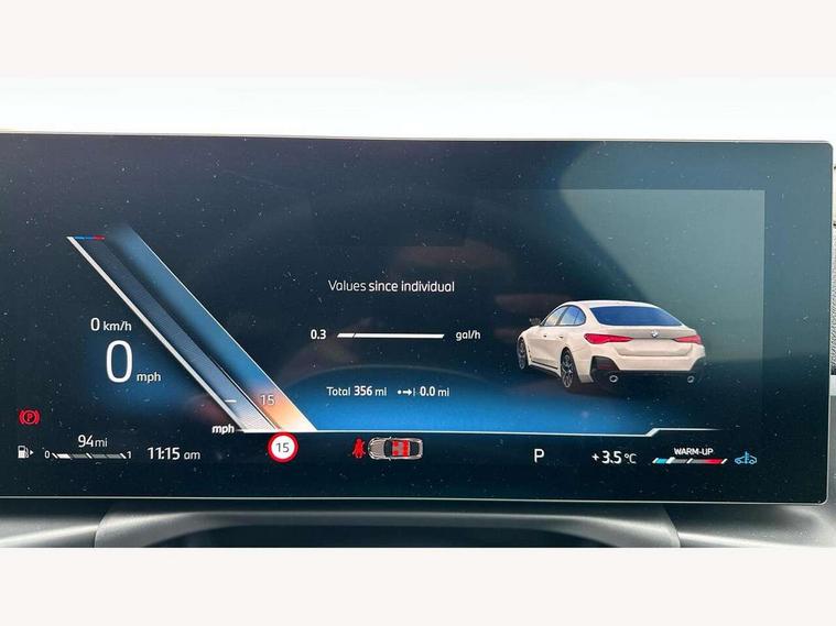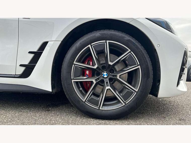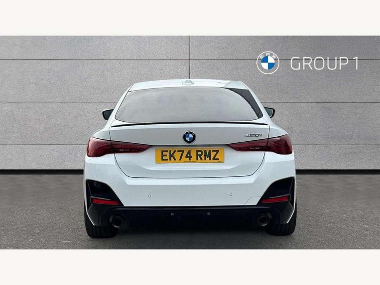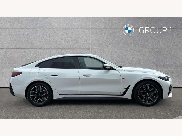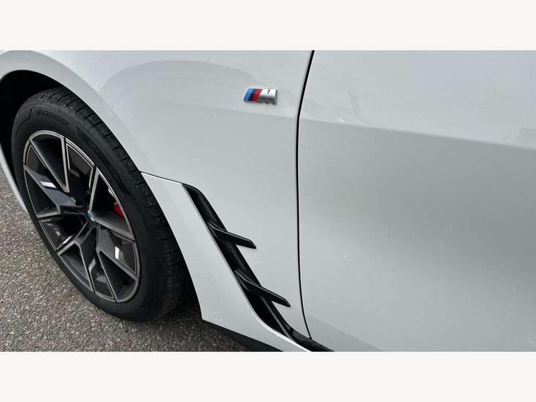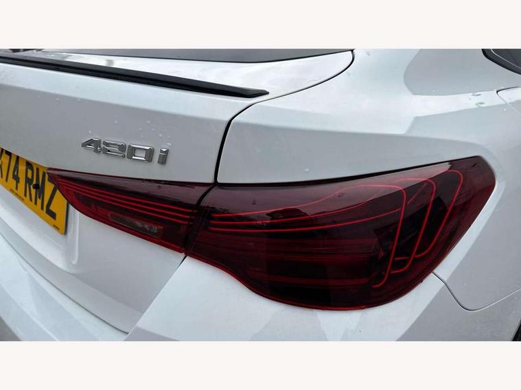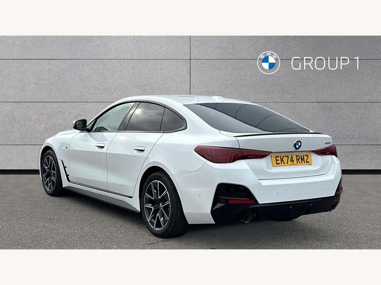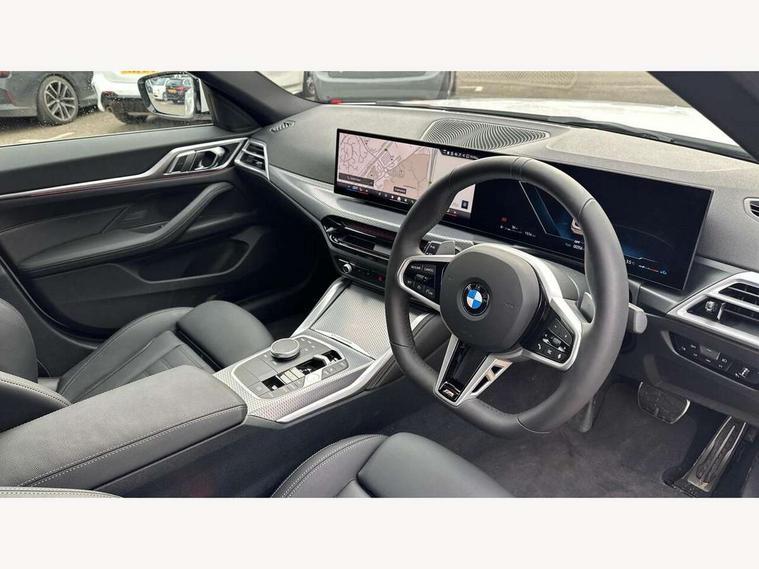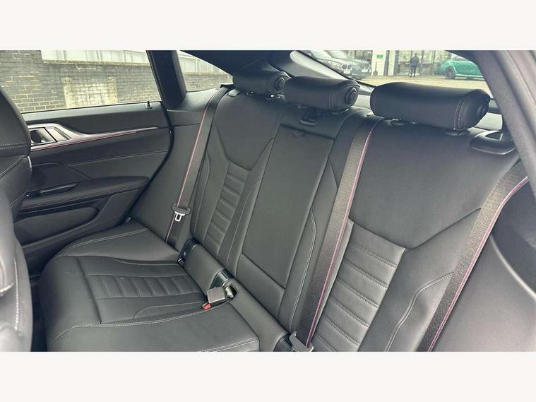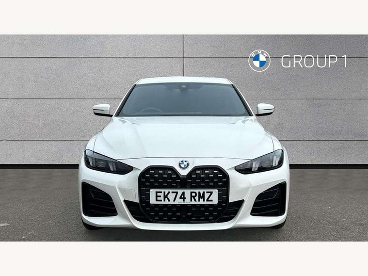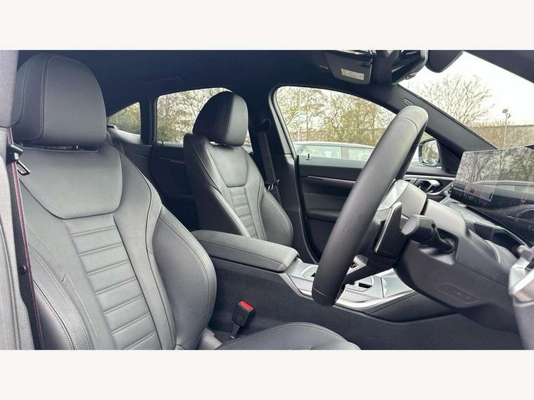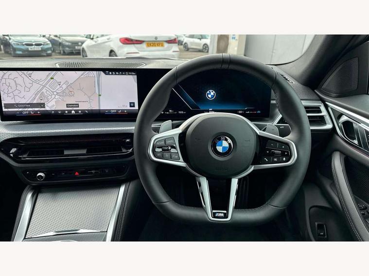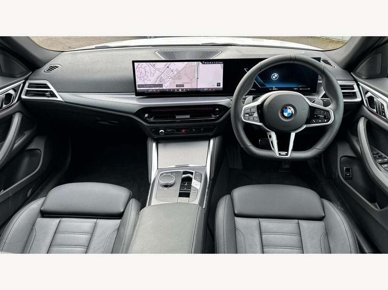 Active guard plus, Attentiveness assist, Auto start-stop, Bluetooth hands free facility with USB audio interface with audio streaming, BMW ConnectedDrive online services, BMW iDrive controller on centre console, BMW Live Cockpit Plus Nav-12.3" instrument&14.9" control Widescreen curved display/Intelligent Voice Assist/iDrive touch/Access 3rd party app/4G LTE, BMW service history, BMW Teleservices, Brake pad wear indicator in front and rear, Check Control warning system for monitoring of lights and door/luggage compartment open warning, Condition based service, Electric bootlid, Electric power steering with Servotronic steering optimised at all speed ranges, Gearshift time display in manual mode, Instrument cluster with speedometer with mph readout, tachometer, fuel gauge and oil temperature gauge, Integrated owners handbook, Language version English, Oil sensor for level and grade, warning by check control system, On board computer - average speed, fuel consumption, outside temp display with acoustic warning, clock/date, service interval, odometer/trip meter, Optimum shift indicator, Run flat indicator, Shifting point display, Variable sport steering, 8 speed automatic steptronic transmission with gearshift paddles, Balanced 50/50 weight distribution, Double joint spring strut front axle, Double VANOS, Drive performance control - ECO PRO, comfort and sport modes, High precision injection, Low centre of gravity, Petrol Particulate Filter, Stroke dependent dampers, VALVETRONIC engine management, 1x USB type A with data transfer and 1.5 Amp charging function in the centre console, 1x USB type C with 3 Amp charging function in the front centre armrest, DAB tuner, Electronic service booklet, Personal eSim, Acoustic glazing, Automatic headlight beam throw control with load dependent regulating reaction, dynamic compensation of braking dive and acceleration squat, Automatic windscreen wipers and automatic headlight, Automatically dimming electrochromatic rear view mirror, BMW emblem on engine compartment lid and tailgate, BMW radiator grille with mesh grille, end face of the nuggets in aluminium matt and frame in chrome matt, Body colour fuel filler flap, Body colour roof fin, Bonnet and tailgate badge, Brushed aluminium inserts in the front door sill finishers with BMW designation, Door sill strips, Dynamic brake lights, Electric windows - front and rear, with open/close fingertip control, anti trap facility and comfort closing function all round, Exterior mirrors - electrically folding with anti-dazzle, Fading support, Follow me home headlights, Front and rear bumper system, Front apron plastic in body colour, Green tinted heat protection glazing, High gloss shadow line exterior trim, Illuminated bow type door handles in body colour drivers side with door lock, Interior rear view electrochromatic mirror with automatic anti dazzle function, LED 3rd brake light, LED daytime running lights, LED front fog lights, LED front indicators, Licence plate panel integrated into front bumper and tailgate, Lightweight engineering, Low and high beam headlights in Bi-LED, M designation on front side panels, left and right, M rear boot spoiler, One piece front bumper cover including towing eye cover in body colour, Preparation for high beam assistant, Rear side wing doors, Rear wiper, Reversing light, Side frame trim strip black matt, Two part LED tailights in L-shape with components in smoked glass, brake light, LED turn indicator and rear fog light, Visible exhaust tailpipe finisher, Visible VIN plate, Welcome lights in interior and door handle area, Widened track and increased camber values for max transverse dynamics, agility and steering precision, Window recess finisher strip in matt black, Windscreen wipers with integrated heated washing jets, 12V power socket in front centre console, 2 front cupholder in centre console with clamping elements and matt black inlay, 3 rear headrests, 3 seat bench in 2nd row, 3 spoke flat bottom M sport leather multifunction steering wheel, 3 zone automatic air conditioning, 4 pieces lashing eyelets in luggage compartment, 40:20:40 split folding rear seat and rear centre armrest with two cupholders, Anthracite headlining, Armrest integrated in front and rear door trim + front centre console armrest, Battery in luggage compartment, BMW ID, Four grab handles integrated in roof lining, Front and rear door pockets, Front and rear reading lights, Front footwell lights, Heated driver and front passenger seats, Height adjustable front headrests, Height adjustable mechanically and infinitely variable steering column, Illuminated armrest storage compartment, Illuminated glove compartment with separate small compartment, Luggage compartment light, Luggage compartment seprating net on side trim left/right, Bag hook, 12V socket, TTH button, USB C charging in rear, Folding compartment on driver side, Make-up mirror lights, Single front passenger seat, Storage compartment in rear centre console, Sunvisors with illuminated vanity mirrors and ticket pocket, Through load system, Toolkit located in luggage compartment, Velour front floor mats, Ambient lighting pack - 4 Series, Connected professional package - 4 Series, M sport exterior styling pack - 4 Series, Park assist pack - 4 Series, 3 point seatbelts on all seats, Battery safety cut-off, BMW emergency call, Brake energy regeneration, Braking pre-tensioning, Child locks, Child seat ISOFIX attachment for the two outer rear seats, Coasting in idle in ECO PRO mode, Cornering brake control (CBC), Crash sensor activating of airbags, Unlocking doors, hazard warning lights, fuel cut off, interior lighting+activation of safety battery terminal clamp, Driver and front passenger side airbags, integrated in the door side seat backrest bolsters for all seat variants, Driver/Front Passenger airbags, Dry braking, Dynamic brake control, Dynamic stability control + (DSC+) - Anti-lock Braking System (ABS) with brake assist and cornering brake control 