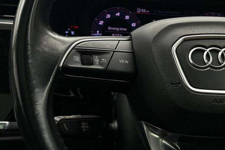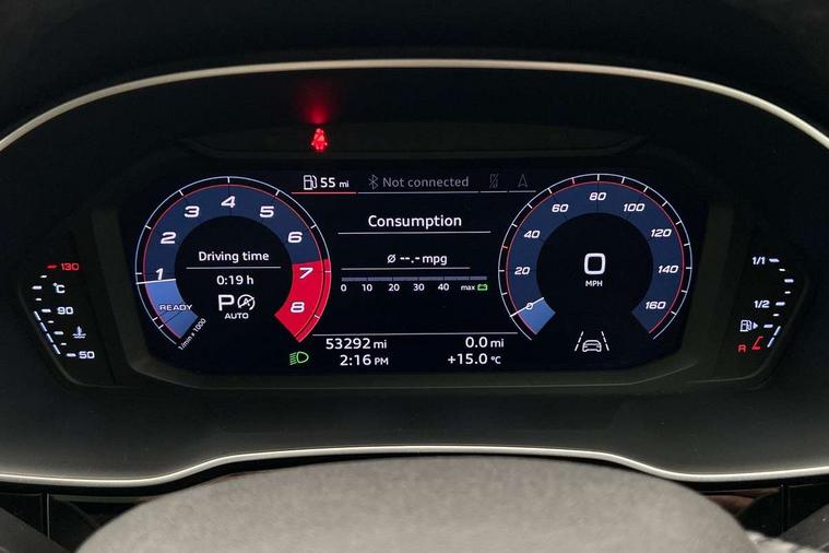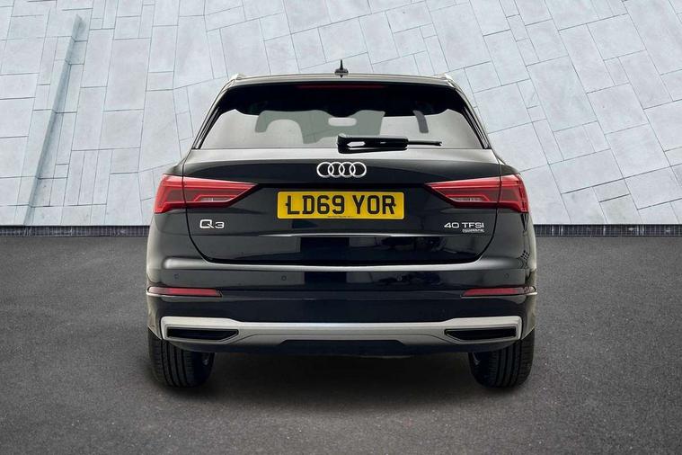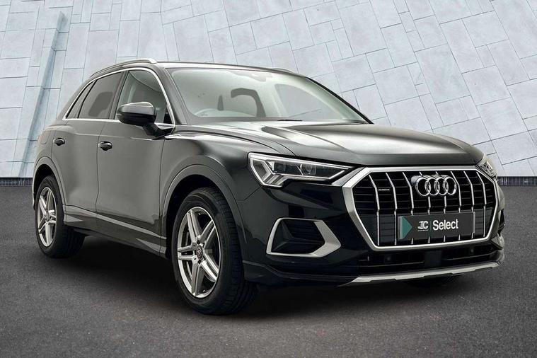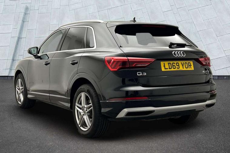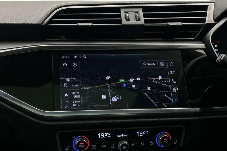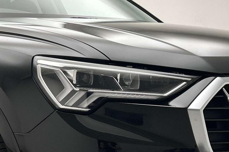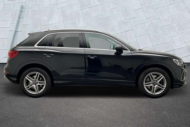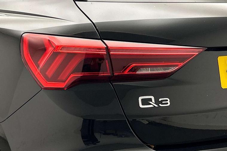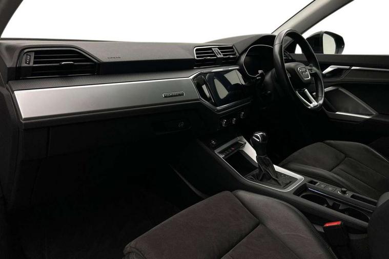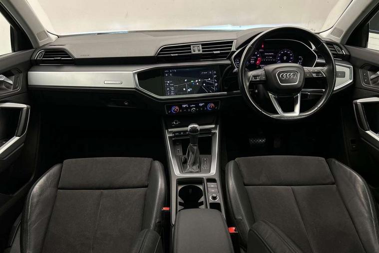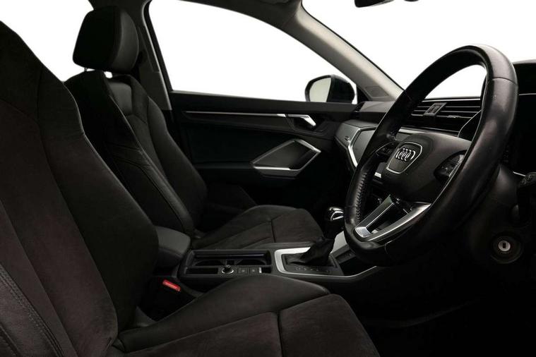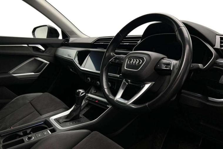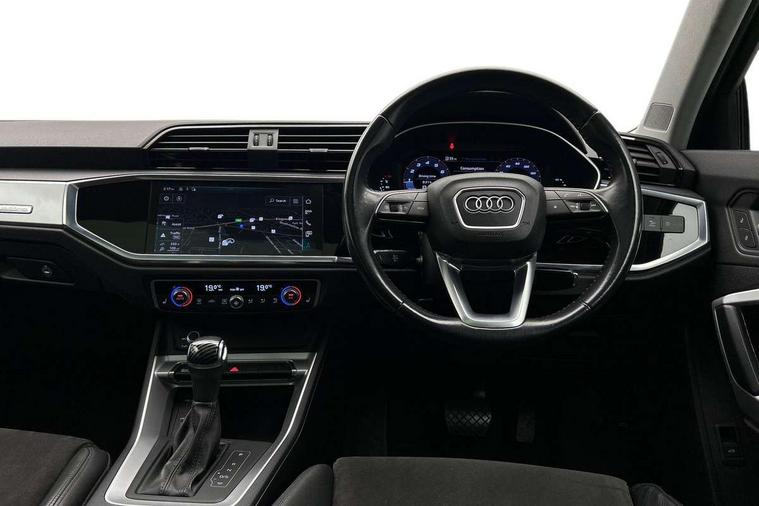 Audi connect safety and service (e-call), Audi drive select, Audi lane departure warning, Audi side assist, Audi smartphone interface, Audi Virtual Cockpit - 10.25" display, Bluetooth interface, Camera based traffic sign recognition, MMI navigation plus with MMI touch, Power opening/closing tailgate, Progressive steering, Rear parking sensors, Service interval indicator, Stop/start system, Voice control system, Standard suspension, 1 x USB type C and 1 USB type A charging points, 6 speakers, DAB digital radio module, Acoustic windscreen, Aluminium roof rails, Aluminium window trim, Auto dimming rear view mirror, Body coloured bumpers, Electrically adjustable and heated door mirrors with integrated LED side indicators, Front and rear electric windows, Front fog lights, Front side air inlets in matt selenite silver, Front spoiler in matt selenite silver, Grille vertical bars in aluminium silver/Matt, High gloss black finish B and C pillars, LED headlights with LED daytime running lights and dynamic rear indicator, LED rear lights, Rain and light sensors, Rear diffuser strip in selenite silver, Titanium black radiator grille, 12V socket in rear centre console, 40:20:40 split folding rear bench seat, Adjustable rear seat bench/backrest, Aluminium door sill trims, Dual zone climate control, Front and rear headrests, Front and rear roof module including reading lights, Front and rear velour floor mats, Front centre armrest with storage compartment and angle adjustment, Glove compartment lighting, Height and reach adjustable steering wheel, ISOFIX child seat mounting and Top Tether with front passenger airbag deactivation, Luggage compartment light, Lunar silver cloth headlining, Manual front seats with height adjustment, Stainless steel luggage compartment sill finisher, Non smoking pack - Q3, 3x3 point rear seatbelts, 6 airbags - Driver, front passenger, curtain and side windows, Electrically operated child locks on rear doors, Electromechanical parking brake, Electronic stabilisation control including ABS, ASR and EDL, Hill descent control, Hill hold assist, Pre sense basic, Seatbelt monitoring, Tyre pressure warning, Warning triangle and first aid kit, Anti theft alarm, Anti theft wheel bolts, Audi pre-sense front with pedestrain and cyclist recognition, Remote central locking, MMI touch colour display in gloss black with aluminium surround,