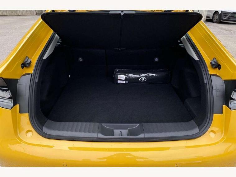 12.3" multimedia display screen, 7" Multi information screen, Acceleration suppression at low speed, Adaptive cruise control [ACC] switch on steering wheel, Blind spot monitor and safe exit assist, Bluetooth connectivity, Digital speedometer, Driver monitoring camera, Dynamic guide lines on reversing camera, eCall emergency call system, Emergency driving stop system, Emergency steering assist with active support and pre collision system, Front Cross Traffic Alert, Hybrid system indicator, Intelligent adaptive cruise control, Intelligent parking sensors front and rear with rear pedestrians, Lane change assist, Lane trace assist, Multi information display switches on steering wheel, MyT connected services, PAS, Pre collision system with intersection detection, Precaution Illumination on dashboard ambient light, Proactive driving assist (PDA), Rear cross traffic alert with brake assist, Remote boot door release in cabin, Reversing camera, Road sign assist - RSA, Safe exit assist, Smart entry and push button start, Smart voice assist, Speed limiter switch on steering wheel, Speed limiter with road sign assist, Telephone switches on steering wheel, Touch 2 Go navigation system, Toyota smart connect multimedia system, Voice recognition, Wireless charger, Wireless Smartphone integration incl Apple CarPlay, 3.3 kW Standard charger, Fast charger 32A Mennekes cable, Vehicle Stability Control (VSC), 2 USB-C connectors front, 2 USB-C connectors rear, 2x USB sockets in front armrest, 6 speakers, DAB Radio (Digital Audio Broadcasting), Road events, Anti-jam protection on power windows, Auto headlights, Auto up and down function on power windows, Auto wipers, Automatic high beam, Automatic rear flashing hazard lights, Black door moulding, Black rear bumper, Black surround on lower front grill, Black wheel arch mouldings, Boot door release with push button, E-switch operated rear door handles, Electric heated door mirrors, Follow me home headlights, Grille shutter, Indicators integrated on door mirrors, Infrared filter on windshield, LED daytime running lights, LED Headlights, LED High mounted stop lamp, LED Indicators, LED rear combination lights, Manual day/night rear view mirror, Manual front door handles, Manual headlight levelling, Noise reduction layer on windscreen, Power adjustable door mirrors, Power retractable door mirrors, Privacy glass for rear window, Rear fog lights, Rear side wing doors, Rear spoiler, Rear window wiper, Rear windscreen defogger, Shark fin antenna, Silver lower front grille, UV-filter on driver and front passenger windows, 12v power outlet - front, 2 cup holders in front, 2nd row rear passenger room LED light, 3 seat bench in 2nd row, 3 spoke premium animal friendly leather steering wheel, 60/40 split folding 2nd row rear seats, Adjustable rear headrests, Ambient lighting on dashboard, Assist grips front, Assist grips rear, Boot 230V power outlet, Boot light, Boot underfloor storage, Charge cable bag, Driver and front passenger personal LED lights, Driver and front passenger Whiplash Injury Lessening seats, Foldable tonneau cover, Front and rear door pockets, Front head restraints, Front passenger seatback pockets, Gear shift indicator, Gloss black insert on centre pillar, Glovebox with light, Heat pump system with humidifier, ISOFIX child restraint system, LED front room light, Luggage floor board with protection mat, Manual telescopic steering wheel, Manual tilt steering wheel, Manually height adjustable driver seat, Manually reclining driver seat, Manually reclining front passenger seat, Manually sliding driver seat, Manually sliding front passenger seat, Microphone on front personal light, Mirror on driver sun visor, Mirror on passenger sun visor, Multimedia switches on steering wheel, Nanoe-X air purifier, Pollen air filter with deodorising odour eliminator, Power adjustable lumbar support on driver seat, Power window switches with satin chrome inserts, PVC gear shift knob, Rear cup holders, Rear headrests, Remote dual zone automatic air conditioning, Satin chrome interior door handles, Single front passenger seat, Soft-touch front door armrests, Soft-touch rear door armrests, Sports fabric upholstery, White ambient lighting in footwell, 3 point seatbelts on all seats, Acoustic vehicle alerting system, Anti lock braking system + Electronic brake force distribution, Child safety door lock, Driver and passenger central airbags, Driver and passenger front airbags, Driver and passenger side airbag, Driver knee airbag, Electronic parking brake, Front to front oncoming car and motorbike daytime detection, Passenger airbag on/off switch, Pre collision system with pedestrian, cyclist and motorbike detection, Pre-tensioners and force limiters, Rear seat reminder alert, Toyota safety sense with over the air updates, Tyre pressure warning system, Driver power door lock, Glass-breaking alarm sensors, Immobiliser, Intrusion alarm, Intrusion sensor, Motion sensor alarm, Remote door lock, Smartphone remote door lock, Smartphone remote hazard lights system, Wheel Nuts, Metallic effect insert on dashboard, Soft-touch front door trim, 17" 5 spoke dark grey aerodynamic alloy wheels with full wheel caps, Tyre repair kit,