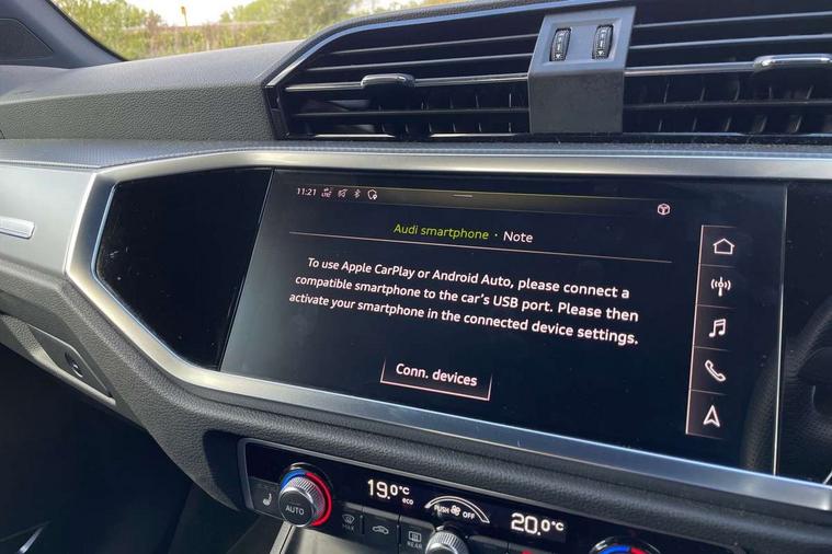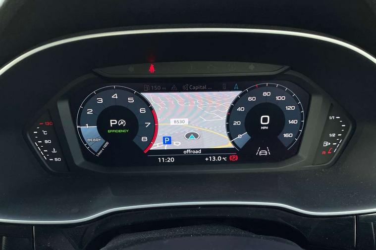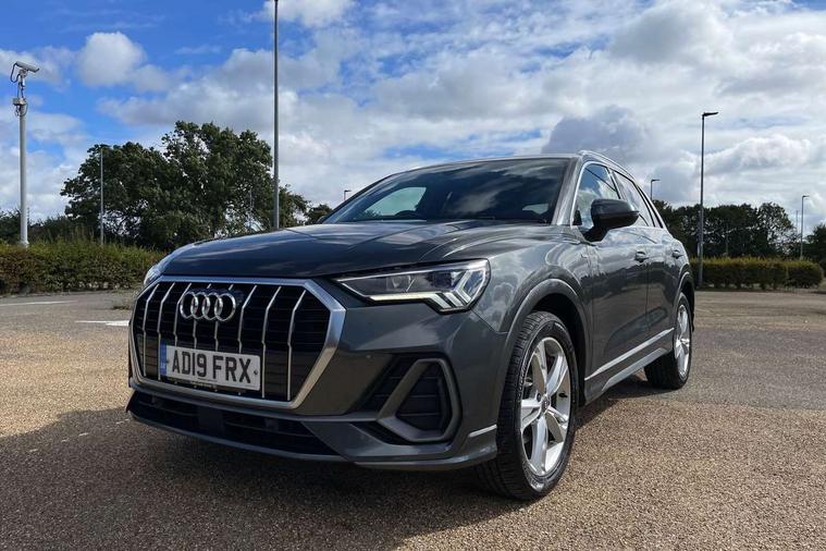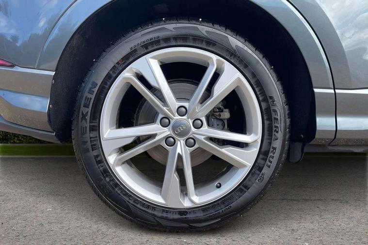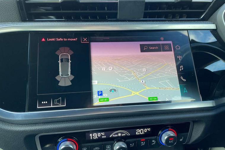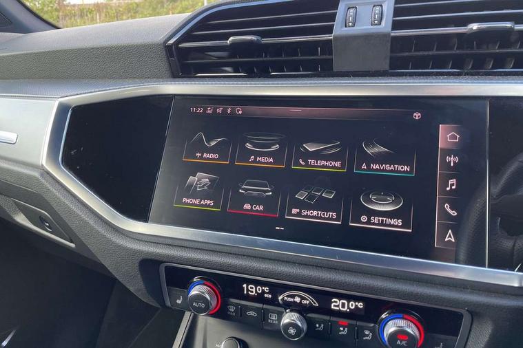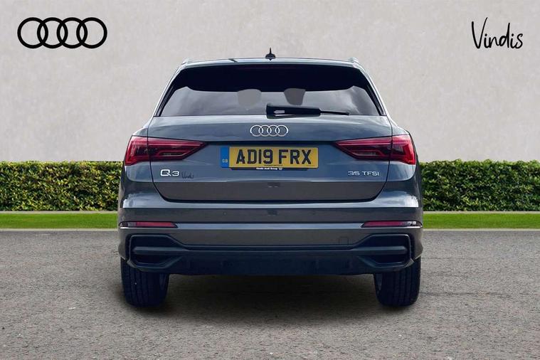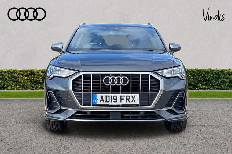 Audi connect safety and service (e-call), Audi drive select, Audi lane departure warning, Audi side assist, Audi smartphone interface, Bluetooth interface, Camera based traffic sign recognition, MMI navigation plus with MMI touch, Power opening/closing tailgate, Progressive steering, Rear parking sensors, Service interval indicator, Stop/start system, Voice control system, Sports suspension, 1 x USB type C and 1 USB type A charging points, 6 speakers, DAB digital radio module, Acoustic windscreen, Aluminium roof rails, Aluminium window trim, Auto dimming rear view mirror, Body coloured bumpers, Diffuser in matt Platinum grey, Electrically adjustable and heated door mirrors with integrated LED side indicators, Front and rear electric windows, Front fog lights, Front side air inlets in matt platinum grey, Front spoiler blade in matt platinum grey, Grille vertical bars in aluminium silver/Matt, High gloss black finish B and C pillars, LED headlights with LED daytime running lights and dynamic rear indicator, LED rear lights, Privacy glass, Rain and light sensors, Rear diffuser strip in matt titanium black, S Line badge on wings, S Line front and rear bumpers, Side skirt insert in matt Platinium grey, Titanium black radiator grille, 12V socket in rear centre console, 40:20:40 split folding rear bench seat, Adjustable rear seat bench/backrest with centre armrest and cupholder, Aluminium door sill trims, Black cloth headlining, Dual zone climate control, Front and rear black floor mats with contrast stitching in rock grey, Front and rear headrests, Front centre armrest with storage compartment and angle adjustment, Illuminated door sill trims with S logo, ISOFIX child seat mounting and Top Tether with front passenger airbag deactivation, Manual front seats with height adjustment, Perforated leather gearknob, Stainless steel luggage compartment sill finisher, Stainless steel pedals, Tool kit, Non smoking pack - Q3, 3x3 point rear seatbelts, 6 airbags - Driver, front passenger, curtain and side windows, Electrically operated child locks on rear doors, Electromechanical parking brake, Electronic stabilisation control including ABS, ASR and EDL, Hill hold assist, Pre sense basic, Seatbelt monitoring, Tyre pressure warning, Warning triangle and first aid kit, Anti theft alarm, Anti theft wheel bolts, Audi pre-sense front with pedestrain and cyclist recognition, Remote central locking, Dark matt brushed aluminium inlay, MMI touch colour display in gloss black with aluminium surround, Tyre repair kit,