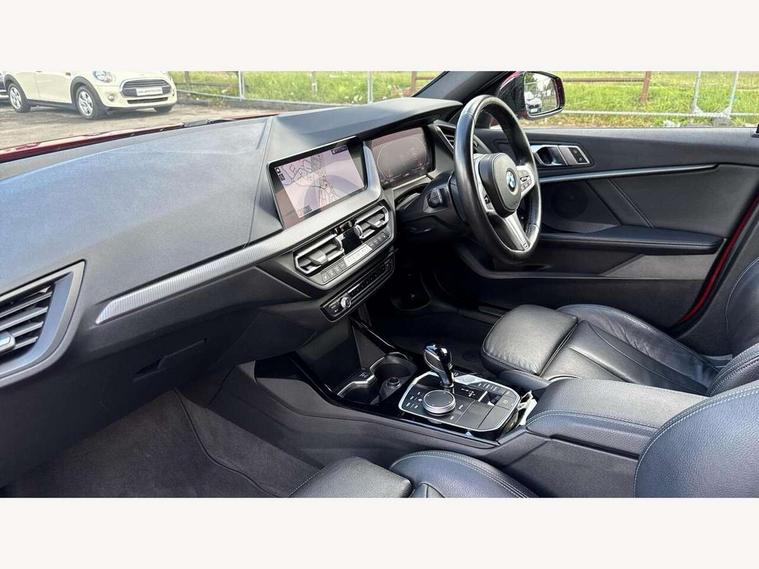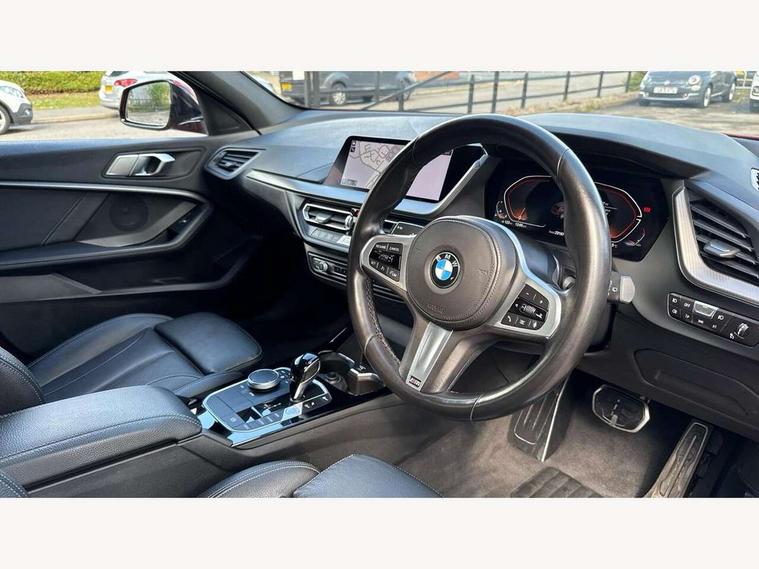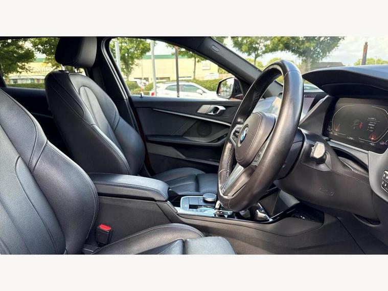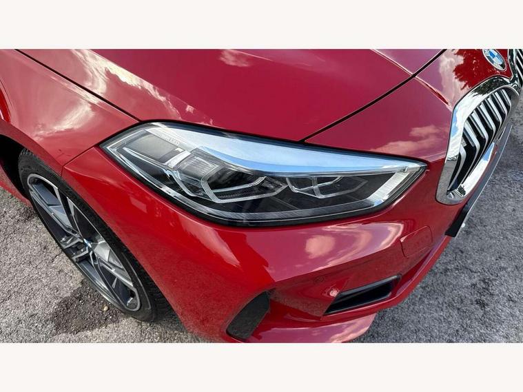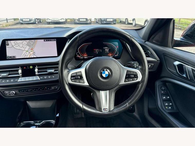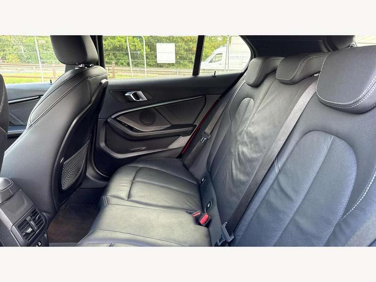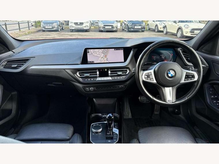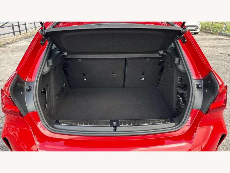 Active guard plus, Attentiveness assist, BMW Online services, BMW Teleservices, Check Control warning system for monitoring of lights and door/luggage compartment open warning, Connected eDrive Services, Eco pro mode, Integrated owners handbook, Oil sensor for level and grade, On board computer, Optimum shift indicator, Personal Profile, Pull away assistant, Speed limiter, Aluminium lightweight construction, Anti roll bar front and rear, Balancer shaft, Double VANOS, Drive Performance Control, Electronic differential lock, High precision injection, M sport suspension, Petrol Particulate Filter, VALVETRONIC engine management, Bluetooth audio streaming, DAB Digital radio, Auto dimming rear view mirror, Automatic headlight beam throw control, Automatic windscreen wipers and automatic headlight, Body colour door handles, Body colour mirror caps, Chrome 'M' logo side designation, Chrome exhaust tailpipe in single, round (Exhaust tailpipe, stainless steel - single, round), Chrome kidney grille frame with Satin Aluminium struts, Direction indicator side lights in exterior mirrors, Electric folding and anti dazzle exterior mirrors, Fading support, Follow me home headlights, Front and rear bumper system with replaceable deformation elements, Front and rear electric windows with open and close fingertip control, anti trap facility and comfort closing, Front door sill finishers in black plastic with M designation in metallic look, Green tinted heat protection glazing, Heated, electrically adjustable exterior mirror aspheric on driver side, convex on passenger side, High gloss shadowline window frame, Recess cover mirror frames and B/C pillar embelisher trim, High level third brake light, LED daytime running lights, LED eyebrow turn indicators, LED front fog lights, Lightweight engineering, Matt black air guide grilles, Model designation on right side of tailgate, Nearside reverse light in rear light cluster, Preparation for high beam assistant, Rain sensor including auto headlights activation, Rear fog lights, Rear window wiper, Shark fin antenna, Visible VIN plate, Welcome lighting, 12V power socket in centre console, 3 rear seat head restraints, 3 spoke M sports design leather steering wheel finished in nappa leather with specific M badge, Anthracite headlining, Anthracite Velour floor mats, Child seat ISOFIX attachment for two outer rear seats and front passenger seat with anchorage points, Conditioned based service, Dakota leather upholstery with perforation and contrast stitching, Driver and front passenger seat heating, Folding rear clothes hook, Four grab handles integrated in roof lining, Front and rear door pockets, Front and rear door pockets with bottle holders, Front and rear side armrest integrated into door trim, Front armrest foldable with integrated storage compartment, Front sports seats with electric side bolster adjustment, Glove compartment, Height adjustable front head restraints, Manual adjust steering wheel, Multi-function controls for steering wheel, Storage compartment in centre console, Sun visors with vanity mirrors and insert tab, Two zone automatic air conditioning, Additional interior lighting pack - 1 Series, Connected pack professional - 1 Series, Extended storage pack - 1 Series, Interior lights pack - 1 Series, Luggage compartment pack - 1 Series, M Sport exterior styling aerodynamics pack - 1 Series, 2 tone horn, 3 point seatbelts on all seats, front pyrotechnic belt tensioners, stopper and belt force limiters, rear coded belt buckles, Airbags - front driver/passenger, front & rear curtain, front side, Anti lock braking system (ABS) with brake assist, BMW emergency call, Brake drying, Braking readiness, Crash sensor activating central locking release, hazard warning lights, fuel cut off, interior lighting + activation of safety battery terminal clamp, Driver and front passenger seat belt security check, Dynamic stability control + (DSC+), Dynamic Traction Control - DTC, Electrically operated hand brake, Front and rear disc brakes, Front passenger manual airbag deactivation, Seatbelt warning, Side impact protection, Tyre pressure monitoring system, Warning triangle and first aid kit, Automatic drive away locking facility, Central locking switch for all doors, fuel filler cap and luggage compartment, Deadlocking function system to all doors, Locking wheel bolts, Remote control with integrated key with High-gloss Black inlay and M designation and 1 button for open/ close lock, window, open luggage compartment, Start/stop button with comfort go keyless engine start and auto start stop deactivation button, Thatcham Cat.1 alarm and immobiliser, Contrast stitching on instrument panel, Reduced rolling resistance tyres,