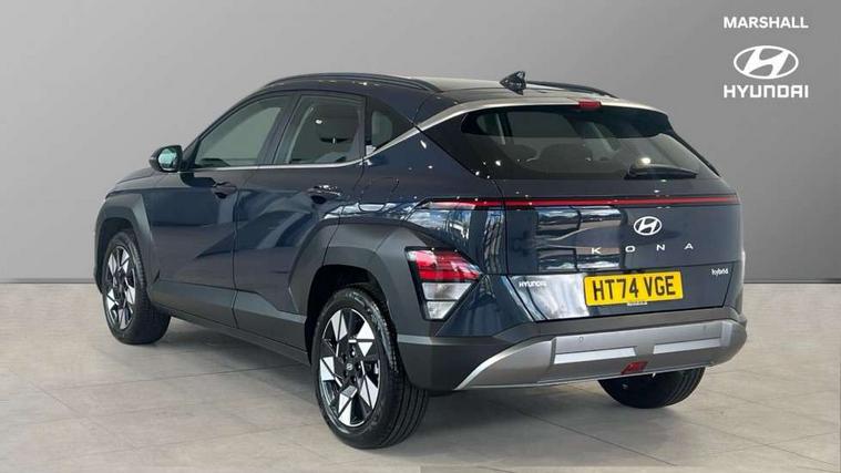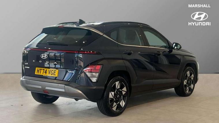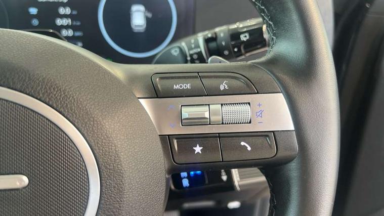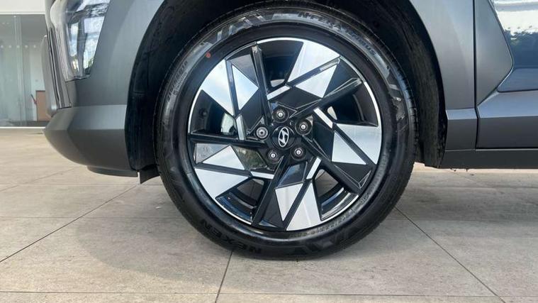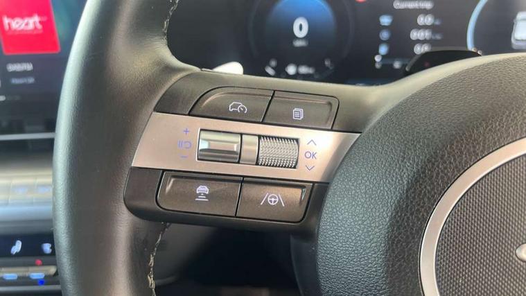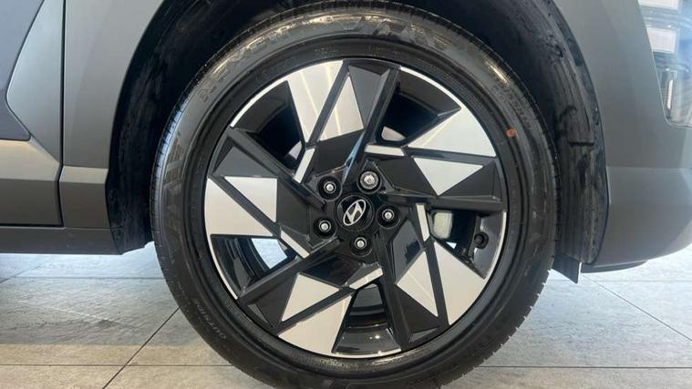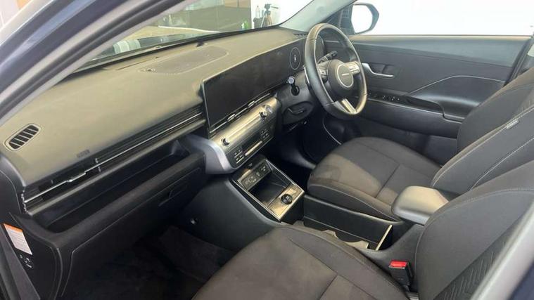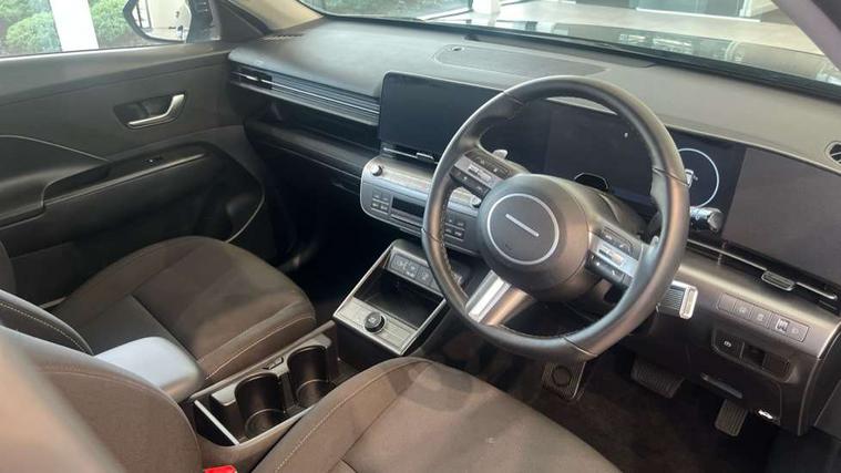 12.25" digital instrument cluster, 12.3" touchscreen centre console display satellite navigation with bluelink, live services and mapcare, Bluetooth connectivity with voice recognition, Driver status monitor (DSM), Driver supervision instrument cluster with 12.3" LCD display, eCall emergency call system, Feature on demand - Enabled, Forward collision avoidance assist (FCA 1.5) - Car, pededstrian, cycle and junction turning, Front parking sensor, HDA - Highway Drive Assist Level 1.5, Intelligent speed limit assist, Lane follow assist, Lane keep assist, Leading vehicle departure alert (LVDA), Parking system with rear camera and guidance system, PAS, Rear parking sensor, Rear view camera with dynamic guidelines, Roadside assistance, Smart cruise control with stop and go functionality, Wireless Smartphone Integration includes Apple CarPlay and Android auto, 2 front USB C and 2 rear USB C charging points, DAB Digital radio, Speakers - Front, rear and tweeters, Steering wheel audio, phone and cruise controls, Auto dimming rear view mirror, Automatic headlights with dusk sensor, Automatic windscreen wipers with rain sensor, Black painted wheel arch inserts, Body colour exterior door handles, Body coloured door mirrors, Door mirror LED indicator lights, Electric front windows with anti-trap mechanism and one touch control, Electric rear windows, Electrically adjustable and heated door mirrors, Full LED MFR headlights, LED daytime running lights, LED taillights, LED upper and lower rear lights, Power folding door mirrors, Rear roof spoiler with integrated LED brake light, Rear side wing doors, Rear skid plate - silver, Rear wiper, Roof rails, Tinted glass in front and rear doors, Windscreen auto defog function, 12V power outlet in front console, 2 zone climate control, 3 seat bench in 2nd row, Adjustable head restraints, Cloth upholstery, Driver and passenger front seat pockets, Driver's seat lumbar support, Driver/passenger manual seat height adjustment, Driver/passenger sunvisors and illuminated vanity mirrors, Floor mats, Height/reach adjustable steering column, Leather steering wheel, LED centre interior light, LED front interior light, Luggage compartment LED lighting, Luggage shelf, Metal paint effect interior door handles, Rear centre armrest with cupholders, Shift by wire SBW, Single front passenger seat, Vertical adjustment rear head restraints, Trailer wiring package - Kona, Airbag - front, front side, curtain and centre front airbag, Anti-lock brake system (ABS), Childproof rear door locks, Downhill brake control, Electric parking brake, Electronic stability control, Fixed 3 point for second row centre passenger seatbelt, Hill start assist control (HAC), Rear seat alert, Tyre pressure monitoring system, Alarm/immobiliser, Rear occupant alert, Remote central locking, Smart key with keyless entry and start/stop button, Five year annual vehicle health checks, 18" Alloy wheels, Temporary mobility kit (TMK),