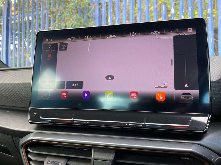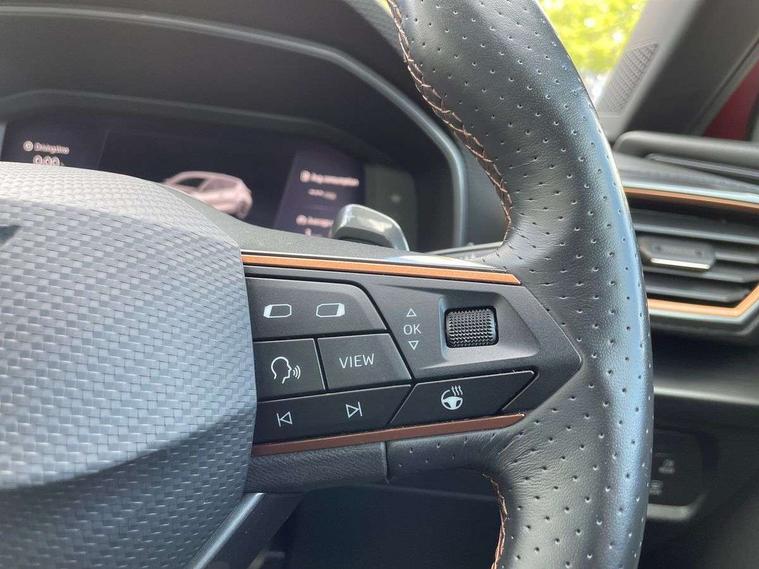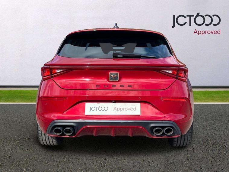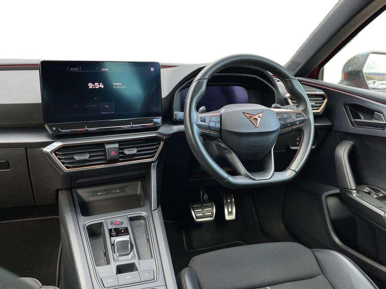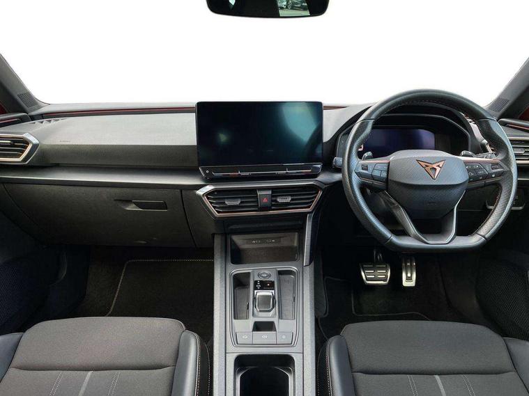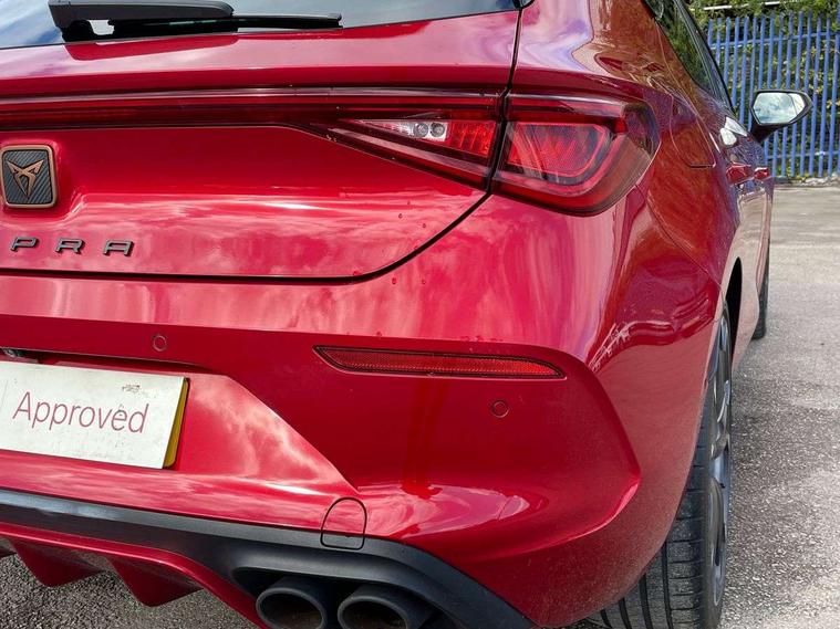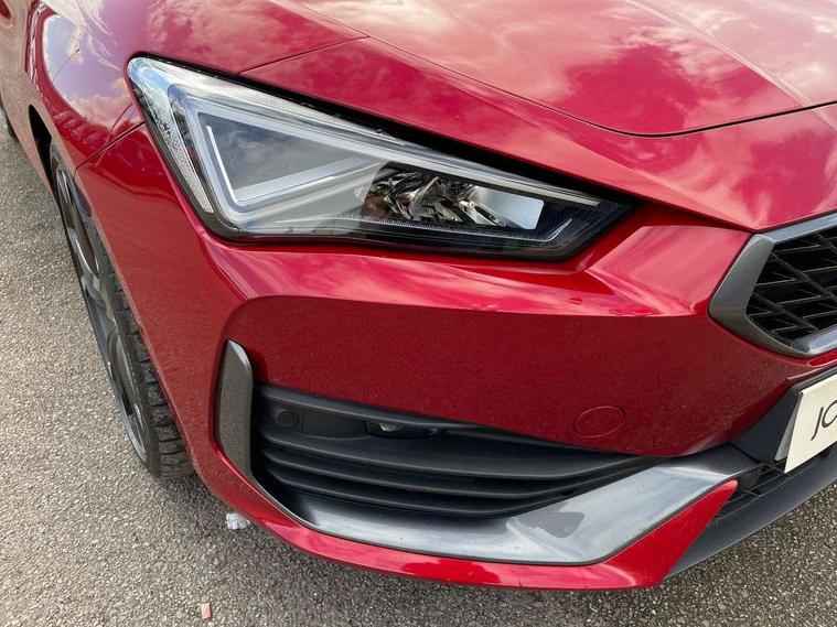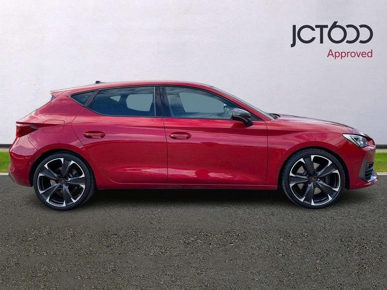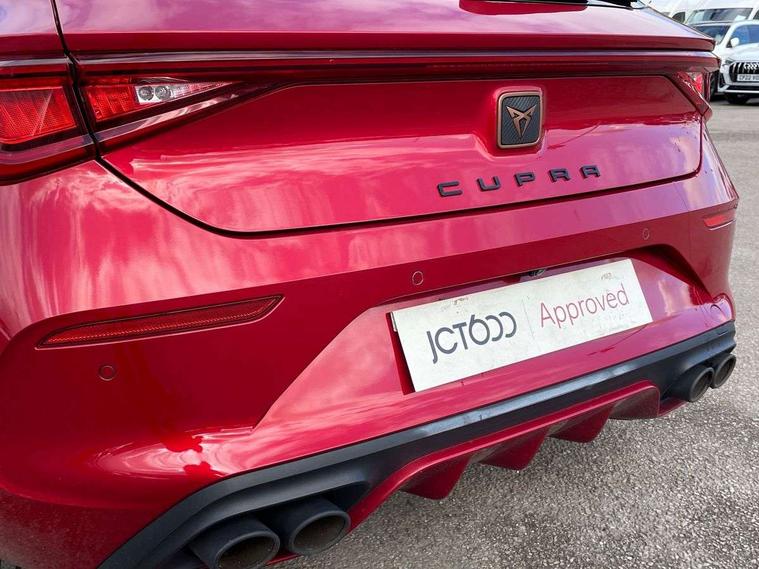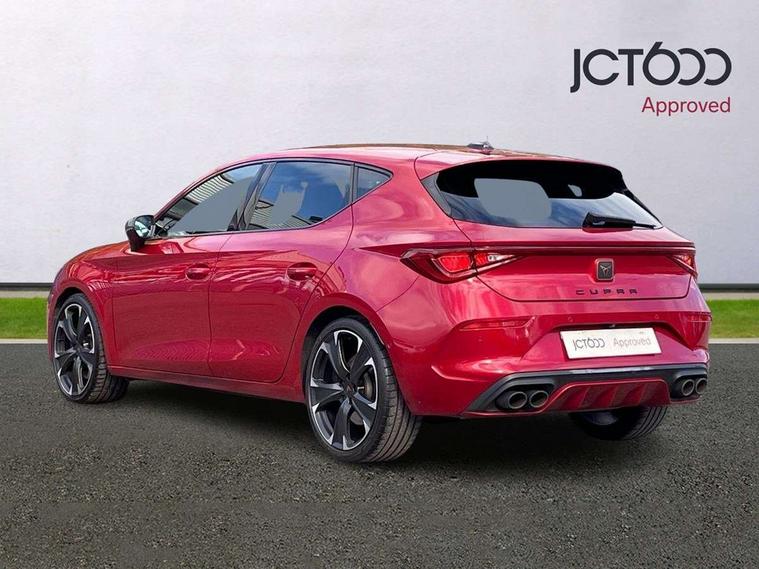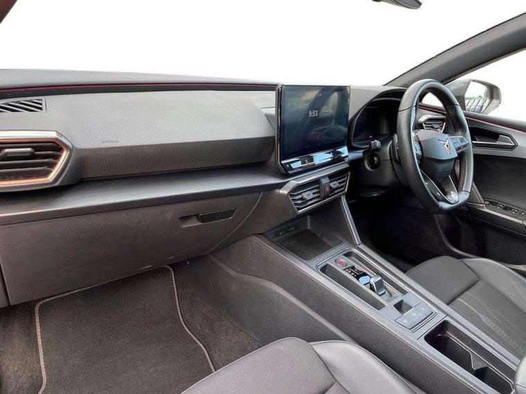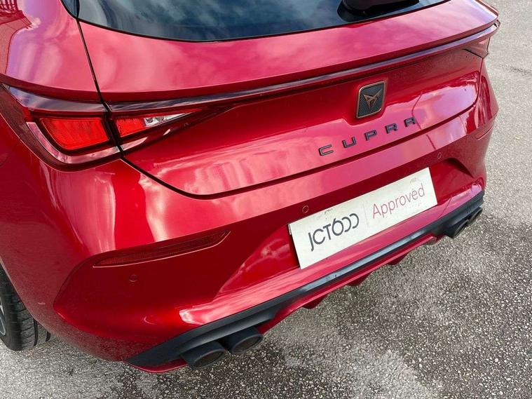 CUPRA drive profile selection with 4 modes (Comfort/Cupra/Sport/Individual), throttle response and gearshift mode, Digital cockpit, E-call, Four x USB Type C ports, Front assist with forward collision warning braking reaction to vehicles, pedestrians and cyclists, Full link smartphone integration with Mirror Link, wireless Apple CarPlay and wired Google Android Auto, Lane assist, Lockable tailgate, Park assist (inc front/rear parking sensors), Rear view camera, RPM, trip computer, outside temp gauge, instrument light brightness, low fuel warning light, lights on reminder, gearshift indicator, Service interval indicator, Start/stop system with regenerative braking, Standard suspension, XDS electronic differential lock and dynamic traction support, Auxiliary input socket, Auto dimming rear view mirror, Body colour door handles, Body coloured bumpers, Cupra sports bumpers, Dark tinted rear windows, Electric front/rear windows, Electrically adjustable, heated and folding door mirrors, LED front fog lamps with cornering function, LED headlights with dynamic turn signals, tail lights, rear fog lights with rear coast to coast lighting, Rain sensing wipers, Rear diffuser with splitter and oval quad exhaust pipes, Rear side wing doors, Rear wash/wipe, Separate daytime running light with automatic headlight control and coming home feature, Third brake light, 12v power supply in centre console, 3 seat bench in 2nd row, 5 headrests, 60/40 split rear bench seat with armrest, Ambient lighting (glovebox, footwell, ambient lighting multicoloured), Black headlining, CUPRA Leather flat bottomed, heated, perforated steering and gearshift paddles, Cupra sports pedals, Driver/passenger manual seat height adjustment, Dust/pollen filter, Folding boot cover, Front and rear reading lights X 4, Front centre armrest, Front seats manual lumbar adjustment, Height/reach adjust steering wheel, Illuminated interior front door sills, Interior wraparound lighting, ISOFIX points in outer rear seats with top tether anchorage points, Jack and tool kit, Luggage tie-down hooks, PVC/Cloth upholstery with copper stitching + Cupra embossed logo on headrest, Single front passenger seat, Sports bucket seats, Storage pockets on rear of front seats, Sunvisors with illuminated mirror, Three zone climate control, Dynamic and comfort pack - Leon Cupra, Media system plus with navigation pack - Leon Cupra, 3 point seatbelts on all rear seats, ABS, Brake control system - ESC and brake booster, Child proof door locks, Cupra black brake calipers, Driver and front passenger airbags with front passenger airbag de-activation, front side and curtain airbags, Electronic parking brake, Extended safety system - seat belt tensioner, window closure and hazard lights, Hill hold control, Rear disc brakes, Seat belt reminder for front and rear seats, Tiredness recognition system, Tyre pressure monitoring system, Anti theft alarm system with interior monitoring in cab, backup horn and towing protection, KESSY Advanced - Keyless start, keyless entry, Locking wheel bolts, Chrome and copper interior detailing, 19" Machined black and silver alloy wheels with 91Y tyres, Space saver spare wheel,