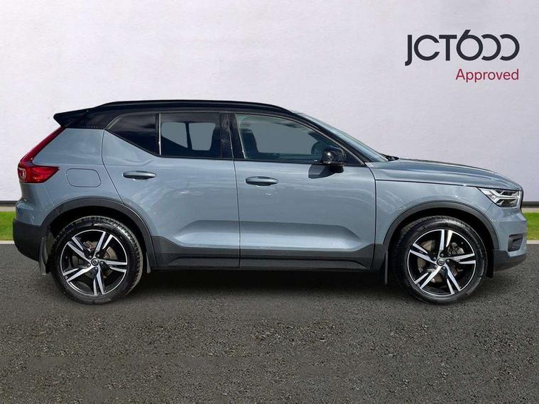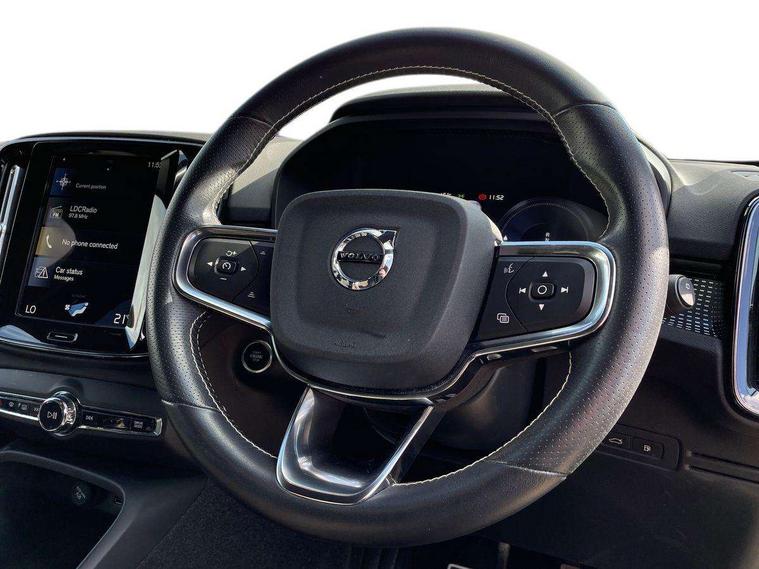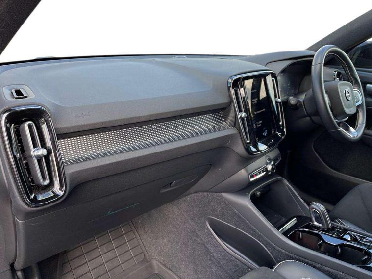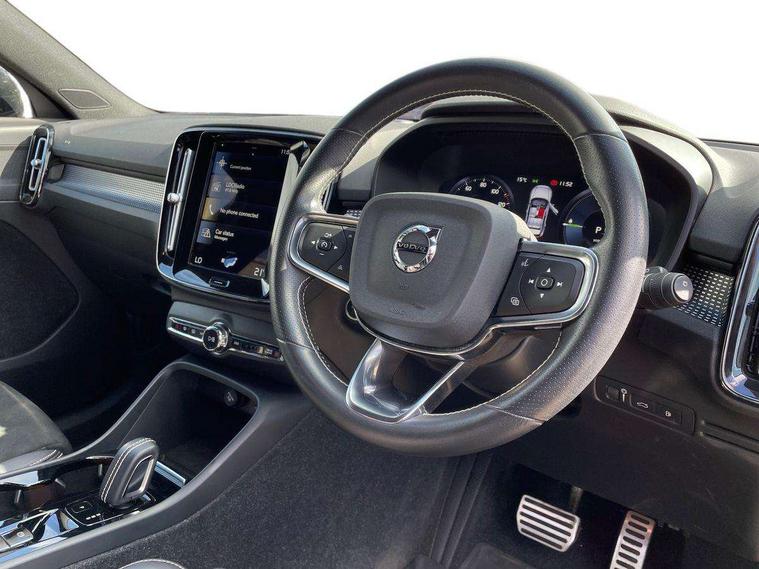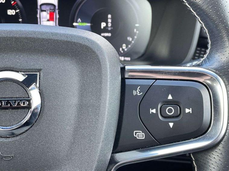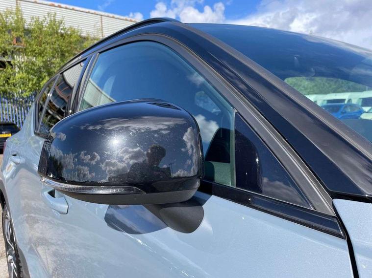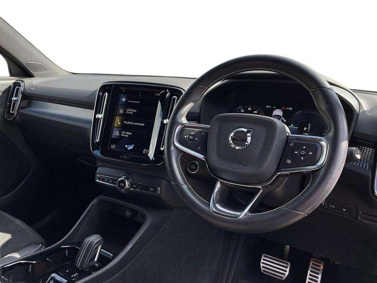 12.3" Active TFT crystal driver's instrument display, 9" centre console portrait touch screen, Adjustable steering wheel force, Bluetooth hands free telephone kit, Drive mode selector, Lane keep assist with driver alert control, Oncoming Lane Mitigation, Power operated tailgate, Sensus navigation with European mapping and traffic information, Speed limiter, Speed sensitive steering, Voice activated control for key functions, Volvo on call, 7m 10amp charge cable with 3 pin plug and 7m 1 phase 16amp type 2/mode 3 charge cable, Electric front axle drive, Recharging port located in nearside front wing, Sports chassis, DAB Digital radio, Low speed exterior sound speaker, Steering wheel mounted remote controls, Adaptive brake lights with high level LED brake lights, Auto dimming interior mirror, Automatic headlamp levelling, Black stone door mirrors, Black stone roof, Colour coordinated auto folding and heated power door mirrors, Dark tinted windows for rear door side windows and cargo compartment, Dual integrated exhaust pipes with high gloss black surround, Front aluminium tread plates, Front and rear electric windows, High gloss black front and rear skid plate, High gloss black lower front bumper, High gloss black mesh front grille with high gloss black surround, High gloss black roof rails, High gloss black sensus surround deco, High gloss black window trim, Home safe and approach lighting, LED Headlights + Active high beam incorporating daytime running lights, Rain sensor with automatic windscreen wiper activation, Rear side wing doors, Rear wiper, Roof antenna, Roof spoiler, Visible VIN plate, 12V socket in front tunnel console and luggage compartment, 2 zone electronic climate control and rear air vent, 3 seat bench in 2nd row, 60/40 versatile split folding rear seat, A-pillar parking ticket holder, Centre console cupholders and storage, Charcoal headlining, Driver's side lower dashboard credit card storage compartment, Front footwell illumination, Front headrests, Front reading light and theatre lighting, Front seat cushion extensions, Glovebox bag hook, Height/reach adjustable steering column, High gloss centre tunnel deco, Illuminated glovebox, Illuminated luggage compartment, Illuminated vanity mirrors, Isofix attachments on outer rear seats, Key integrated remote, Leather gearknob, Load protection net, Multi directional lumbar support, Rear armrest / integral cup holders / storage tray, Rear coat hook, Single front passenger seat, Sports floor mats, Sports pedals, Sports tailored steering wheel, Underfloor cargo storage, 3x3 point rear seatbelts, City safety includes pedestrian, cyclist and large animal detection and front collision warning with full auto brake, Drivers knee airbag, Dual stage driver/passenger airbags, Electronic parking brake with auto hold, First aid kit, Front and outer rear seatbelt reminder and pretensioners, Front seats SIPS airbags, Hill descent control, Hill start assist, Inflatable curtain, Passenger airbag cut-off device, Road sign information display, Run off Road Mitigation, Run off Road Protection, SIPS (Side Impact Protection System), Slippery road and hazard light alert, Stability and Traction Control with Spin control, Engine Drag Control and Corner Traction Control, Tyre pressure monitoring system, Vehicle deceleration control with Anti-lock Brake System, Electronic Brake Distribution and Emergency Brake Assist, Warning triangle, WHIPS whiplash protection system - front, Anti-theft alarm including immobiliser/volume sensor + level sensor, Care key with user defined top speed, Key integrated remote control central locking + fuel flap with deadlocking system and auto open/close power windows, Locking wheel nuts, Private locking for tailgate, Cutting edge aluminium inlay, Lower dashboard, tunnel console and door panel in charcoal,