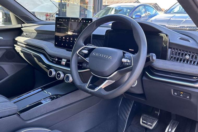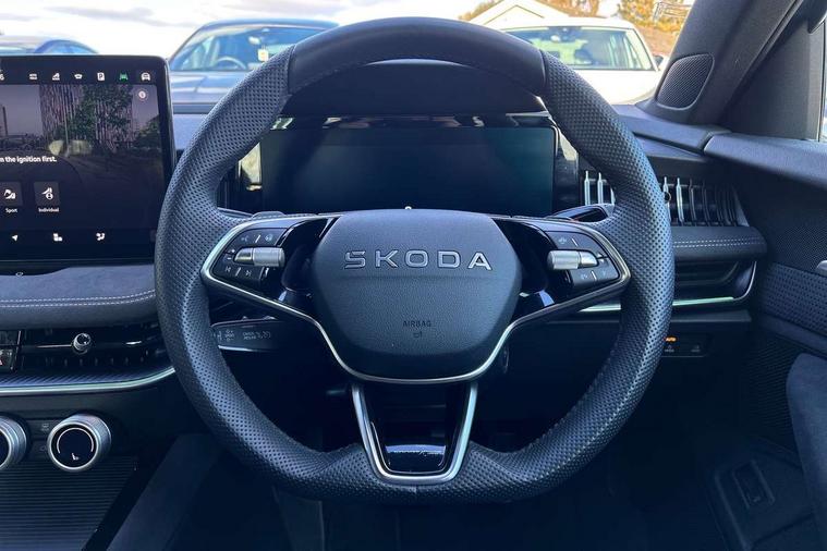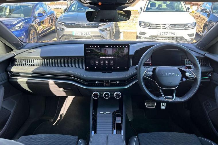 13" touchscreen display with satellite navigation, 4x USB-C ports (2x in front centre console and 2x in rear) (45W), Adaptive cruise control with speed assist, lane assist plus and traffic tram assist, Blind spot detection with door exit warning, Bluetooth system, CareConnect and Emergency Call, ChatGPT functionality, Driver fatigue sensor, Front assist with extended predictive pedestrian protection, Front cross traffic assist, PAS, Quick start all heating software functionality, Stop/start engine system, Traffic sign recognition, Turn assist with evasive assistance, Virtual Cockpit - 10.25" digital display, Voice control system, Washer for rear camera, Wireless charging for one smartphone (15W) with cooling function, Wireless smartlink apple carplay, SmartLink+ android auto, Dynamic chassis control plus with progressive dynamic steering, DAB Digital radio, Display cleaner, FM radio connection, Web radio connection, Acoustic side windows and interior noise suppression, Backdrop lighting, Black exterior styling window and grille surrounds, Body colour door handles, Dynamic range control with poor weather light and integrated fog light, Electrically adjustable, heated, folding and driver side auto-dimming door mirrors with memory function, integrated indicators and logo projection, Frameless auto-dimming rear view mirror with USB-C, Gloss black door mirrors, Ice scraper in fuel tank cap, LED 3rd brake light, Light assist with High beam control, Light assistant (coming/leaving home/tunnel light), Privacy glass, Rear fog lights (x2), Rear side wing doors, Skoda lettering in black, Sportline badging, Sports bumpers, Windscreen wipers with rain sensor, 12V socket 1x centre console 1x boot, 14-way electrically adjustable, memory, front seats with 4-way pneumatic lumbar support, and extendable thigh support with smart comfort entry aid, 2x cargo elements in boot, 2x light in boot, 3 seat bench in 2nd row, 60:40 Split folding rear seats, Aluminium pedals, Bottle holders in the front doors 1.5 litre bottle and rear 1.5 litre bottle, Cup holder in front with easy open mat, Front armrest with storage box, Front sports seats, Heated and ventilated front seats, Height adjustable front and rear head restraints, Illuminated glovebox, Interior lights with control switches, Isofix child seat fittings in outer rear and front passenger seats, LED front and rear reading lights, Single front passenger seat, Skoda lettering on steering wheel, Storage compartment with cover, Storage pockets on back of front seats, Sun visors with illuminated vanity mirrors, Ticket holder on A Pillar, Tri zone climate control, Umbrella in driver's door, Light and view package - Superb, Transport package - Superb Hatchback, 3 rear seatbelts, 8 Airbags - Front driver and passenger, front side driver and passenger, centre, curtain front and rear, drivers knee, Crew protect assist, Driver and passenger seatbelts with warning light, Electronic parking brake, ESC including ABS, EBV, MSR, ASR, EDS, HBA, DSR, RBS, CBC, multi-collision brake (MKB) and Auto hold, Hill hold assist, Power operated child lock in rear doors, Alarm with interior monitoring tilt sensor and back up horn, Backrest remote release from trunk, Electronic engine immobiliser, Keyless start/stop, Remote central locking with SAFE system, Third key, Walk away locking, Decorative front door sills, 19" Torcular polished black alloy wheels with anti theft wheel bolts,