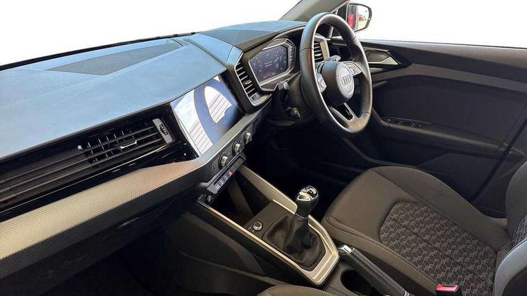10.25" Digital instrument cluster display classis style instrument dials + speed, odometer, time, outside temperature, telephone menu + fuel level warning, Audi drive select - power steering assistance + engine, Audi smartphone interface with connect compatible smartphone via USB directly MMI display + Nav, music, third party apps controlled via MMI controller, Automatic start/stop system, Bluetooth interface, Cruise control, Driver's information system, Electromechanical power steering, Emergency e-call, Lane departure warning system, Rear parking sensor, Service interval indicator, Speed limiter, Voice control system, Washer fluid level indicator, Dynamic suspension, 2 x USB type C connection points, 6 passive loudspeakers, DAB Digital radio, MMI radio plus with 10.1" colour MMI display screen and MMI touch, Auto dimming rear view mirror, Body coloured bumpers, Body coloured door mirrors, Electric front and rear windows, Electrically adjustable, heated, folding door mirrors with integrated LED side indicator, Front side air inlets in grained matt black and C frame in anthracite black, Heat insulating glass windscreen and side windows, Heated rear windscreen, High level LED brake light, LED headlights with LED rear lights + dynamic rear indicators + headlight adjustment and high beam, turning light + LED daytime running lights, Radiator grille and rear diffuser in matt anthracite black, Radiator protective grille frame in matt aluminium silver, Rain and light sensors, Rear fog lights, Rear side wing doors, Rear wiper, Side front spoiler lips in grained matt black, 12V socket in centre console with two cup holders, 3 rear seats with headrests, 3 seat bench in 2nd row, 3 spoke leather multifunction plus steering wheel, 40:60 Split folding rear seat or folded fully, Black front and rear floor mats, Door sill trims with aluminium inlay, Driver and passenger seat with manual height adjust with forward and backwards adjustment, Front head restraints, Front passenger seat, Grey cloth headlining, Height and reach adjustable steering wheel, ISOFIX child seat mounting for front passenger and outer rear seats including top tether attachment point of outer rear seats, Leather gear knob with aluminium trim, Leatherette handbrake grip, Luggage compartment light with front and rear reading lights, Manual air conditioning, Manually adjustable lumbar support in front seats, Novum cloth upholstery with front sport seats, Luggage compartment pack - A1, 3x3 point rear seatbelts, Audi pre-sense front with pedestrain and cyclist recognition, Brake assist function, Driver and front passenger airbag with front side and head airbags, Electronic Stability Control including ABS, EBD, ASR and EDL, Front passenger airbag deactivation switch, Hill hold assist, Manual rear child locks, Seatbelt height adjustment for front seats, Seatbelt monitoring, Tyre pressure warning light, Warning triangle and first aid kit, Anti theft alarm, Anti theft wheel bolts and loose wheel warning, Immobiliser, Remote central locking with 2 foldaway keys, Aluminium trim for control switches, air vents and digital instrument cluster, Black dashboard, Silver grey accent areas including air vents, door handle recesses and centre console in diamond paint finish, Slate grey inlays polygon structure in fine paint finish,