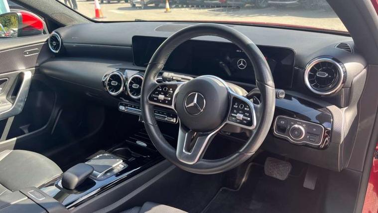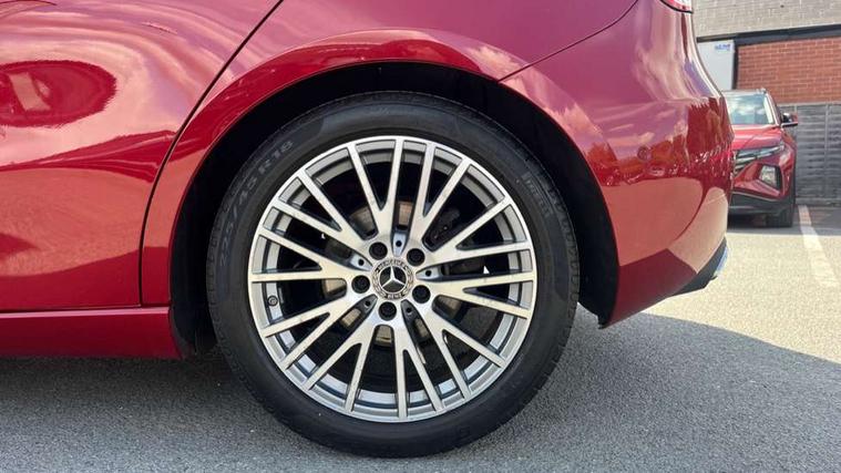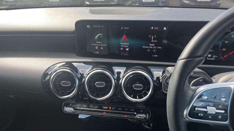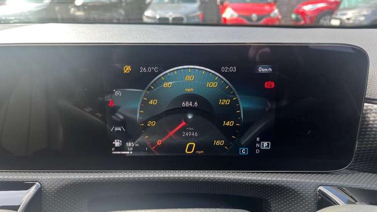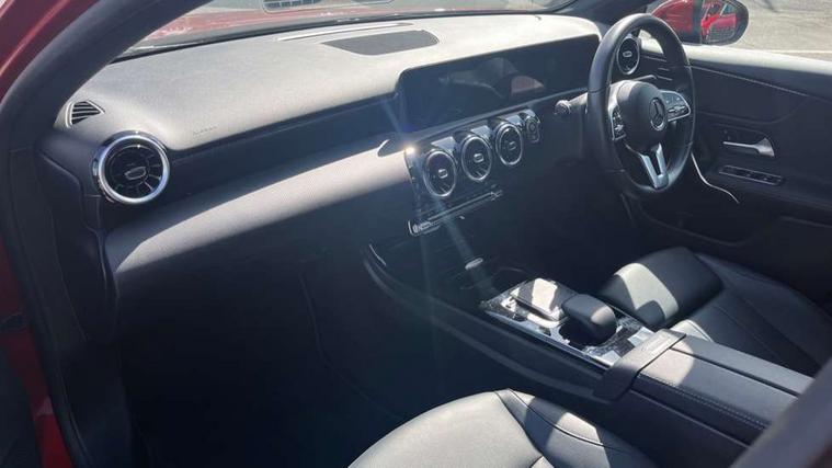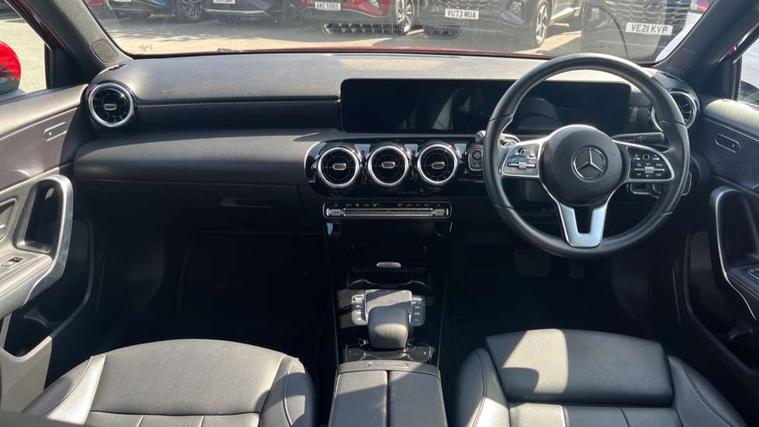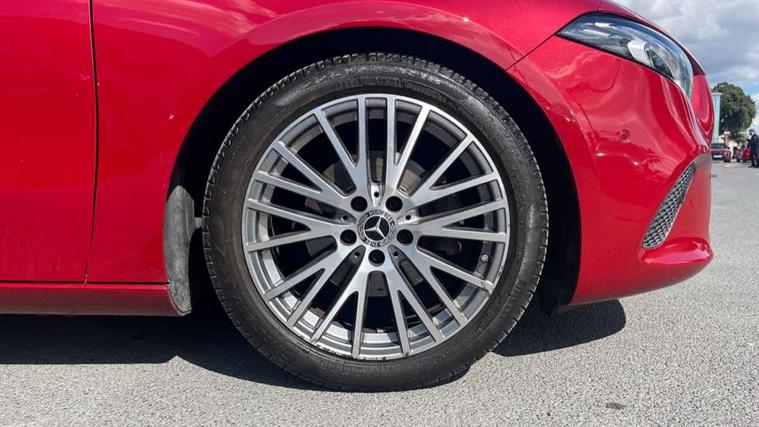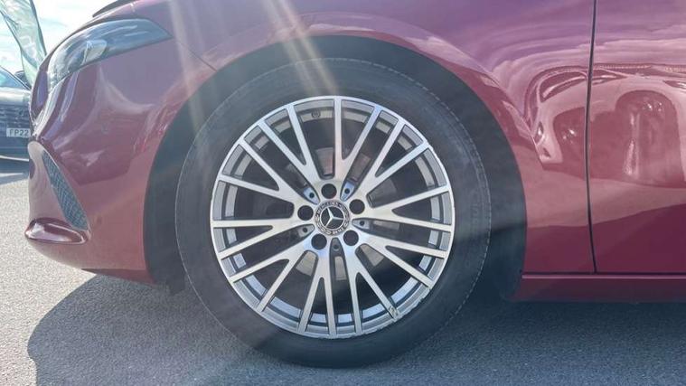 10.25" media display, 180 degree rear view camera with parking guidelines, 7" colour screen in instrument panel, Active parking assist with visual and audible warning of detected obstacles, Attention assist, Brake pad wear indicator warning light, Car wash mode, Cruise control + speed limiter, Direct steering, Dual bluetooth interfaces, DYNAMIC SELECT with a choice of driving modes (ECO, Comfort, Sport and Individual), ECO start/stop function, Fluid level warning indicator for fuel, oil, coolant and washer fluid, Hard-disk navigation, Hey Mercedes Voice activation, Lamp failure indicator, Lane keeping system, Mercedes me connect including emergency call system, accident recovery, breakdown and maintenance management, Mercedes me remote services, Outside temperature gauge, Owners manual in English, Pre-installation for private car sharing, Preinstallation for Mercedes Benz link, Service indicator (ASSYST), Smartphone integration with Apple CarPlay and Android auto, Speed sensitive power steering, Trip computer, Ultrasonic sensors positioned in the front and rear bumpers, Lowered comfort suspension, Rear axle torsion beam, 2 USB ports (type C) in rear stowage compartment and one in front of center console, 6 speakers, DAB Digital radio, MBUX multimedia system with DAB digital radio and touchpad including satellite navigation, Mercedes-Benz sound system - 100W, 4 Electric Front and Rear windows, Adaptive brake lights, Automatic headlights, Black weather strip, Body colour bumpers, Body colour door handles, Body colour side skirt, Body coloured door mirrors, Chrome beltline trim, Diamond radiator grille with black pins with one louvre in silver + chrome insert, Electric adjustable and heated door mirrors with integrated LED side indicators, Exhaust system - Twin visible tailpipes in polished stainless steel, Headlamp assist automatic headlamp activation, Heated glass rear windscreen + timer control, LED High level third brake light, LED high performance headlamps with integrated LED daytime running lights, LED tail lamp, Privacy glass, Radio aerial, Rain sensing windscreen wipers with two sensitivity settings, Rear fog lights, Rear side wing doors, Rear wiper, Window line trim strip in chrome, 3 seat bench in 2nd row, 3 Spoke leather multi function steering wheel, 40:20:40 split folding rear seats, Artico man-made leather upholstery, Auto Mercedes-Benz child seat recognition sensor, Black air vents with surround in silver chrome, Black roof lining, Controller on centre console with chrome surround, Front centre armrest with storage compartment, Front comfort seats with adjustable head restraints, Front door sills with Mercedes Benz lettering, Front seat backs luggage nets, Front seat cushion length adjustment, Gearshift paddles on steering wheel, Heated front seats, Height/reach adjustable steering column, Interior mirror with reading lamps in black and frameless, Manual height adjustable front seats, Rear head restraints, Seat occupancy sensor for front passenger seat, Single front passenger seat, Stowage compartment in centre console with retractable cover, Sunvisors with illuminated vanity mirrors, Touchpad on center console, Twin front cupholders, Two zone thermotronic luxury automatic climate control, Velour floor mats, Light and sight pack - A Class, Mirror package - A Class, Seat comfort pack - A Class, 3 rear 3 point seatbelts, ABS with Brake Assist, Active bonnet, Active brake assist includes forward collision warning system with autonomous braking, Adaptive brake assist with hold function and hill start assist, Black seatbelts, Childproof locks manually operated for rear doors and electrically operated for rear power windows, Crash responsive emergency lighting, Driver and passenger head and side airbags, Drivers knee airbag, Dual stage driver/passenger airbags, Electronic parking brake, ESP curve dynamic assist, ESP with ASR, Front and rear seatbelt reminder, ISOFIX and top tether child seat fixing points in two outer rear seats, Tyre pressure monitoring system, Warning triangle and first aid kit, Window airbags, Alarm system/interior protection/immobiliser, Keyless Go, Remote central locking and crash sensor with emergency opening function, Urban guard vehicle protection system with immobiliser and interior protection, Dark carbon fibre interior trim, 18" multi spoke light alloy wheels painted in himalayas grey with a high sheen finish, Summer tyres, Tirefit sealant kit,