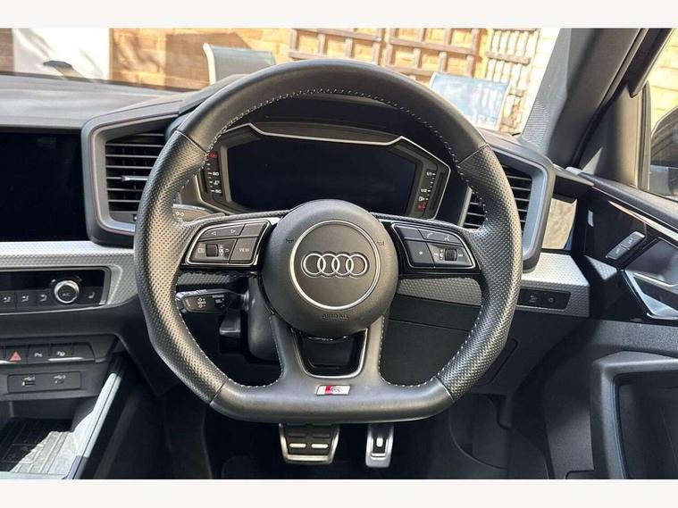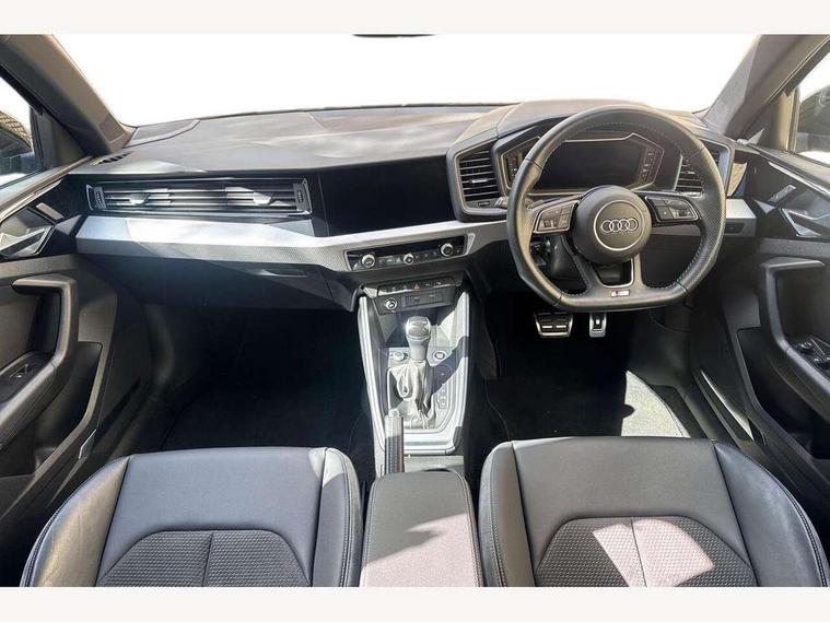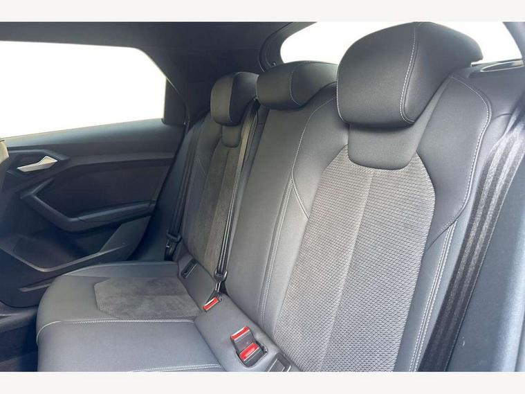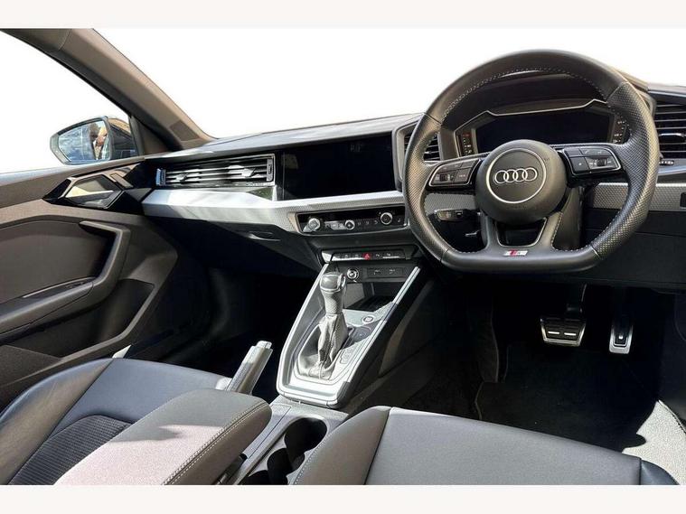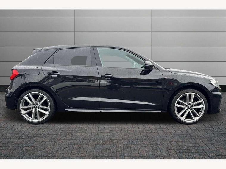 Adaptive speed assist, Audi connect safety emergency and service including E-call, Audi drive select - power steering assistance + engine + gear shift 3 preset modes (auto, dynamic, efficiency and an Individual mode), Audi phone box with wireless charging, Automatic start/stop system, Bluetooth interface, Cruise control, Driver's information system, Electromechanical power steering, Lane departure warning system, Service interval indicator, Speed limiter, Washer fluid level indicator, Sports suspension, 1 x SDXC card reader, 2 x USB type C connection points, DAB Digital radio, Auto dimming rear view mirror, Body coloured door mirrors, Door sills with aluminium inlays and S Line logo, Electric front and rear windows, Electrically adjustable, heated, folding door mirrors with integrated LED side indicator, Front side air inlets in grained matt black and C frame in titanium black, Heat insulating glass windscreen and side windows, Heated rear windscreen, LED headlights with LED rear lights + dynamic rear indicators + headlight adjustment and high beam, turning light + LED daytime running lights, Radiator grille and rear diffuser in matt titanium black, Radiator protective grille frame in matt aluminium silver, Rain and light sensors, Rear fog lights, Rear wiper, S line badges on front wings, Side front spoiler lips in grained matt black, 12V socket in centre console with two cup holders, 3 rear seats with headrests, 3 spoke flat bottomed multi-function plus leather steering wheel with S badging, grips in preforated leather, contrast stitching and paddle shift, 40:60 Split folding rear seat or folded fully, Black cloth headlining, Driver and passenger seat with manual height adjust with forward and backwards adjustment, Frequency alcantara/leatherette upholstery with contrast stitching in fine silver and S embossed logo + front sports seats, Front and rear black floor mats with contrast stitching in fine silver, Front head restraints, Height and reach adjustable steering wheel, ISOFIX child seat mounting for front passenger and outer rear seats including top tether attachment point of outer rear seats, Leather gear knob with aluminium trim, Luggage compartment light with front and rear reading lights, Manually adjustable lumbar support in front seats, Stainless steel pedals, Black exterior styling pack - A1 Sportback Vorsprung, Comfort and sound pack - A1 Sportback, Luggage compartment pack - A1, Multicoloured LED Ambient lighting pack - A1 Sportback, Plus pack - A1 Sportback, Technology pack - A1 Sportback, 3x3 point rear seatbelts, Audi pre-sense front with pedestrain and cyclist recognition, Brake assist function, Driver and front passenger airbag with front side and head airbags, Electronic Stability Control including ABS, EBD, ASR and EDL, Front and rear seatbelt reminder, Front passenger airbag deactivation switch, Hill hold assist, Seatbelt height adjustment for front seats, Seatbelt monitoring, Tyre pressure warning light, Warning triangle and first aid kit, Advanced key, Anti theft alarm, Anti theft wheel bolts and loose wheel warning, Immobiliser, Remote central locking with 2 foldaway keys, Aluminium trim for control switches, air vents and digital instrument cluster, Silver grey inlays polygon structure in diamond paint finish, Structured grey accent areas including air vents, door handle recesses and centre console in quartz paint finish, 18" 5 double arm design alloy wheels in matt titanium look with diamond cut finish,