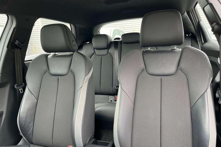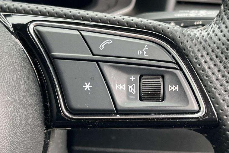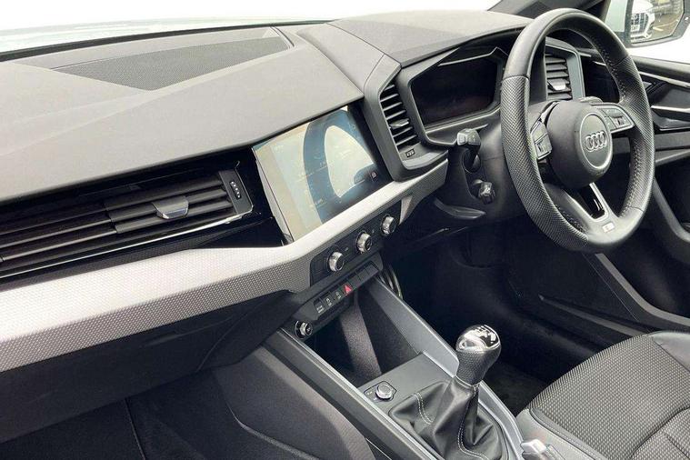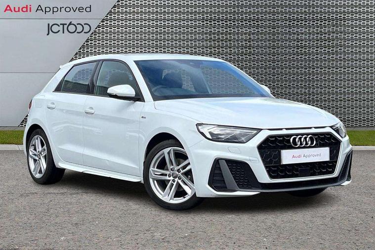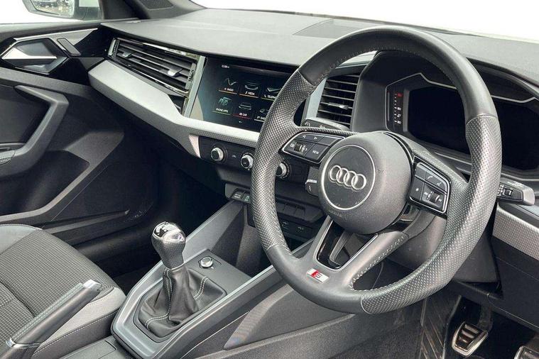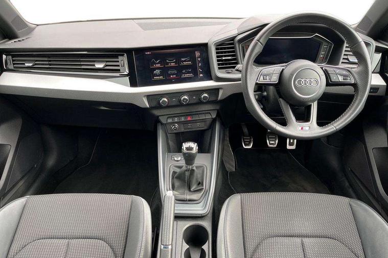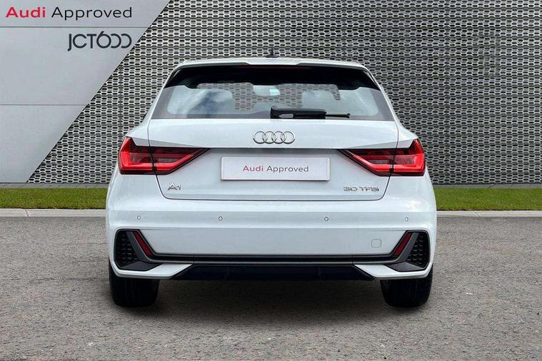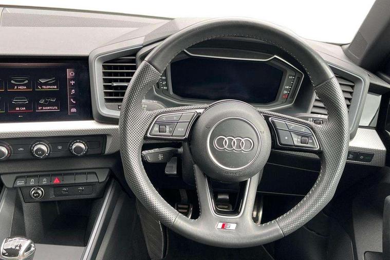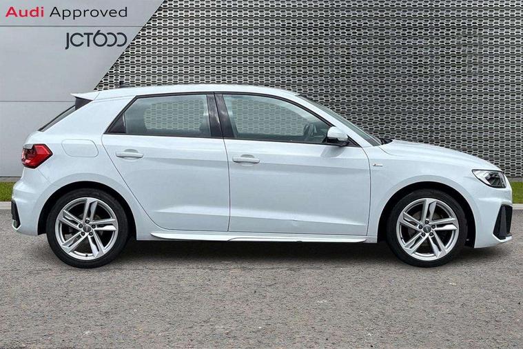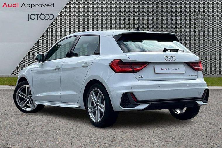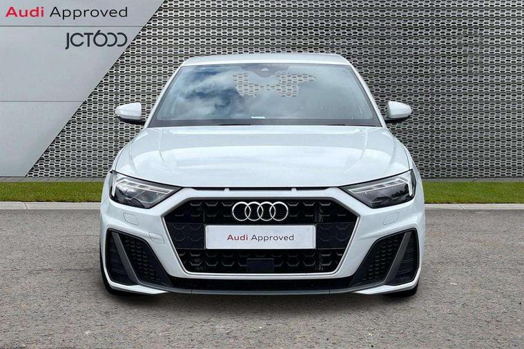 10.25" Digital instrument cluster display screen, Audi connect safety emergency and service including E-call, Audi drive select, Audi smartphone interface, Automatic start/stop system, Bluetooth interface, Driver's information system, Electromechanical power steering, Lane departure warning system, Service interval indicator, Speed limiter, Voice control system, Washer fluid level indicator, Sports suspension, 1 x SDXC card reader, 1 x USB type C and 1 USB type A charging points, Audi music interface, Bluetooth audio streaming, DAB Digital radio, MMI radio plus with 8.8" colour MMI display screen and MMI touch, Auto dimming rear view mirror, Body colour side sill mouldings, Body coloured bumpers, Body coloured door mirrors, Door sills with aluminium inlays and S Line logo, Electric front and rear windows, Front side air inlets in grained matt black and C frame in titanium black, Heat insulating glass windscreen and side windows, Heated rear windscreen, LED headlights with LED rear lights + dynamic rear indicators, Matt aluminium silver tailpipe trim, Matt black radiator grille frame, Matt platinum grey in front spoiler clip and rear diffuser clip, Rain and light sensors, Rear fog lights, Rear wiper, S line badges on front wings, S line exterior bumpers, S line roof spoiler, Side air inlet frames titanium black, Side front spoiler lips in grained matt black, 12V socket in centre console with two cup holders, 3 rear seats, Black cloth headlining, Driver and passenger seat with manual height adjust with forward and backwards adjustment, Front and rear black floor mats with contrast stitching in fine silver, Front head restraints, Height and reach adjustable steering wheel, ISOFIX child seat mounting in front passenger and rear outer seats, Leather gear knob with aluminium trim, Leatherette handbrake grip, Luggage compartment light with front and rear reading lights, Lumbar adjustment for front seats, Rear head restraints, Split folding rear seats, Stainless steel pedals, 3x3 point rear seatbelts, Audi pre-sense front with pedestrain and cyclist recognition, Brake assist function, Driver and front passenger airbag with front side and head airbags, Electronic Stability Control including ABS, EBD, ASR and EDL, Front and rear seatbelt reminder, Front passenger airbag deactivation switch, Hill hold assist, Seatbelt height adjustment for front seats, Seatbelt monitoring, Tyre pressure warning light, Warning triangle and first aid kit, Anti theft alarm, Anti theft wheel bolts and loose wheel warning, Immobiliser, Remote central locking with 2 remote folding keys, Aluminium trim for control switches, air vents and digital instrument cluster, Silver grey inlays polygon structure in diamond paint finish, Structured grey accent areas including air vents, door handle recesses and centre console in quartz paint finish,