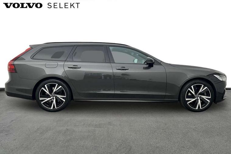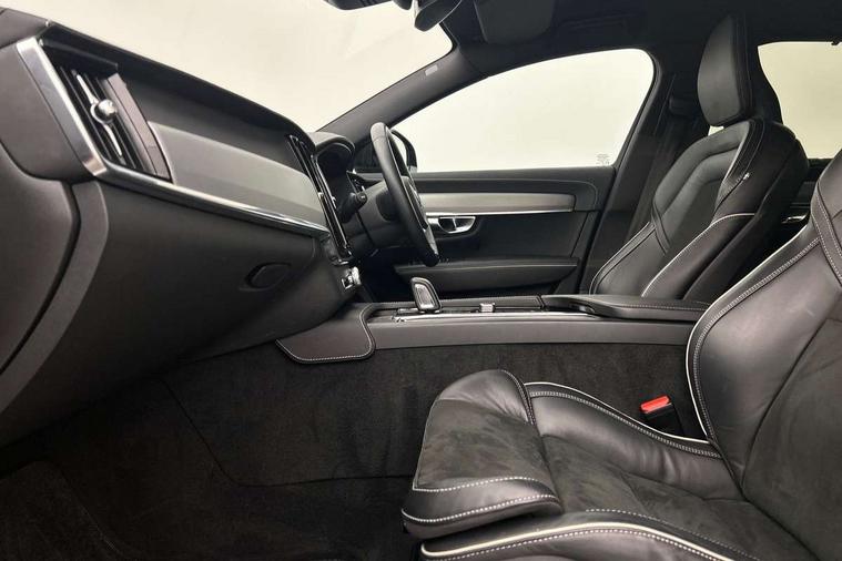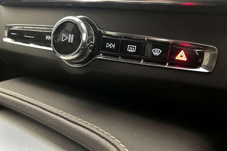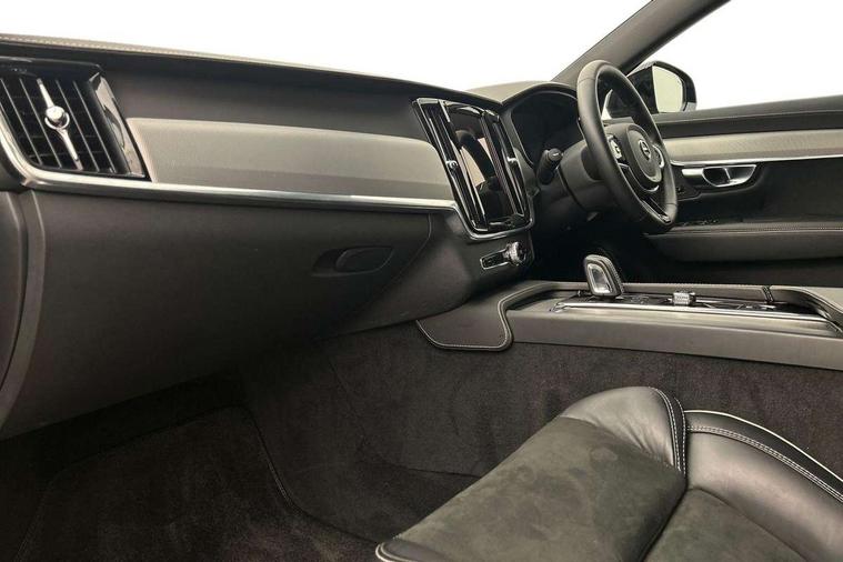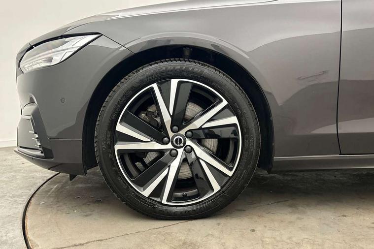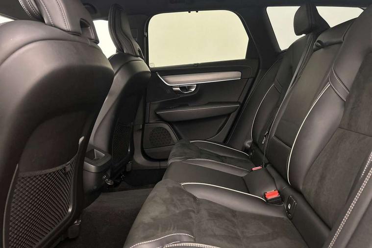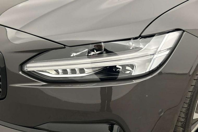 12.3" Progressive Driver Display, 9" centre console touch screen, Adjustable steering wheel force, Bluetooth Handsfree Phone Connection, Drive mode settings, E-call, Google automotive services - Enabled entertainment apps, navigation with google maps, voice recognition with google assistant, Lane keep assist with driver alert control, Oncoming Lane Mitigation, Power operated tailgate, Speed limiter, Speed sensitive steering, Volvo on call, Wireless/Inductive Mobile Phone Charging, 8 speed automatic transmission with start/stop + manual change functions, DAB Radio (Digital Audio Broadcasting), Steering wheel remote infotainment controls, Adaptive brake lights with high level LED brake lights, Auto dimming interior + exterior mirrors, Automatic headlamp levelling, Automatic LED Headlights + Active high beam incorporating daytime running lights, Colour coordinated auto folding and heated power door mirrors, Dark tinted windows for rear side windows and cargo area, Front and rear power windows, High gloss black door mirrors and window surround, High gloss black lower front bumper, High gloss black mesh front grille with silk metal surround, High gloss black rear bumper deco, Home safe and approach lighting, Integrated roof rails in high gloss black, Puddle lights in exterior door handles, Rain sensor with automatic windscreen wiper activation, Rear LED lights with sequential indicators, Rear side wing doors, Rear wiper, Roof antenna, Roof spoiler, Visible VIN plate, 3 seat bench in 2nd row, 3 spoke leather steering wheel with chrome trim, A-pillar parking ticket holder, Ambient door and instrument panel lighting, B Pillar ventilation, Bright metal luggage threshold, Cargo divider with grocery bag holder, Center Console Cupholders and Storage, Charcoal headlining, Driver's side lower dashboard storage compartment, Extended front seat cushions, Front 12V socket tunnel console and cargo area, Front centre armrest storage illumination, Front footwell and side step illumination, Front head restraints, Front/rear door pockets and front cupholder illumination, Front/rear reading lights, Heated front seats, Height/reach adjustable steering column, Illuminated front and rear tread plates, Illuminated glovebox, Illuminated luggage compartment, Illuminated tailgate, Illuminated vanity mirrors + ticket holder, Integrated sun curtains in rear doors, Isofix system on outer rear seats, Load cover, Load protection net, Off-black finish in steering wheel, Power driver seat with memory for seat and exterior mirrors, Power Folding Rear Seat Backrests and Headrests, Rear armrest with storage + cupholders, Rear footwell and side step illumination, Single passenger seat, Ski hatch, Sport pedals, Sports floor mats, Sports leather gear knob, Sports tailored steering wheel, Underfloor cargo storage, Versatile split folding rear seat - 60/40, Driver assist pack - V90, 3x3 point rear seatbelts, Active bonnet, City safety with steering support with Pedestrian + cyclist + front collision warning with full auto brake and rear auto brake, Drivers knee airbag, Dual stage driver/passenger airbags, Front seats SIPS airbags, Hill start assist, IC (Inflatable Curtains) - Full Length, Passenger airbag cut-off device, Power parking brake with auto hold function, Road sign information display, Run off Road Mitigation, Run off Road Protection, Seatbelt reminder and pretensioners for all seats, SIPS (Side Impact Protection System), Slippery road and hazard light alert, Stability and Traction Control with Spin control, Engine Drag Control and Corner Traction Control, Tyre pressure monitoring system, Vehicle deceleration control with Anti-lock Brake System, Electronic Brake Distribution and Emergency Brake Assist, Warning triangle and first aid kit, WHIPS whiplash protection system - front, Anti-theft alarm including immobiliser/volume sensor + level sensor, Care key with user defined top speed, Key integrated remote control central locking + fuel flap with deadlocking system and auto open/close power windows, Keyless drive with Keyless entry and start, Locking wheel nuts, Private locking for tailgate, Metal mesh inlays, Tailored Instrument Panel and Door Tops with Contrast Stitching,