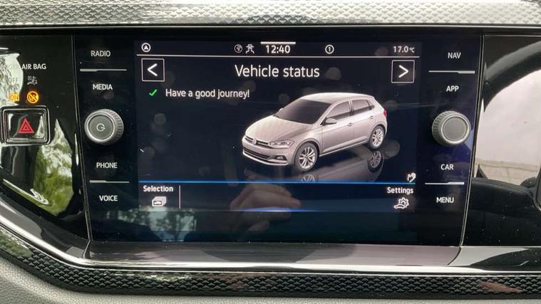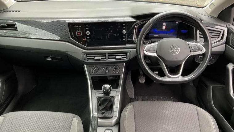 Adaptive cruise control without follow-to-stop and speed limiter, Bluetooth mobile phone interface, Driver alert system, Emergency call service, Front assist system, Power assisted speed sensitive steering, Preparation for We connect and We connect plus, Speedo and rev counter, electronic odometer, trip, service interval display and fuel gauge, Standard rear axle, Travel Assist - Lane keeping system and traffic jam assist, Travel assist including emergency assist, Trip computer, Warning signal and warning light for front and rear seatbelts not fastened, Washer fluid level indicator, Wireless app connect, Front wheel drive, Rear shock absorpion, Start-stop system with battery regeneration (recuperation - energy recovery during braking), DAB Digital radio, Diversity antenna for FM reception, Front and rear 6 speakers, Automatic dimming interior rear view mirror, Body colour bumpers, Body colour door handles, Body colour door mirrors, Electric front windows, Heat insulating darkened glass in side and rear windows, Heat insulating glass windscreen, Power folding adjustable/heated exterior mirrors and front passenger exterior mirror lowering function, Rain sensor, Rear electric windows, Rear fog light, Rear side wing doors, Rear windscreen washer and wiper with interval delay, Third brake light, 12V power socket in centre console, 2 front and 2 rear reading lights, 2 USB-C ports in the front, 2 USB-C charging sockets on the center console in the rear, 3 rear head restraints, 60/40 split folding rear seat and rear seat bench not split, Ceramique headliner, Chrome plated radiator grille inserts, air vent surrounds and light switch surrounds, Door and side trim panel, Driver and front passenger seat height adjustment, Driver/passenger sunvisors with illuminated vanity mirrors, Front centre armrest, Front seat backrest storage pockets, Front standard seats, Handbrake lever handle in leather, Hartley/Thomas cloth upholstery, Isofix child seat preparation easy-fit (for two outer rear seats, and front passenger seat) compatible with I-size, Leather trimmed gear knob, Luggage compartment cover, Luggage compartment floor, Luggage compartment lighting, Multifunction steering wheel, Single front passenger seat, Standard pedal cluster, Light and vision pack - Polo, 3 point height adj front seatbelts + pretensioners, 3x3 point rear seatbelts, ABS, Driver and front passenger airbag with front passenger airbag deactivation, Drivers and front passengers safety optimised head restraints, ESC (Electronic stability control) + EDL (Electronic Differntial lock) and ASR (Traction control), Extended and predictive pedestrian/ cyclist protection, Front curtain and side airbags with center airbag, Front disc brakes, Hill hold control, Manual child lock in rear doors, Rear drum brakes, Single tone horn, Tyre pressure loss indicator, Alarm with interior protection, Anti-theft alarm system with interior monitoring, backup horn, and towing protection, Anti-theft wheel bolts, Electronic engine immobiliser, Lava stone black gloss/matt decorative inserts in dash and front door panels, Low rolling resistance tyres,