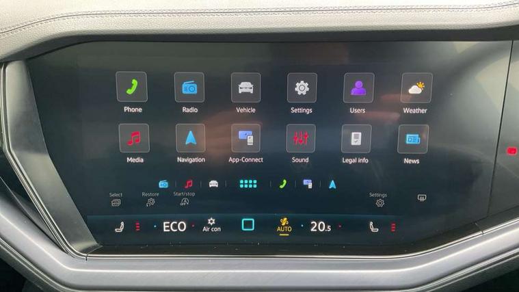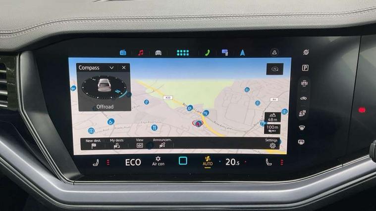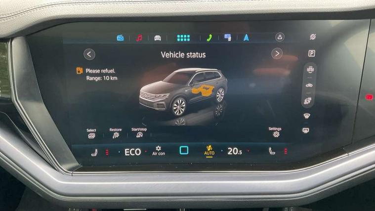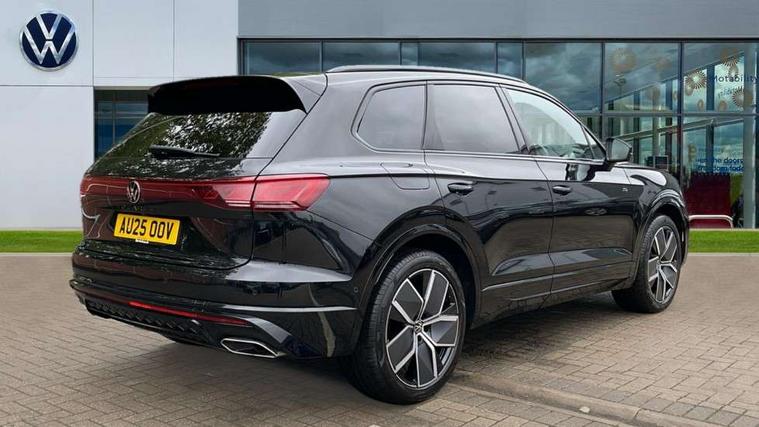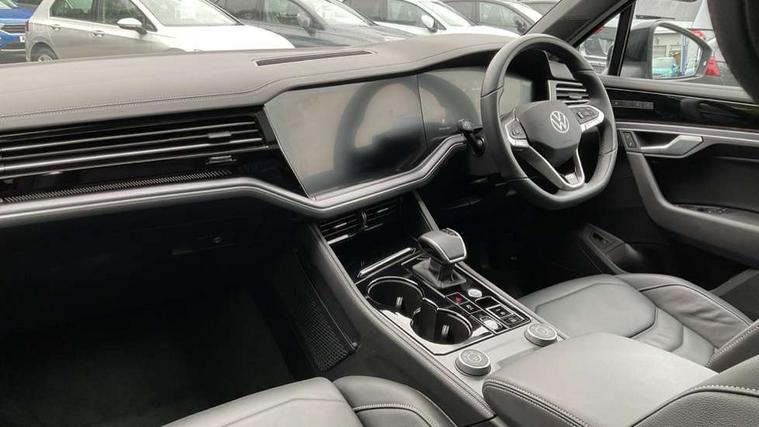 15" Screen Top infotainment system Premium (MIB3), Adaptive cruise control, Advanced driver attention and drowsiness monitor, Driver profile selection, Dynamic road sign display, E-Sim card for online connectivity, eCall emergency system, Innovision cockpit, Intelligent park assist, Mobile phone interface with inductive charging, Multi-colour Active Info display, Park Assist - Sensor controlled steering aid to assist parallel or bay parking, PAS, Warning signal and warning light for front and rear seatbelts not fastened, Wireless app connect, Adaptive chassis control, DAB Digital radio, Diversity antenna for AM/ FM reception, We Connect and We Connect Plus functionality, Automatic coming/leaving home lighting function, Automatic headlights, Black door mirrors, Black style comfort bumpers, Dynamic headlight range control with dynamic cornering light, Electric front tilt/slide panoramic sunroof and fixed rear sunroof, Electrically power adjustable, heated, folding, auto dimming, front passenger exterior door mirror lowering function, External USB type C socket and charging sockets, Gloss black roof rails, HD LED Matrix beam plus digital headlight projection with variable light distribution, Headlight washers, Highway light, LED 3rd brake light, LED daytime running lights, LED rear combination lamp with variable lighting functions and special styling, Poor weather light, Rain sensor, Rear exhaust tailpipe, Rear fog light with back up light on both sides, Rear light bar and illuminated logo, Rear side wing doors, Rear wiper, Stainless steel door sill protection, 12V socket in centre console, 3 rear headrests, 3 seat bench in 2nd row, 4 zone climate control, Airbag label on sun visor and B-pillar, Brushed stainless steel pedals, Double sun visors with illuminated vanity mirrors, Front + rear carpet mats, Front centre armrest, Leather wrapped multifunction sports steering wheel, heated, with touch control and shift paddles, Mechanical rear seat release, Power adjustable lumbar support in front, Power seats in front, right side with memory features and seat cushion depth adjustment, Rear seat backrest and split folding with center armrest, Single front passenger seat, Memory pack plus - Touareg, 3 point seatbelts, outer rear with ECE lable, ABS, Child locks on rear doors, Curtain airbags, Driver and front passenger safety-optimised head restraints, Driver/Front Passenger airbags, Extended pedestrian protection measures, Front assist, Front seat side impact airbags, Generative braking with start and stop system, Height adjustable 3 point front seatbelts with pre tensioners, Passenger airbag deactivate switch, Three 3 point rear seatbelts, Two tone horn, Tyre pressure loss indicator, Warning triangle and first aid kit, Alarm system with interior protection, Easy open and close sensor controlled luggage compartment opening and closing with remote unlocking, Keyless Access Keyless locking and starting system with SAFELOCK, Aluminium decorative inserts, Black decorative trims, Gloss black decorative inserts in centre console, Tool kit,