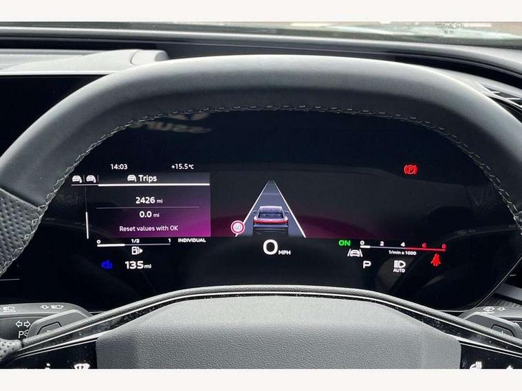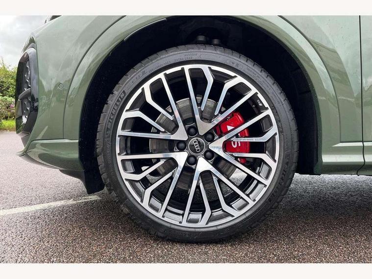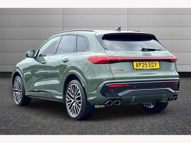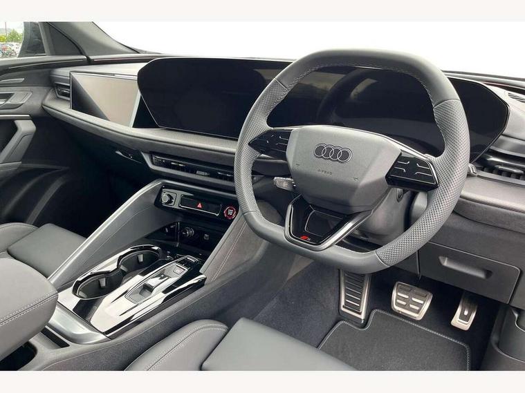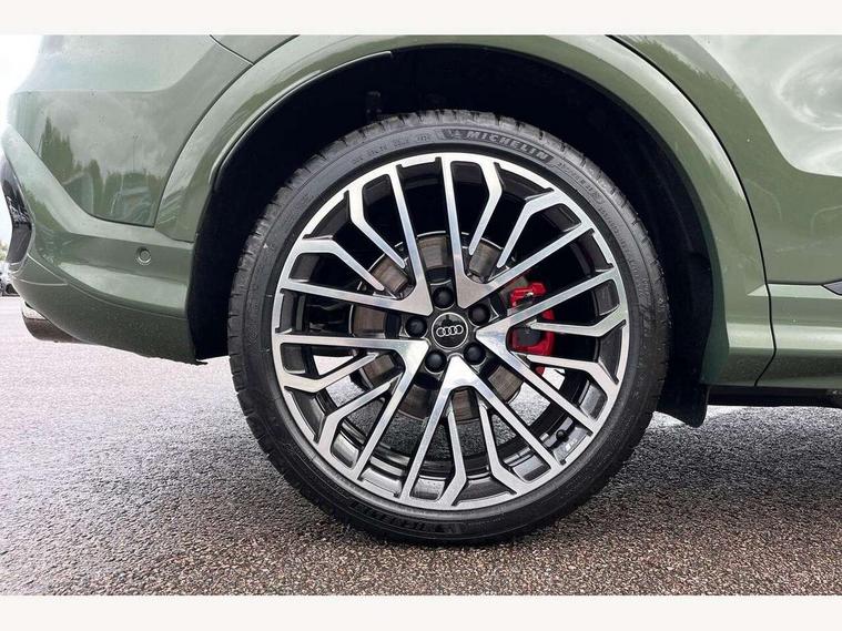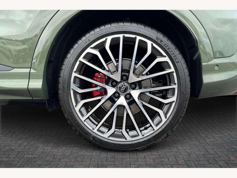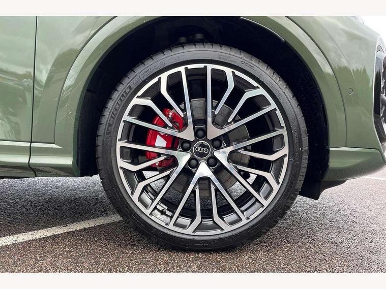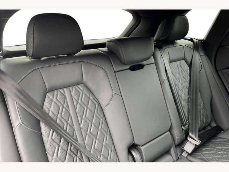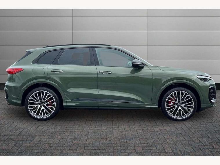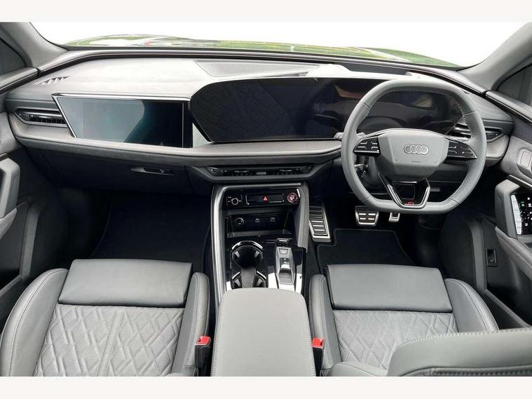 Adaptive cruise assist plus with steering intervention, Advanced driver attention alert, Audi application store, Audi connect emergency call and service, Audi digital key, Audi drive select, Audi smartphone interface, Audi virtual cockpit plus with 11.9" OLED colour display, Camera based traffic sign recognition, Fatigue monitor, Front cross traffic intersection assist, Garage door opener, Lane change assistant with exit warning system, rear cross traffic alert and rear turn assist, Lane departure warning with emergency assist, MMI 10.9" front passenger touch display, MMI navigation plus with high resolution 14.5" OLED touchscreen colour display, Park assist plus, Parking system plus with 360 display, PAS, Reversing camera, Swerve assist and turn assist, Top view camera, Traffic sign based speed limiter, S adaptive air suspension, 2 USB-C ports in both the front and rear, DAB Digital radio, Smartphone compartment with wireless charging, Acoustic glass for front door windows, Active digital light signatures - Six additional combinations of active daytime running light signature, Auto dimming rear view mirror, Coming/leaving home lighting function, Digital OLED tail lights including communication light, Electrically adjustable heated and folding + automatically dimming exterior mirrors, Exhaust tailpipes in dark chrome, Front and rear electric windows, Front door sill trims with aluminium inlays, illuminated with 'S' logo, Full body paint finish, Headlight cleaning system, Heated rear window, High beam assist, High gloss window surrounds, Inlay and front air inlets in matt anthracite chrome, Logo projection light in exterior mirrors, Matrix LED headlights, Memory function for door mirrors, Privacy glass, Projection light for rear window, Radiator grille in phantom black, Rear and side windows with heat insulating glass, Rear honeycombe grille in matt black with inlay in matt anthracite chrome, Rear side wing doors, Rear wash/wipe, Red S rhombus badging with 'S' lettering on rear, S exterior styling, Towbar preparation, Windscreen with acoustic glazing, 3 rear head restraints, 3 seat bench in 2nd row, 3 spoke leather steering wheel with multi-function buttons with touch control, flattened on top and bottom, with S badging and contrast stitching, 40:20:40 split folding rear seat bench with centre armrest and cup holders, Comfort centre armrest, Deluxe 3 zone electronic climate control, Electric steering wheel adjustment, Electrically adjustable front seats with memory function for driver's side, Front and rear floor mats, Front seat ventilation, Front sport seats with integrated head reastrains, Headlining in black cloth, Heated front seats, Heated outer rear seats, Heated steering wheel, i-Size child seat mounting on the front passenger side and outer rear seats, i-Size and top tether on the outer rear seats, Increased charging capacity for USB ports 2X100 Watts in rear, 2X60 Watts in front, Interior trim in aluminium look, Luggage compartment lid, electrically opening and closing, Perforated fine nappa leather with diamond stitching incl. ventilation and massage function for front seats, Pneumatically adjustable lumbar support with massage function for front seats, S embossed logo on front sport seats, Single front passenger seat, Softwrap in Dinamica, Stainless steel pedals and footrest, Steering wheel grips in perforated leather and shift paddles, Ambient lighting package plus - Q5, Black styling package plus - Q5, Sound and Vision pack - Q5, Storage and luggage compartment pack - Q5, 3x3 point rear seatbelts, ABS, Acoustic vehicle alerting system, Convenience key with safelock, Driver and front passenger airbag with passenger airbag deactivation, Electric child safety locks, First aid kit with warning triangle and high visibility vests, Front emergency brake assist, Front side airbags with head airbag system and front interaction airbag, Hill hold assist, Occupant detection in rear seat area, Proactive passenger protection system for front, sides and rear, Red brake calipers, Side airbags in front and rear with head airbag system and front interaction airbag, Tyre pressure loss indicator, Anti theft alarm, Anti-theft wheel bolts, Remote control key with SAFELOCK and keyless go, Accent surfaces and control buttons in gloss black, Black dashboard with contrast stitching, Steel grey seat stitching, Upper and lower interior elements in dinamica microfiber, Tyre repair kit,
