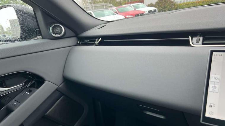 11.4" touch screen, 3D 360 degree surround camera with wade sensing, Adaptive cruise control, Android Auto, Apple car play, Blind spot assist, Bluetooth connectivity, Brake pad wear indicator warning light, Driver condition monitor, eCall emergency system, Eco mode, Electronic power assisted steering (EPAS), Front and rear parking aid, InControl remote, Interactive driver display, Land Rover InControl apps, Lane keep assist, Pivi pro connected includes diamond pivi variant, smart settings, connected navigation pro, nuance speech licence, Powered tailgate/boot lid, Rear collision monitor, Rear traffic monitor, Tailgate, Traffic sign recognition with adaptive speed limiter, Voice control system, Wireless device charging, All terrain progress control, Diesel exhaust fluid (DEF) large tank, Efficient Driveline, Large fuel tank, Terrain Response 2, Digital Audio Broadcast radio-DAB, Steering wheel mounted controls, Acoustic laminated windscreen, Auto headlights, Auto high beam assist, Automatic headlight levelling, Electric windows with one touch open/close and anti trap, Flush deployable exterior door handles, Front and rear recovery eyes, Heated rear window with timer, Heated washer jets, Heated windscreen, LED headlights with signature DRL and LED tail Lights, Power fold, auto-dimming, heated door mirrors with approach lights and auto dimming driver side, Rain sensing windscreen wipers, Rear animated directional indicators, Rear fog lights, Rear side wing doors, Rear wiper, Side repeater indicators in mirror, Tailgate spoiler, Third brake light, Winter wiper park position, 12 way driver memory and 10 way passenger electric front seats with 2 way manual headrest + 4 way lumbar support, 40:20:40 split folding rear seats with centre headrest and armrest, Ambient interior lighting, Bright metal pedals, Carpet mats, Chrome tread plates with range rover branding Includes stainless steel loadspace scuff plate with etched graphic, Customer configurable single point entry, Front and rear cupholders, Heated front seats, Heated steering wheel, Isofix system on outer rear seats, Manually adjustable steering column, Overhead lighting console, Overhead stowage for sunglasses, Passive front head restraints, Rear air vents, Rear head restraints, Satin chrome gearshift paddles, SE Grained leather upholstery, Single passenger seat, Standard steering wheel with Moonlight Bezel, Sunvisors with illuminated vanity mirrors, Twin sliding front centre armrest, Power socket pack 2 - Evoque, 3 rear 3 point seatbelts, Anti-lock braking system (ABS), Brake hold function, Customer configurable autolock, DSC - Dynamic Stability Control, Electronic brake force distribution, Electronic parking brake, Electronic traction control, Emergency braking, Front and rear seatbelt reminder, Hill descent control, Hill launch assist, Low traction launch, Occupant protection assist, Passenger seat occupant detector, Power operated child locks, Roll stability control, Six airbags - Driver and passenger airbags/driver knee airbag/front side airbag and curtain airbags, Torque vectoring brake, Tyre pressure monitoring system, Alarm, Immobiliser, Intrusion sensor, Keyless entry, Locking wheel nuts, All season tyres,