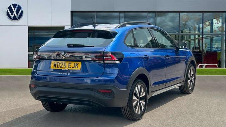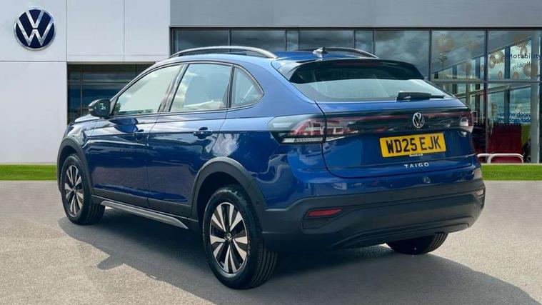 8" Digital cockpit basic display, Advanced driver attention and drowsiness monitor, Dynamic road sign display, e-Call (emergency call), Power Steering, Predictive adaptive cruise control, Travel assist including emergency assist, Washer fluid level indicator, Wireless Charging including Bluetooth, Start-stop system with battery regeneration (recuperation - energy recovery during braking), Digital radio reception (DAB+), WeConnect plus, Ambient lighting with logo projection, Aspherical driver's exterior mirror, Auto headlights, Body coloured bumpers, Body coloured exterior mirror housings and door handles, Electric windows, External USB type C socket and charging sockets, Heat insulating glass windscreen, LED rear combination lamp, LED third brake light, Left convex exterior mirror, Power folding adjustable/heated exterior mirrors and front passenger exterior mirror lowering function, Rear fog light on one side, reversing light on both sides, Rear side wing doors, Rear wash/wipe with intermittent wipe setting, 'Slash/ Austin' Cloth upholstery, 12V socket in centre console, 2 front reading lights, 3 rear head restraints, 3 seat bench in 2nd row, Black carpets, Child seat anchor for child seat system i-Size, 2x top tether and child seat anchor in front on front passenger side, Door and side trim panels in titan black, Driver and front passenger seat height adjustment, Front centre armrest, Handbrake lever handle in leather, Height and reach adjustable steering wheel, Leather trimmed gear knob, Leather wrapped multifunction steering wheel, Luggage compartment floor, Luggage compartment light, Lumbar support for driver's and front passengers seat, Seat covers in titanium black, Single front passenger seat, Split folding backrest with centre armrest and unsplit rear seat bench, Storage compartment under front seats, Sun visors with illuminated vanity mirrors, Chrome Package - Taigo, Drivers assistance pack - Taigo, Light and Sight pack including High beam assist - Taigo, 2 x 3-point seatbelts/outer rear seats with ECE label, 3-point seat belts in front with pretensioner and height adjustment, 3-point seatbelt for centre rear seat, Adaptive driver and front passenger airbags with passenger airbag deactivation function, Driver and front passenger airbags with front passenger airbag de-activation, front side and curtain airbags, Driver and front passenger safety-optimised head restraints, Electronic stability control, Extended and predictive pedestrian/ cyclist protection, Front and rear disc brakes, Front curtain and side airbags with center airbag, Hill start assist, Manual rear child locks, Single tone horn, Tyre pressure loss indicator, Anti-theft alarm system with interior monitoring, backup horn, and towing protection, Lava stone black gloss/matt decorative inserts in dash and front door panels, Low rolling resistance tyres,