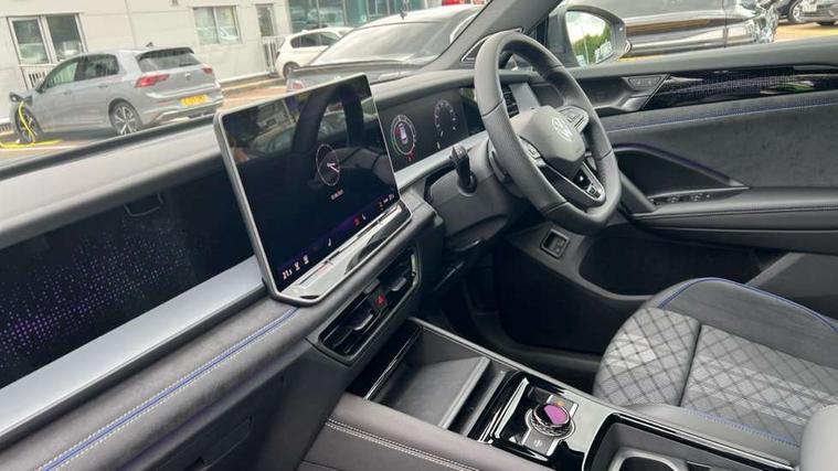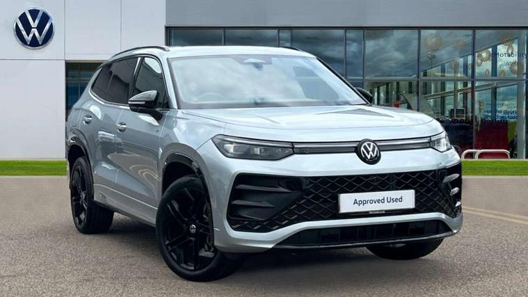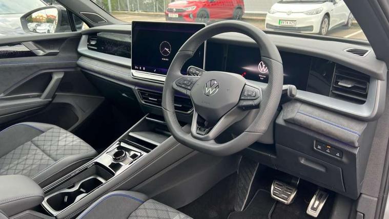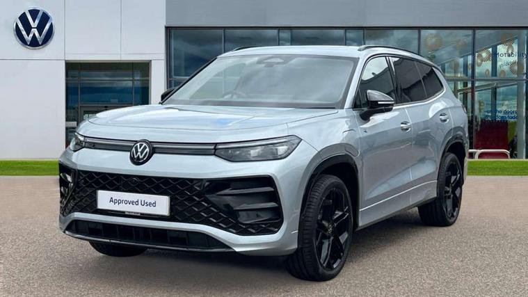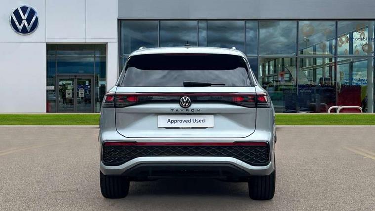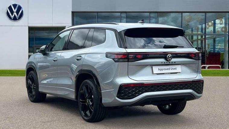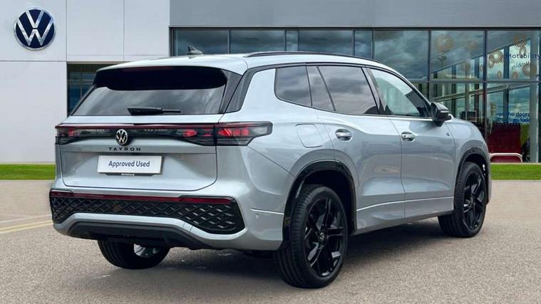 Adaptive cruise control (ACC), Digital Cockpit Pro - 10.25" high resolution dash display screen with customisable menus and information, Driver alert system, Driver attention monitoring system, Dynamic road sign display, E-Sim card for online connectivity, eCall emergency call system, Lane change system, Side assist, Rear traffic alert and Exit warning system, Multifunction front facing camera, Oncoming vehicle braking when turning including swerve support, Progressive steering, Start/stop system with regenerative braking, Voice activation spoken voice commands for telephone and navigation system, Warning signal and warning light for front and rear seatbelts not fastened, Wireless App-Connect, Adaptive chassis control DCC pro includes driving mode selection, Charging cable Mode 2 Type 2 / G (10A), Charging cable Mode 3 Type 2 / 3 (16A), Front shock absorption G08, Front wheel drive, Rear shock absorption, Digital radio reception (DAB), Diversity antenna for FM reception, Air intake with Chrome trim, Auto dimming interior rear view mirror, Automatic headlight control system, Body colour door handles, Chrome moldings on the side windows, Coming/leaving home lighting function, Dynamic headlight range control with dynamic cornering light, Exterior mirrors convex on the left and aspherical on the right, Heat insulating glass in side and rear windows, Illuminated Volkswagen logo rear with animation, Laminated safety glass winshield, heat insulating, LED 3rd brake light, LED separate signature day time running light, Puddle lights, Rain sensor windscreen wipers, Rear fog light on one side, reversing light on both sides, Rear side wing doors, Rear wiper, Reverse activated passenger's door mirror, Surround lighting with welcome light, Tilting and sliding panoramic sunroof with rear panoramic sunroof, Volkswagen logo in front, illuminated lighting animation with wake up/goodbye scenario and illuminated door handles, 10 colour interior ambient lighting, 12V outlet in center console rear and in luggage compartment, 3 rear headrests, 3 rear seat bench in 2nd row, split folding, longitudinally movable and folding with load-through hatch, Black roof lining, Brushed stainless steel pedals, Carpet mats, front and rear, Centre console with illuminated storage compartment with sliding cover and two drinks holders, Chrome elements on the mirror switch and power window switches and door pulls, Door and side trim panel insert in Art velour, Flat luggage compartment floor, Front centre armrest, Front scuff plates in alumium, ISOFIX anchors for child seats on outer rear seats and front passenger seat compatible with i-Size, Mechanical rear seat release, Power adjustable lumbar support in front, Single front passenger seat, Sports comfort seats in front, Sun visors with illuminated vanity mirrors, Comfort package with park assist pro - Tayron, 3 Point seat belts in front with pretensioners, 3 point seatbelts in outer rear with ECE label, Autonomous emergency braking front assist with pedestrian and cyclist monitoring, Driver and front passenger airbag with front passenger airbag deactivation, Electronic parking brake with auto hold, First aid kit with warning triangle and safety vest, Front and rear curtain airbags, Front and rear side airbags, Front centre airbag, Front disc brakes, Hill start assist, Rear disc brakes, Two tone horn, Decorative material set R-Line, Interior door handle in matte chrome, Tool kit for tyre mobility set, Tyre mobility kit including compressor and sealing foam. In lieu of spare wheel,