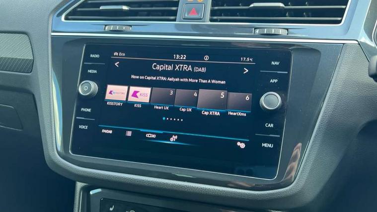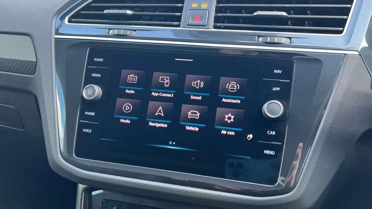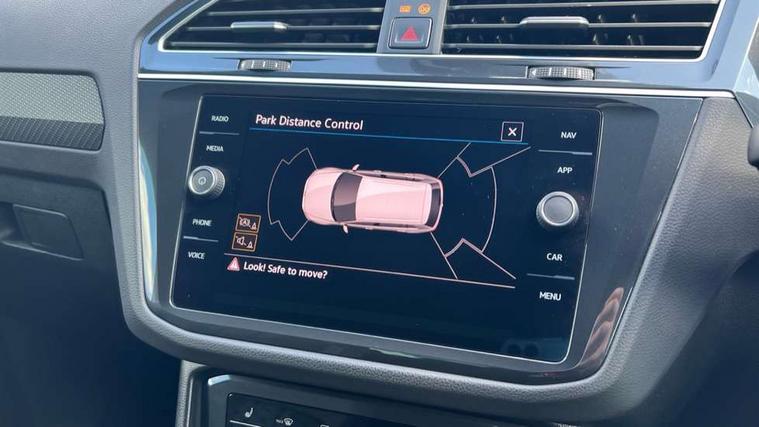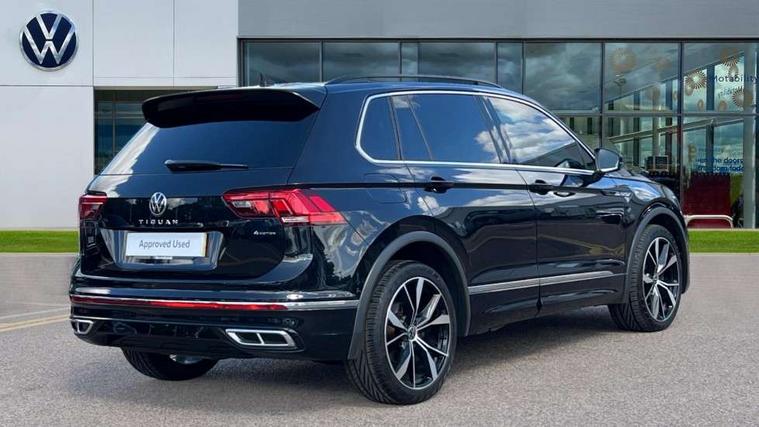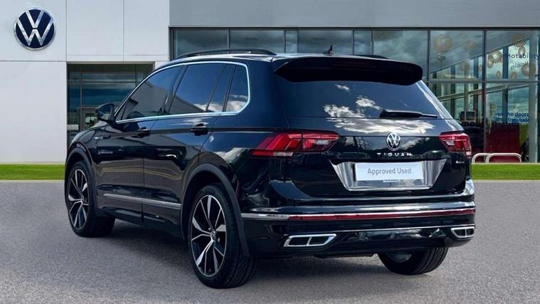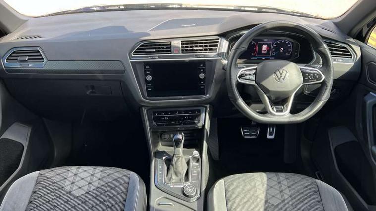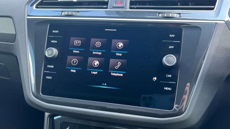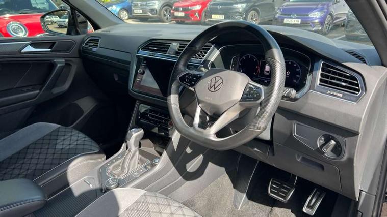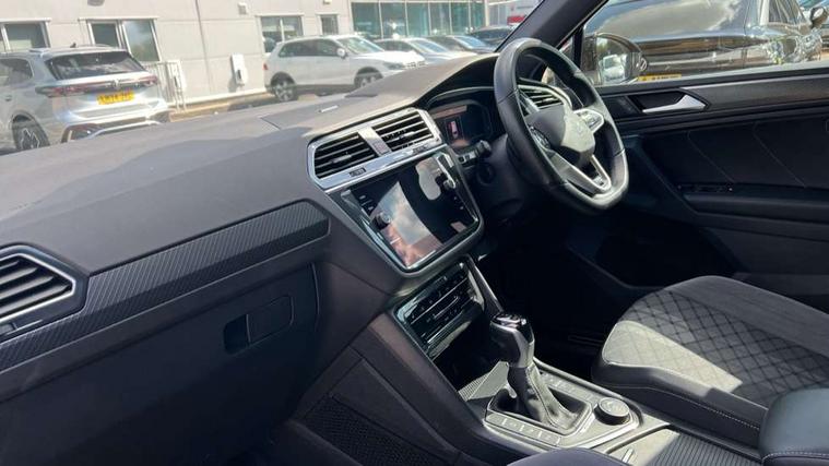 Adaptive cruise control ACC stop and go including speed limiter, App-Connect incl. App-Connect Wireless for Apple CarPlay and Android Auto, Bluetooth phone integration system, Digital Cockpit Pro - Active info display, Distance control assist, Driver alert system, Driver profile selection, Dynamic road sign display, eCall emergency call system, Electromechanical speed sensitive power steering, Front/rear Parking distance control, Lane keeping system Lane Assist, Lights on warning, Multifunction front facing camera, Outside temperature display, Premium multifunction display with multi colour display, Service interval indicator, Start/stop system with regenerative braking, Tailgate/trunk lid unlocking from outside, Warning sound and light for doors and tailgate open, Battery regeneration during braking, Diesel particulate filter, Misfuel prevention device for diesel engine, XDS electronic differential lock for improved traction and handling, 2 USB-C ports in the front, 1 USB-C charging socket on the center console in the rear, Diversity antenna for FM reception, Radio, SD card slot, Simultaneous pairing of 2 compatible mobile devices, SMS functionality - read, compose and send SMS messages using touch-screen display, Title and cover art display, Auto dimming interior rear view mirror, Automatic headlight control system, Black roof rails, Body colour door handles, Body coloured bumpers in R Line style, Chrome moldings on the side windows, Coming/leaving home lighting function, Dynamic headlight range control, Front and rear electric windows, Heated rear window, High level 3rd brake light, Laminated safety glass windshield, heat and sound insulating, LED rear number plate lights, License plate carrier in front and rear, Poor weather light and cornering light, Power adjustable, folding and heated door mirrors with surround lighting, front passenger exterior mirror lowering function, Privacy glass for rear side windows and rear window, R Line body kit, R Line side sills, Rain sensor windscreen wipers, Rear exhaust tailpipe, Rear fog lamp, Rear spoiler in R style, Rear windscreen washer and wiper with interval delay, Side and rear windows in heat insulating glass, Trailer Stability Programme, Unique R Line badging, Windscreen wipers/ intermittent wipe + 4 position delay, 12V outlet in center console rear and in luggage compartment, 12V outlet in front and tray, 2 cup holders in front, 2 LED front reading lights, 2 LED rear reading lights, 3 rear headrests, 4 load lashing points, 40:20:40 split folding rear seats, Air Care Climatronic 3 zone automatic climate control with enhanced air filter and controls in the rear, Backrest release for left front seat, Black headlining, Brushed stainless steel pedals and footrest, Carpet mats in front and rear with decorative stitching in Gray, Door and side trim panel in foam film, insert in leatherette, Driver + front passenger lumbar support, Front footwell illumination, Front seats head restraints (x-adjustment), Height adjustable front seats, Height/reach adjust steering wheel, Instrument lighting white adjustable panel illumination, Interior light with delay, Isofix Preparation 2 Rear child seats, Leather gear knob, Leather wrapped multifunction steering wheel with paddle shift, Lockable cooled glovebox, Luggage compartment lighting, Rear bench seat asymetrically split folding, longitudinally movable and folding with load-through hatch and center armrest, Remote unlocking for rear seat backrest, Removable luggage cover, Safety optimised front head restraints, Sliding/reclining rear seats, Standard rear seat release, Storage compartment in driver's door, Storage compartment in passenger's door, Storage compartment in rear doors, Storage compartments in luggage area left and right, Storage tray on dashboard, Sun visors with illuminated vanity mirrors, Tool kit, Top front comfort seats, Variable boot floor, height adjustable and removable, Ambience pack - Tiguan R Line, Driver assistance pack plus - Tiguan Auto, 3 point seat belt for centre rear seats, 3 point seat belts with seat belt pretensioners for the outer rear seats, Active bonnet, Curtain airbags for front and rear passengers, Driver/Front Passenger airbags, Drivers knee airbag, Electronic parking brake with auto hold, Electronic Stability Control with driver steering recommendation, ABS, ASR, EDL, EDTC and trailer stabilization, Front assist with autonomous emergency braking (for Adaptive Cruise Control ACC up to 130 mph), Front disc brakes, Front passenger airbag deactivation, Front side airbags, Height adjustable front 3 point seatbelts + pretensioners, Hill hold control, Pedestrian monitoring system, Rear disc brakes, Rigid safety cell with front and rear crumple zones, Two tone horn, Warning sound and light for front seat belts if unfastened, Warning triangle, Anti theft alarm system with interior monitoring, backup horn and towing protection, Anti theft wheel bolts, Electronic engine immobiliser, 20" Misano black with diamond turned surface alloy wheels with Airstop tyres,