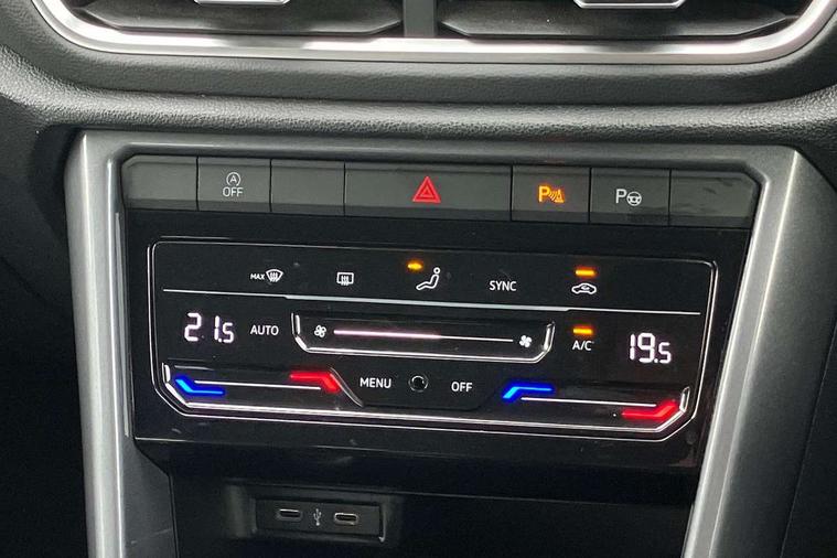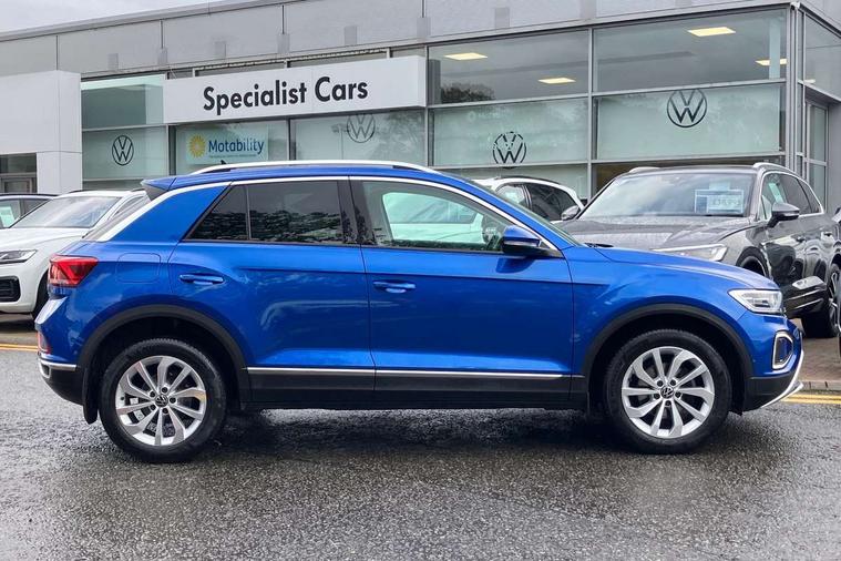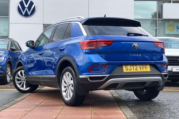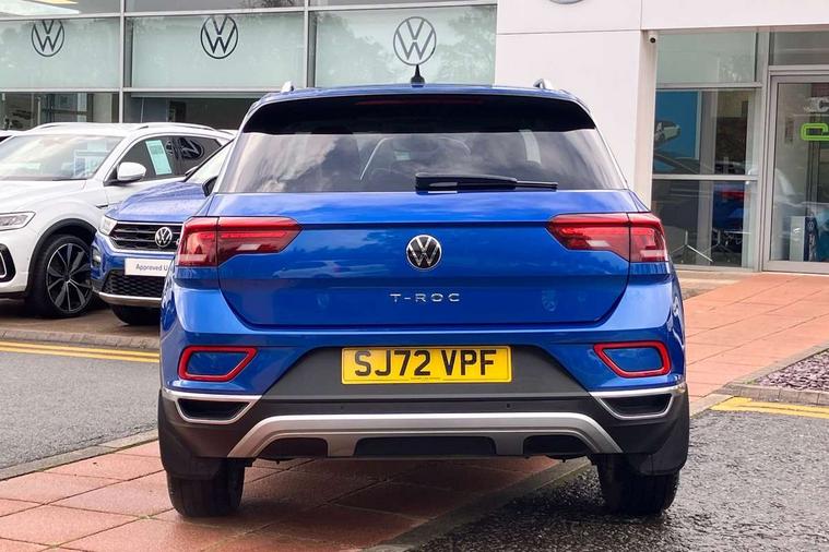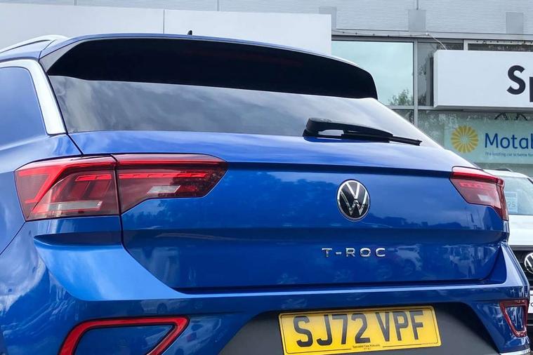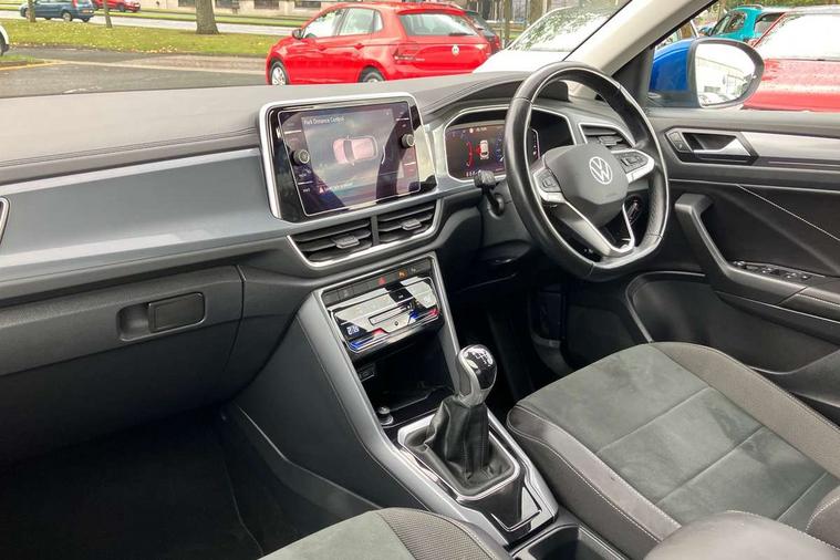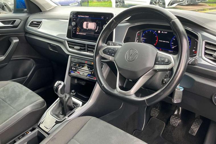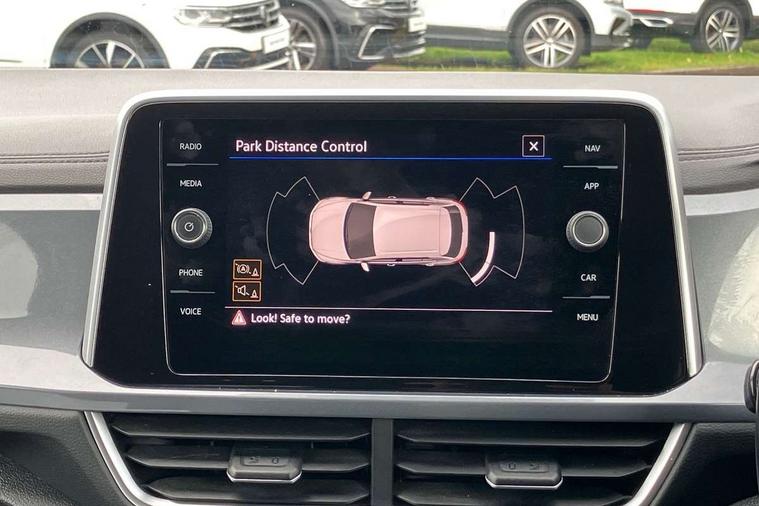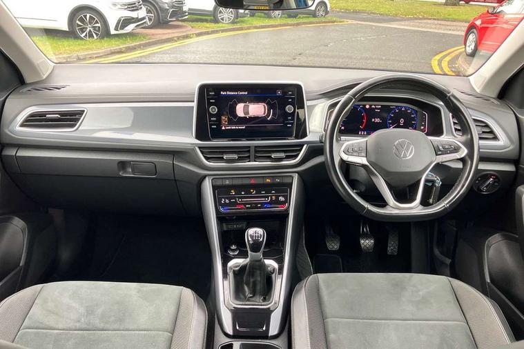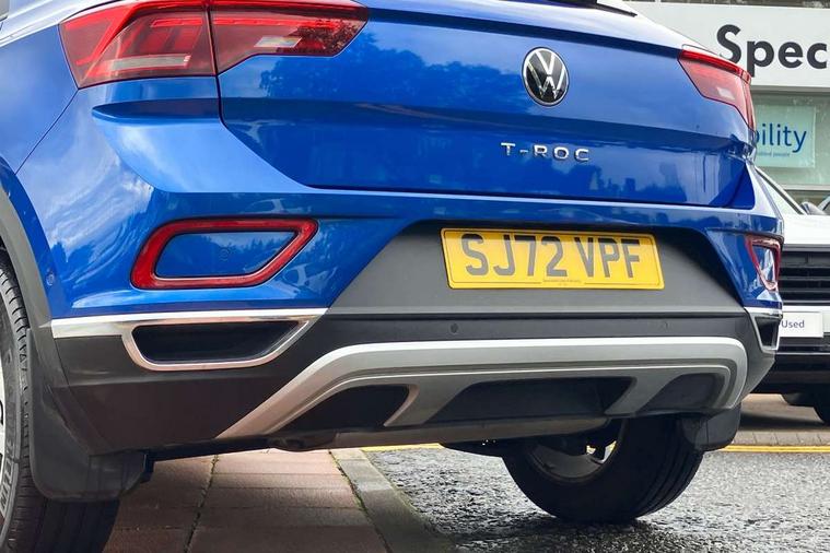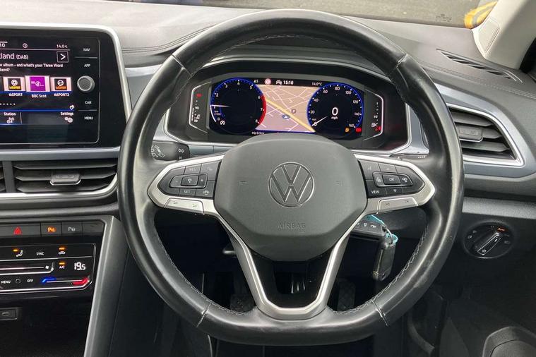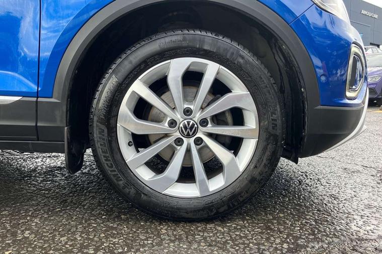 10.25" Digital cockpit pro, Bluetooth mobile phone interface, Driver alert system with fatigue detection, Driver tips and journey analysis, Dynamic road sign display, Emergency call service, Lane keeping system Lane Assist, Modified key software - reduce switch off time for key status change to Long no motion, Online services, Park assist including front and rear parking sensors, Power assisted speed sensitive steering, Service interval indicator, Tailgate/trunk lid release from outside, Think blue trainer driver tips and journey analysis, Warning sound and light for front seatbelts unfastened, Wireless app connect, Battery regeneration during braking, Front shock absorption, Rear shock absorption chassis with increased ride height, Start/stop function with battery regeneration, Diversity antenna for FM reception, Front and rear 6 speakers, Music playback - MP3, WMA and AAC files, Premium USB cable in choice of either Apple or Android smartphone compatibility, SD card slot, Simultaneous pairing of 2 compatible mobile devices, Title and cover art display, We Connect and We Connect Plus functionality, 3rd brake light, Auto dimming interior rear view mirror, Automatic hazard lights activation under emergency braking, Automatic headlight control with LED separate daytime running lights with coming/leaving home function, Body colour sports bumpers with silver metallic underbody fascia, Dynamic headlight range control with self adjusting whilst driving, Extended roof spoiler, Exterior mirrors aspherical on driver side, convex on front passenger side, External USB type C socket and charging sockets, Front windscreen wiper with intermittent wipe and 4 position delay, Heated rear window, LED Plus headlamps, LED rear combination lamps, LED rear number plate lights, LED tail lamp rear comination lamps, Light mode for poor weather, rain, fog or snow, Power windows with comfort operation and circuit breaker, Rain sensor, Rear exhaust tailpipe, Rear fog light on one side and reversing lights on both sides, Rear side wing doors, Rear wash/wipe with intermittent wipe setting, Remote electrically foldable door mirrors, puddle lights and reverse activated passenger's door mirror, 12V power socket in centre console, 3 rear head restraints, 3 seat bench in 2nd row, 4 load lashing points in luggage compartment, Air care climatronic air conditoning system with active combination filter and 2-zone temperature control, Chrome plated radiator grille inserts, air vent surrounds and light switch surrounds, Door and side trim panel with leatherette insert, Drawer under drivers seat, Front + rear carpet mats, Front centre armrest, Front comfort sports seats, Front cupholders x 2, Front footwell illumination, Instrument lighting, white adjustable panel illumination, Interior ambient lighting and surround lighting, Interior light delay, Isofix child seat preparation, Leather gearshift handle, LED interior light with switch off delay/dimmer and 2 front/rear LED reading lights, Load-through provision with cup holder when folded down ('Unsplit rear seat bench, split folding backrest, with centre armrest), Luggage compartment lighting, Non-folding front passenger seat backrest, Single front passenger seat, Storage compartment in left and right luggage area, Storage compartment in rear doors, Storage compartments in driver and front passenger doors, Sunvisors with illuminated vanity mirrors, Variable boot floor, height adjustable and removable, Driver assistance pack without proactive passenger protection - T-Roc, 3 point height adj front seatbelts + pretensioners, 3 point seatbelts in outer rear with ECE label, ABS, Child locks on rear doors, Driver and front passenger airbag with front passenger airbag deactivation, Driver and front passenger safety-optimised head restraints, Drivers seatbelt reminder, Electronic parking brake, Electronic Stability Control (ESC) inc EDL (Electronic Differential Lock) and ASR (Traction Control), Front and rear passengers curtain airbag system including front side airbags, Front assist with city emergency braking and pedestrian monitoring, Front disc brakes, Front seat side impact airbags, Predictive pedestrian protection, Rear disc brakes, Single tone horn, Tyre pressure loss indicator, Volkswagen roadside assistance, Alarm with interior protection, Anti-theft alarm system with interior monitoring, backup horn, and towing protection, Remote central locking with SAFELOCK, radio remote control with 2 remote control folding keys, Trims for alloy wheels,
