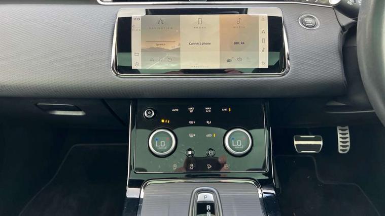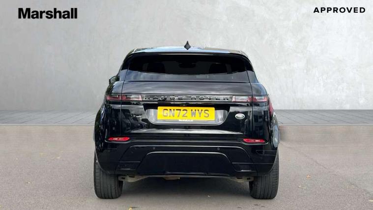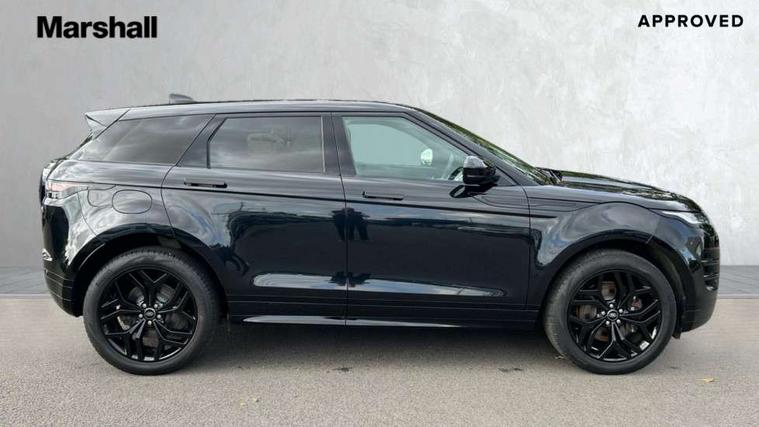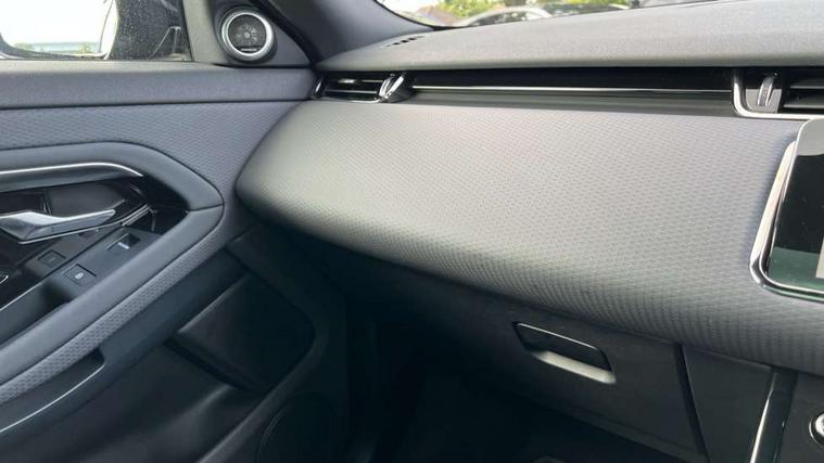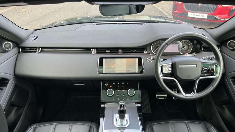 Adaptive cruise control, Android Auto, Apple car play, Bluetooth connectivity, Brake pad wear indicator warning light, Driver condition monitor, eCall emergency system, Electronic power assisted steering (EPAS), Front and rear parking aid, InControl remote, Land Rover InControl apps, Lane keep assist, Pivi pro connected includes upgraded infotainment, connected navigation pro, Nuance speech licence, Push button starter, Traffic sign recognition with adaptive speed limiter, Voice control system, 7 kW onboard charger, All terrain progress control, Electric rear axle drive, Home charging cable, Large fuel tank, Passive suspension, Public charging cable, Terrain Response 2 Auto, Digital Audio Broadcast radio-DAB, Steering wheel mounted controls, Auto headlights, Daytime running lights, Electric windows with one touch open/close and anti trap, Evoque and R-Dynamic badge, Flush deployable exterior door handles, Heated rear window with timer, Heated washer jets, Heated windscreen, P300e badge, Power fold, auto-dimming, heated door mirrors with approach lights and auto dimming driver side, Privacy glass, Rain sensing windscreen wipers, Rear fog lights, Rear side wing doors, Rear wiper, Tailgate spoiler, Third brake light, 40:20:40 split folding rear seats with centre headrest and armrest, Ambient interior lighting, Bright metal pedals, Heated steering wheel, Isofix system on outer rear seats, Overhead lighting console, Overhead stowage for sunglasses, Passive front head restraints, Rear air vents, Rear centre headrest, Rear head restraints, Satin chrome gearshift paddles, Single passenger seat, Sunvisors with illuminated vanity mirrors, Twin sliding front centre armrest, 3 rear 3 point seatbelts, Anti-lock braking system (ABS), Customer configurable autolock, DSC - Dynamic Stability Control, Electronic brake force distribution, Electronic parking brake, Electronic traction control, Emergency braking, Front and rear seatbelt reminder, Hill descent control, Hill launch assist, Low traction launch, Power operated child locks, Roll stability control, Six airbags - Driver and passenger airbags/driver knee airbag/front side airbag and curtain airbags, Torque vectoring brake, Tyre pressure monitoring system, Alarm, Immobiliser, Intrusion sensor, Locking wheel nuts,
