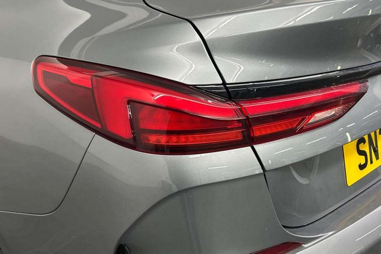 Active guard plus, Attentiveness assist, Auto start-stop, Bluetooth hands free facility with USB audio interface + WiFi interface for wireless connection of mobile terminal devices + audio streaming, BMW Intelligent Personal Assistant, BMW Live Cockpit Professional with 10.25" high resolution instrument and control display, BMW Online services, BMW operating system with 7.0 mid interface, BMW Teleservices, Check Control warning system for monitoring of lights and door/luggage compartment open warning, iDrive controller with touch function and 7 short cut favourite buttons on centre console, Integrated navigation data with map data via USB +features such as 3D landmarks and micro city models, Integrated owners handbook, Intelligent voice assistant, M Sports steering, On board computer - average speed+fuel consumption, service interval, clock/date, odometer/trip meter, outside temperature display and ice warning, Optimum shift indicator, Personal Profile, Pull away assistant, Speed limiting function, Aluminium lightweight construction, Balancer shaft, Double VANOS, Drive performance control with ECO PRO comfort + sport mode, Dual clutch automatic transmission, Electronic differential lock, High precision injection, M Sport suspension with stiffer spring/damper set-up and vehicle lowered by 10mm + twin tube gasfilled shock absorbers and Anti roll bars, Performance Control, Petrol Particulate Filter, VALVETRONIC engine management, 2x USB Type C ports (for charging and data transfer), 4G LTE Connectivity with hard wied 4G network sim card, DAB digital radio, MP3 players and RDS double tuner, Stereo 6 speaker system with 2 mid range speakers in the front and rear door trims + 2 central bass speakers underneath the front seats, Automatically dimming rear view mirror, Body colour door handles, Body colour mirror caps, Chrome 'M' logo side designation, Chrome exhaust single tailpipe, round, Direction indicator side lights integrated exterior mirrors, Electric windows - front and rear, with open/close fingertip control and trap release, Exterior mirrors - electrically folding with anti-dazzle, Fading support, Follow me home headlights, Front and rear bumper system with replaceable deformation elements, Front door sill finishers in black plastic with M designation in metallic look, Heated, electrically adjustable exterior mirror aspheric on driver side, convex on passenger side, High gloss black B pillar finish, High gloss shadow line exterior trim, High level third brake light, LED daytime running lights, LED front fog lights, Lightweight engineering, Model designation on right side of tailgate, Preparation for high beam assistant, Rain sensor with automatic headlight activation, Rear fog lights, Reversing light in rear light cluster, Welcome lighting, 12V power socket in centre console, 2 cupholders in front centre console, 3 rear seat head restraints, 3 spoke M sports design leather steering wheel finished in nappa leather with specific M badge, Anthracite finished floor mats with contrasting surround, Anthracite headlining, Automatic two zone climate control air conditioning, Child seat ISOFIX attachment for two outer rear seats and front passenger seat with anchorage points, Conditioned based service, Driver and front passenger seat heating, Front and rear door pockets including bottle trays, Front and rear side armrests integrated into door trim, Front armrest foldable with integrated storage compartment, Front centre interior light over interior mirror and rear centre automatic interior light when door is opened/ignition switched off or via remote key, Front head restraints, Front sports seats with electric side bolster adjustment, Glove compartment, Glovebox with light, Luggage compartment lighting, Manually adjustment steering wheel column, Multi-function controls for steering wheel, Sun visors with vanity mirrors and insert tab, Through loading system with 40/20/40 split folding rear seat, Two lashing eyes, Additional interior lighting pack - 2 Series Gran Coupe, Connected pack professional - 2 Series Gran Coupe, Extended storage pack - 2 Series Gran Coupe, M Sport exterior styling aerodynamics pack - 2 Series Gran Coupe, 2 tone horn, Airbag - Front driver and passenger, front and rear head, front side, curtain head protection, manual deactivation of front passenger airbag possible, Anti lock braking system (ABS) with cornering brake control, BMW emergency call, Brake drying, Braking readiness, Crash sensor activating of airbags, Unlocking doors, hazard warning lights, fuel cut off, interior lighting+activation of safety battery terminal clamp, Dynamic stability control + (DSC+), Dynamic Traction Control - DTC, Electrically operated hand brake, Rear brake discs, Rear child proof door locks, Seat belt security check for driver and front passenger, Seatbelt warning, Side impact protection, Three point seat belts on all seats including front belt stopper, pyrotechnic belt tensioners and belt force limiters, Trailer stability control, Tyre pressure monitoring system, Ventilated front disc brakes, Warning triangle and first aid kit, Central locking switch for all doors, fuel filler cap and luggage compartment, Deadlocking function system to all doors, Drive away locking system on all doors and luggage compartment, Locking wheel bolts, Start/Stop button (illuminated) in centre console with keyless engine start and Auto Start-Stop deactivation button, Thatcham Cat.1 alarm and immobiliser, Two remote control key with integrated key - open/close doors/fuel flap/tailgate +1 button for unlock compartment with M design high gloss black inlay, Contrast stitching on instrument panel, 18" Burnished M double spoke bi-colour alloy wheels finished in orbit grey - style 819M, Reduced rolling resistance tyres,