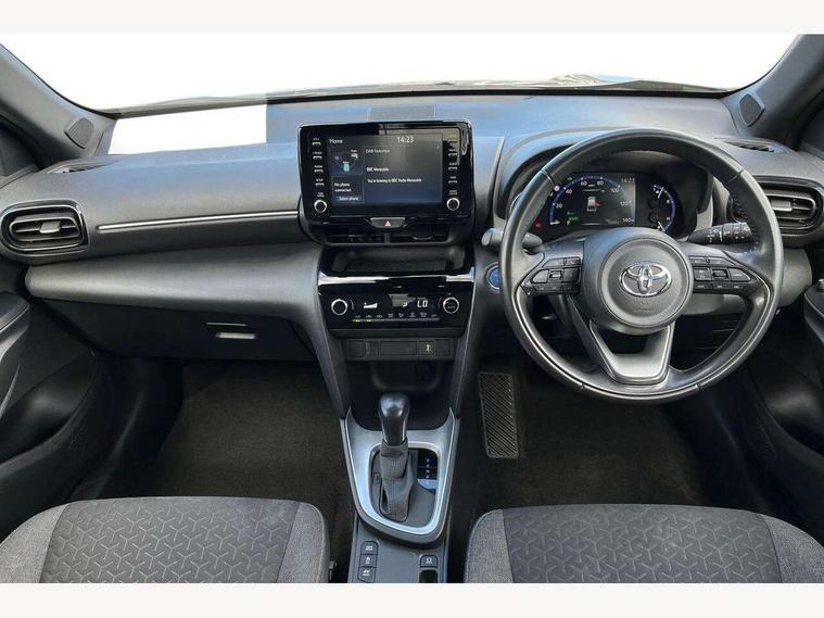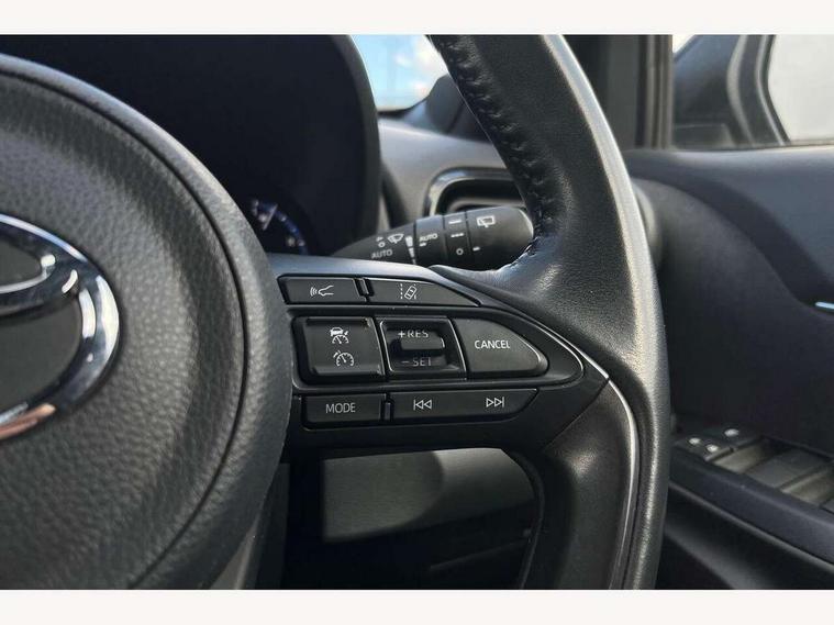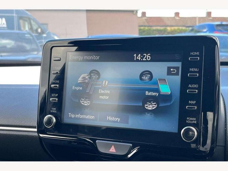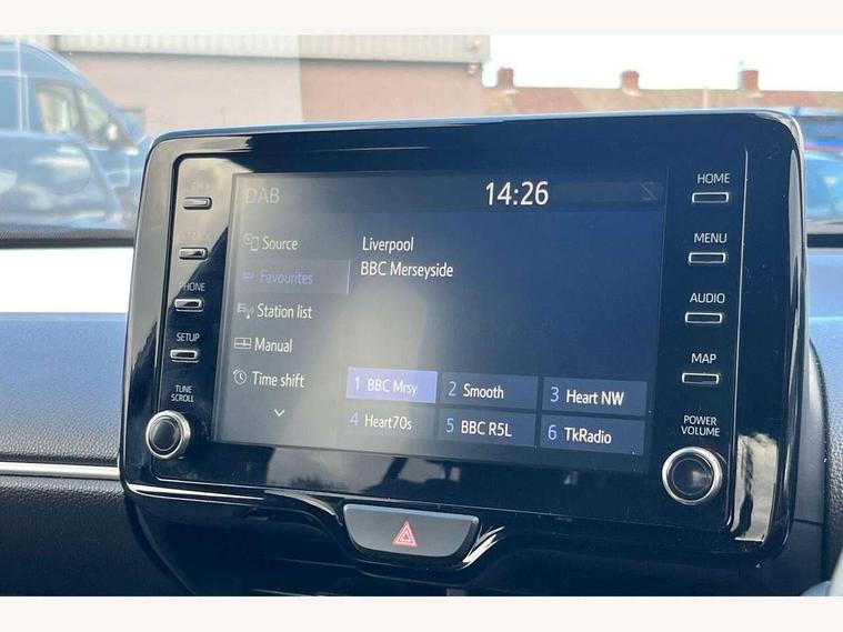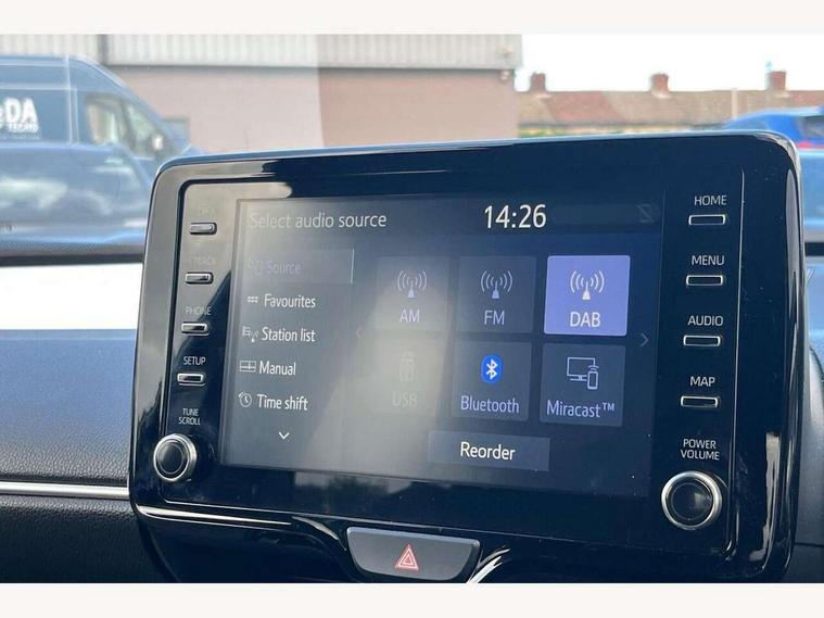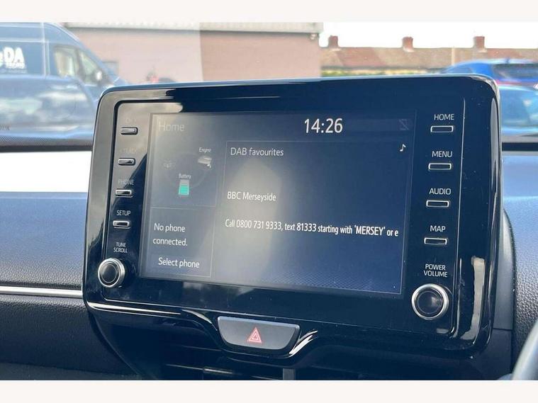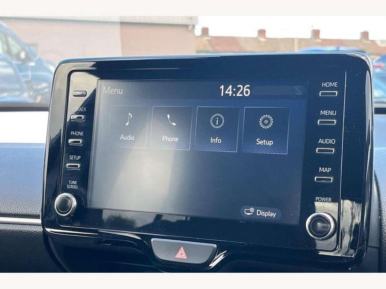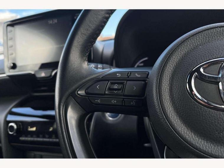 7" Multi information display screen, 8" Toyota touch 2 multimedia system with Smartphone integration with Apple CarPlay and Android auto, Adjustable speed limiter, Bluetooth connectivity, Driver attention alert system, eCall emergency system, Electric power steering, Full range intelligent adaptive cruise control, Hybrid system indicator, Key reminder warning, Lane trace assist, Multimedia, audio, telephone and voice recognition switches on steering wheel, My T Connected services, Pre-collision system enhanced with emergency steering assist, Reversing camera, Road sign assist - RSA, Steering assisted vehicle stability control, 6 speakers, DAB Digital radio, USB connection, 3rd brake light, Acoustic windscreen glass, Aluminium roof rails, Anti-jam protection on power windows, Auto high beam [AHB] with on/off switch, Automatic headlights, Black lower front grille, Black Shark-fin antenna, Black upper front grille, Black wheel arch mouldings, Body colour door handles, Body colour front bumper, Body colour rear bumper, Electric adjustable heated door mirrors, Follow me home headlights, Front and rear electric windows with auto up/down function, Front intermittent wipers, Headlight cut off reminder, Indicators integrated on door mirrors, Intermittent rear wiper, LED daytime running lights guide, LED front fog lights, LED front light guide, LED Indicators, LED projector headlights, LED rear light guide, Manual headlight levelling, Manually retractable door mirrors, Noise reduction layer on windscreen, Privacy glass, Rain sensor, Rear LED lights with sequential indicators, Rear side wing doors, Rear spoiler, Rear window defogger, 12v power outlet - front, 2x Rear coat hooks, 3 seat bench in 2nd row, 3 spoke leather steering wheel, 40:20:40 split folding rear bench seat, Adjustable speed limiter switch on steering wheel, Auto air conditioning, Black roof lining, Boot light, Central armrest, Centre console in light blue ambent lighting, Driver and front passenger personal lights, Fabric door trim, Fabric upholstery, Footwell in light blue ambient lighting, Front console box, Front cup holders, Front head restraints, Glovebox, Height adjustable driver's seat, Height adjustable front passenger seat, Hooks for luggage holding belts, ISOFIX child restraint system, Lane departure alert switch on steering control, Leather gearshift, Light blue ambient lighting on front doors, Manual telescopic and tilting steering wheel, Mirror on driver and passenger sun visor, Pollen air filter, Rear cup holders, Rear head restraints, Single front passenger seat, Soft tonneau cover, 3x3 point rear seat belts, ABS+EBD+Brake assist, Driver and passenger central airbags, Driver and passenger front airbags, Driver and passenger side airbags, Electronic parking brake, Emergency brake light system (EBS), Front seat belt reminder, Hill start assist control (HAC), Passenger airbag on/off switch, Pre-collision system with pedestrian and cyclist detection, Rear door child safety locks, Rear passenger side airbags, Rear seat belt reminder, Traction control, Tyre pressure warning system, Immobiliser, Intrusion alarm, Keyless smart entry with push button start, Power door locks, Power passenger window lock, Remote door lock, Tyre repair kit,