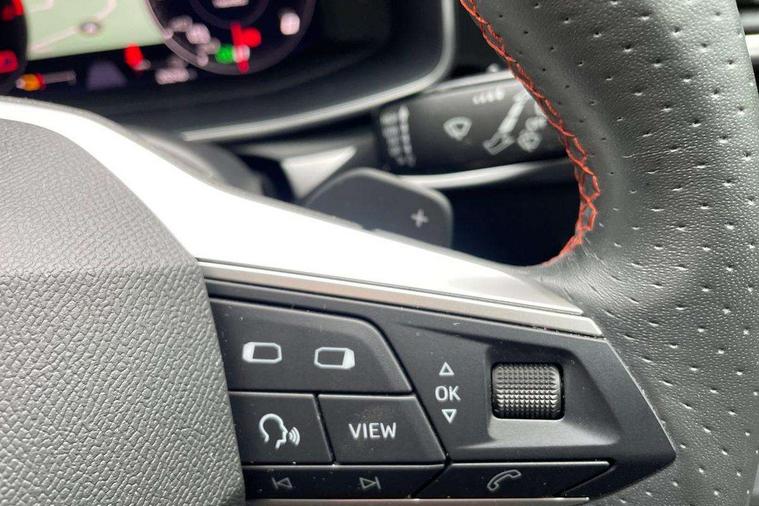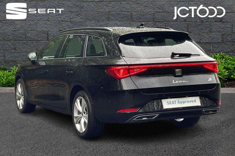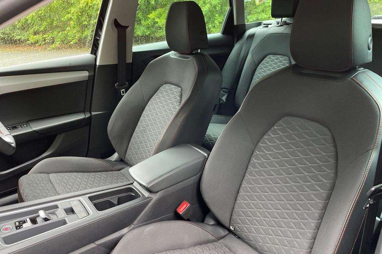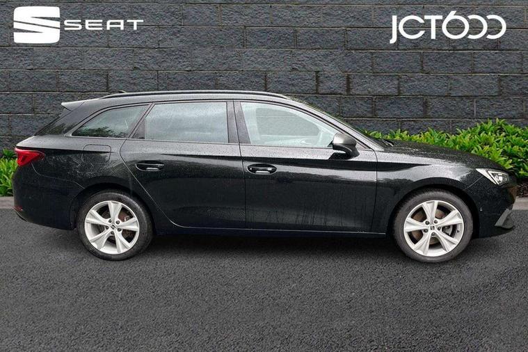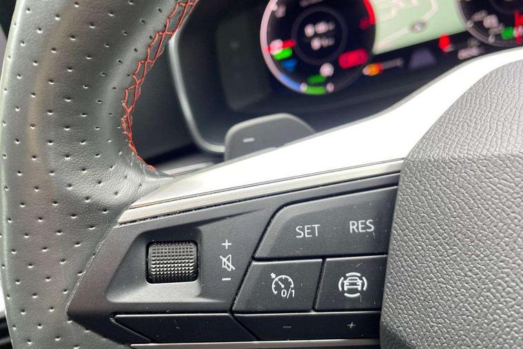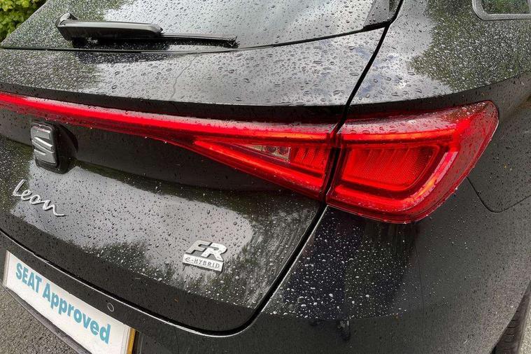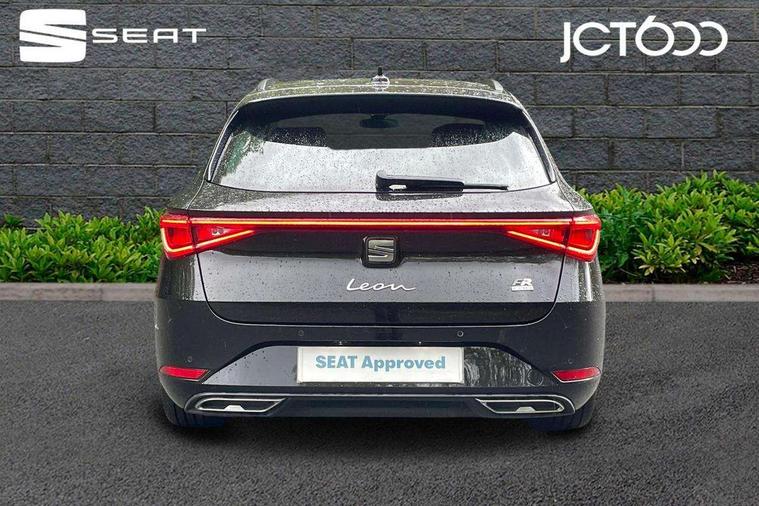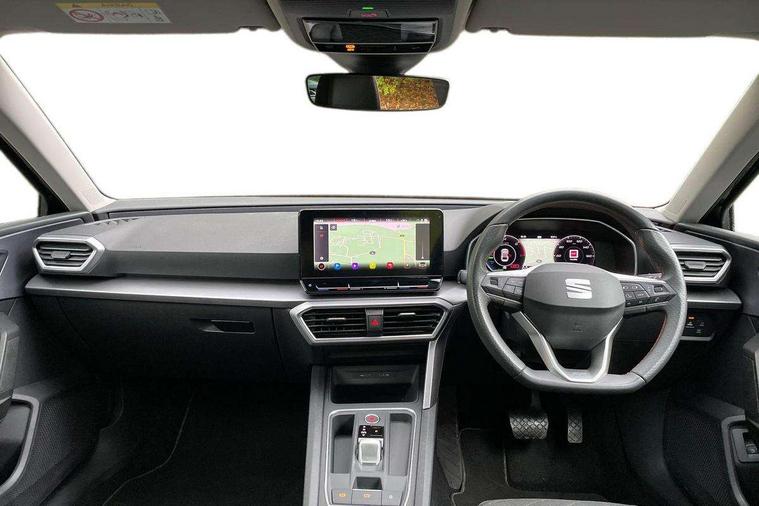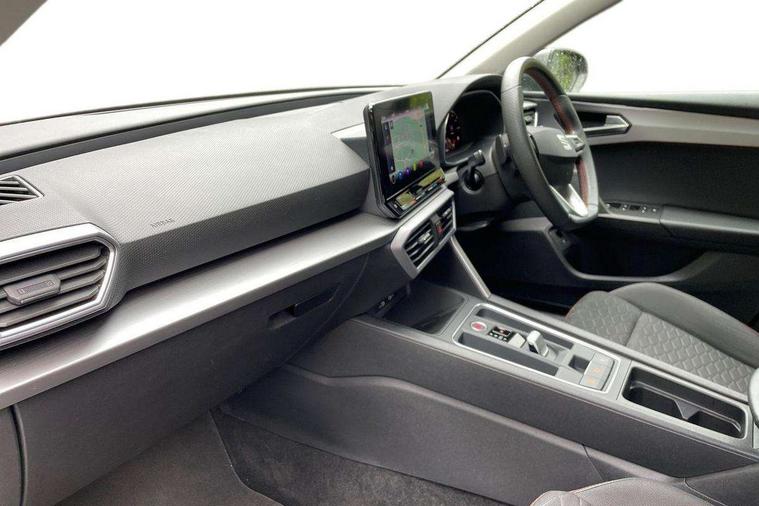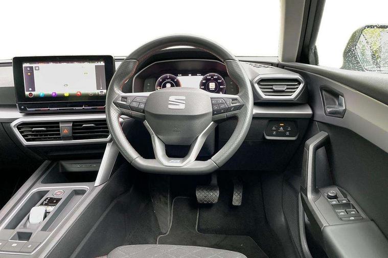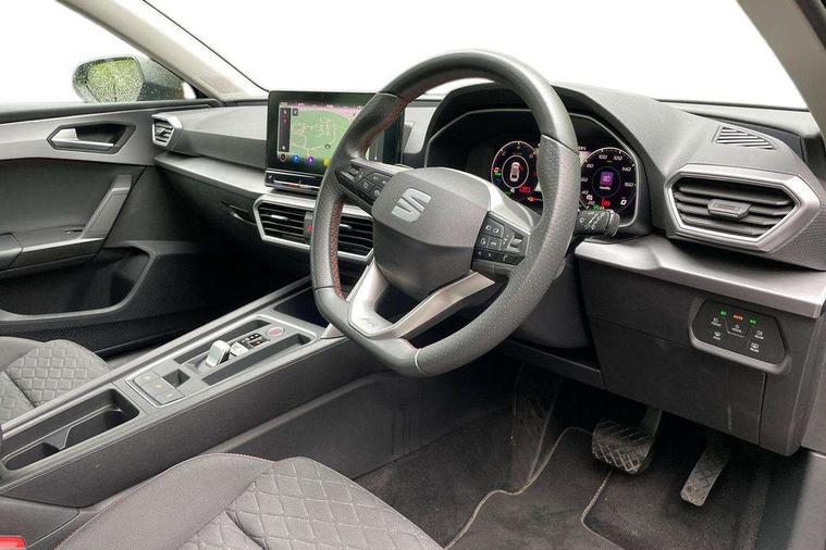 Digital cockpit, Four x USB Type C ports, Front assist with forward collision warning braking reaction to vehicles, pedestrians and cyclists, Full link smartphone integration with Mirror Link, wireless Apple CarPlay and wired Google Android Auto, Lane assist, Lockable tailgate, Park assist (inc front/rear parking sensors), Power assisted speed sensitive electro-mechanical steering, RPM, trip computer, outside temp gauge, instrument light brightness, low fuel warning light, lights on reminder, gearshift indicator, SEAT drive profile with 4 modes (Eco/Normal/Sport/Individual), throttle response and gearshift mode, Service interval indicator, Start/stop system with regenerative braking, 10 amp mode 2 charging cable, 16 amp mode 3 charging cable, Sports suspension, XDS electronic differential lock and dynamic traction support, 7 speakers, Auxiliary input socket, Auto dimming rear view mirror, Body colour door handles, Body coloured bumpers, Cosmo grey exterior mirrors with integrated LED indicators, Dark tinted rear windows, Electric front/rear windows, Electrically adjustable, heated and folding door mirrors, FR sports bumper, Illuminated front door sill, LED front fog lamps with cornering function, LED headlights and tail lights with dynamic turn signals, welcome light silhouette from exterior mirrors and dynamic headlight range control, LED rear fog lamp, Matt black roof rails, Rain sensing wipers, Rear wash/wipe, Separate daytime running light with automatic headlight control and coming home feature, 12V Accessory socket in the load area, 12v power point in centre console, 60/40 split rear bench seat with armrest, Ambient lighting with glovebox, footwell and single monocolour, Cloth upholstery, Driver/passenger manual seat height adjustment, Dust/pollen filter, Front and rear height adjustable headrests, Front and rear reading lights X 4, Front centre armrest, Front seatback storage pockets, Height/reach adjust steering wheel, ISOFIX points in outer rear seats with top tether anchorage points, Luggage tie-down hooks, Lumbar adjustment for front seats, Sliding boot cover, Sunvisors with covered illuminated mirror, Three zone climate control, Media system plus with navigation - Leon, 3 point seatbelts on all rear seats, ABS, Brake control system - ESC and brake booster, Child proof door locks, Driver and front passenger airbags with front passenger airbag de-activation, front side and curtain airbags, Electronic parking brake, Extended safety system - seat belt tensioner, window closure and hazard lights, Hill hold control, Rear disc brakes, Seat belt reminder for front and rear seats, Tiredness recognition system, driver alert system, Tyre pressure monitoring system, Anti theft alarm system with interior monitoring in cab, backup horn and towing protection, KESSY Go (Keyless start), Locking wheel bolts, Wireless phone charging, Chrome interior detailing, 17" Dynamic Bi-spoke alloy wheels with 91W tyres, Emergency tyre repair kit, Tool kit,