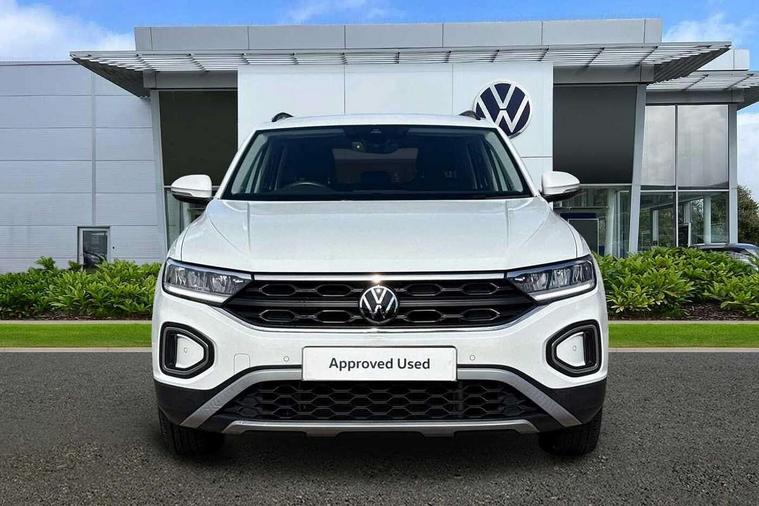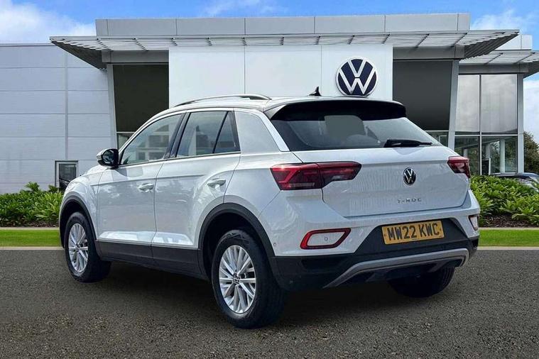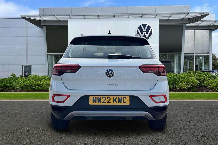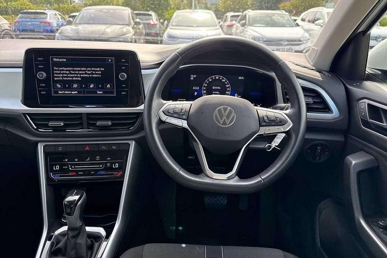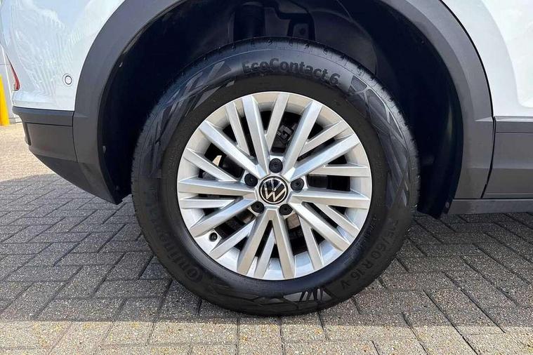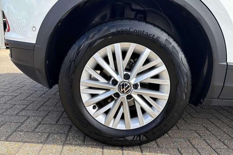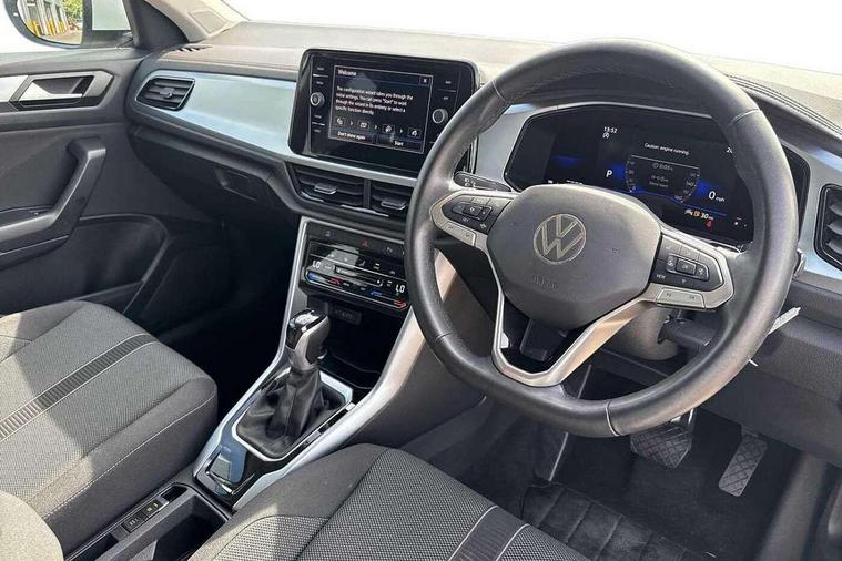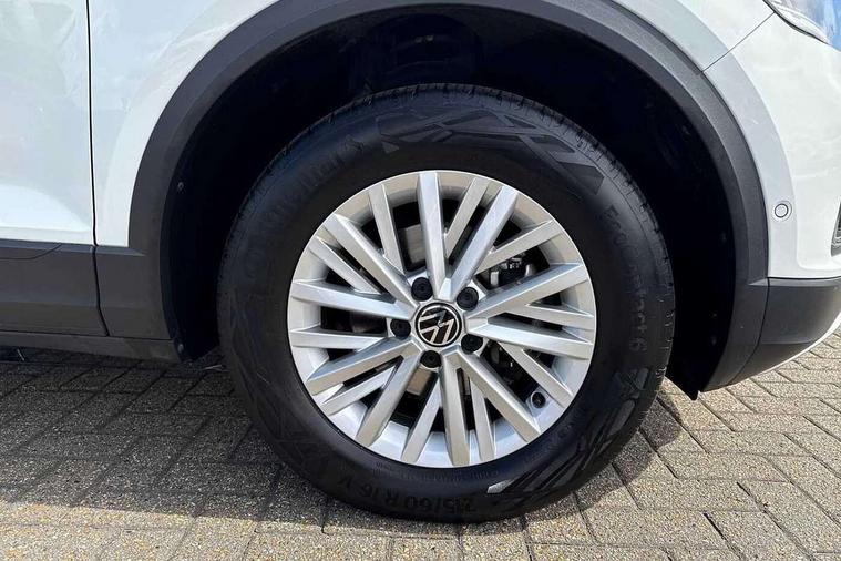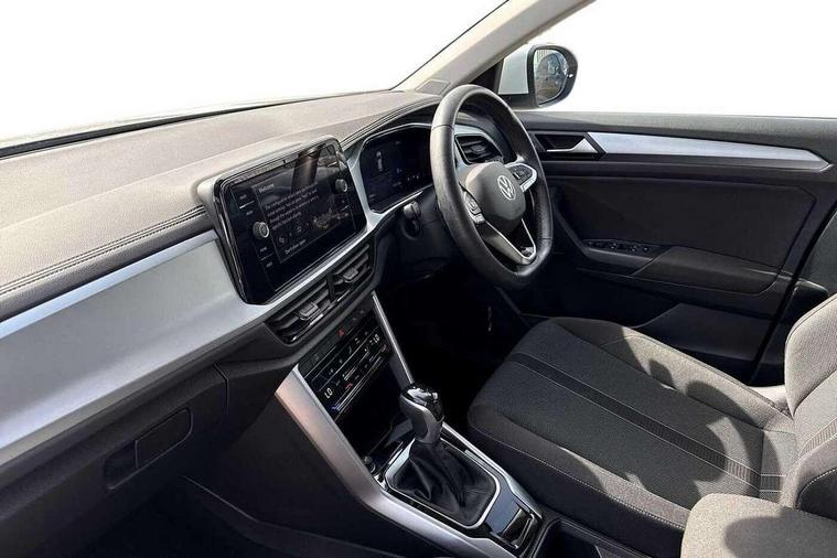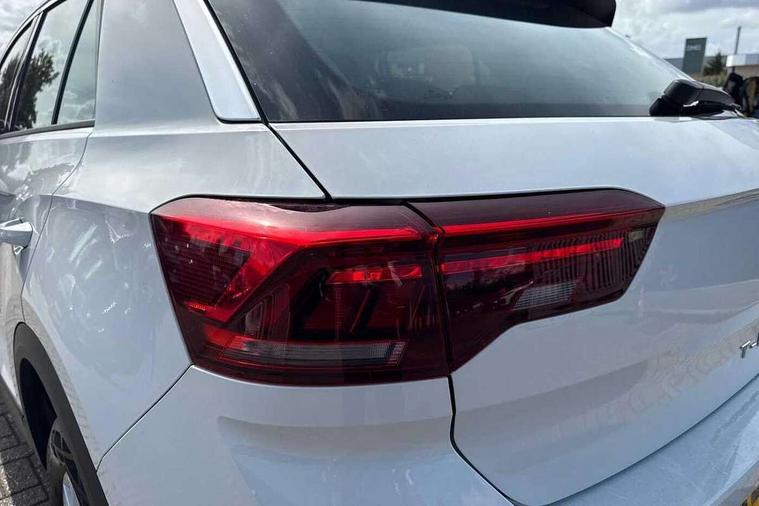 Bluetooth mobile phone interface, Driver alert system with fatigue detection, Driver tips and journey analysis, Emergency call service, Lane keeping system Lane Assist, Modified key software - reduce switch off time for key status change to Long no motion, Online services, Park assist including front and rear parking sensors, Power assisted speed sensitive steering, Service interval indicator, Tailgate/trunk lid release from outside, Think blue trainer driver tips and journey analysis, Warning sound and light for front seatbelts unfastened, Wireless app connect, Battery regeneration during braking, Front shock absorption, Rear shock absorption chassis with increased ride height, Start/stop function with battery regeneration, DAB Digital radio, Diversity antenna for FM reception, Front and rear 6 speakers, Music playback - MP3, WMA and AAC files, Premium USB cable in choice of either Apple or Android smartphone compatibility, SD card slot, Simultaneous pairing of 2 compatible mobile devices, Title and cover art display, We Connect and We Connect Plus functionality, 3rd brake light, Auto dimming interior rear view mirror, Automatic hazard lights activation under emergency braking, Automatic headlight control with LED separate daytime running lights with coming/leaving home function, Black roof rails, Body coloured bumpers and radiator grille with chrome trim and front fog lamps with chrome bezel, Body coloured exterior mirror housings and door handles, Extended roof spoiler, Exterior mirrors aspherical on driver side, convex on front passenger side, External USB type C socket and charging sockets, Front windscreen wiper with intermittent wipe and 4 position delay, Heated rear window, LED Headlights, LED rear combination lamps, LED rear number plate lights, LED tail lamp rear comination lamps, Power windows with comfort operation and circuit breaker, Rain sensor, Rear exhaust tailpipe, Rear fog light on one side and reversing lights on both sides, Rear side wing doors, Rear wash/wipe with intermittent wipe setting, Remote electrically foldable door mirrors, puddle lights and reverse activated passenger's door mirror, 12V power socket in centre console, 3 rear head restraints, 3 seat bench in 2nd row, 4 load lashing points in luggage compartment, Air care climatronic air conditoning system with active combination filter and 2-zone temperature control, Ambient lighting with mirror logo projection, Cloth upholstery, Door and side trim panel in cloth, Drawer under drivers seat, Driver/front passenger seat height adjustment, Front centre armrest, Front comfort sports seats, Front cupholders x 2, Front reading light, Instrument lighting, white adjustable panel illumination, Interior light delay, Isofix child seat preparation, Leather gearshift handle, Load-through provision with cup holder when folded down ('Unsplit rear seat bench, split folding backrest, with centre armrest), Luggage compartment lighting, Lumbar support for driver's and front passengers seat, Non-folding front passenger seat backrest, Single front passenger seat, Storage compartment in left and right luggage area, Storage compartment in rear doors, Storage compartments in driver and front passenger doors, Sunvisors with illuminated vanity mirrors, Variable boot floor, height adjustable and removable, Driver assistance pack without proactive passenger protection - T-Roc, 3 point height adj front seatbelts + pretensioners, 3 point seatbelts in outer rear with ECE label, ABS, Child locks on rear doors, Driver and front passenger airbag with front passenger airbag deactivation, Driver and front passenger safety-optimised head restraints, Drivers seatbelt reminder, Electronic parking brake, Electronic Stability Control (ESC) inc EDL (Electronic Differential Lock) and ASR (Traction Control), Front and rear passengers curtain airbag system including front side airbags, Front assist with city emergency braking and pedestrian monitoring, Front disc brakes, Front seat side impact airbags, Hill start assist, Predictive pedestrian protection, Rear disc brakes, Single tone horn, Tyre pressure loss indicator, Volkswagen roadside assistance, Alarm with interior protection, Anti-theft alarm system with interior monitoring, backup horn, and towing protection, Remote central locking with SAFELOCK, radio remote control with 2 remote control folding keys, Pewter matt decorative inserts for intrument panel, centre console and door panels at the front, Trims for alloy wheels,