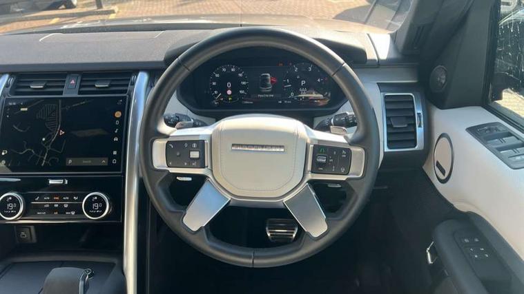 11.4" touchscreen, 3D surround camera, Adaptive cruise control, Android Auto, Apple car play, Blind spot assist, Driver condition monitor, Electric power assisted steering (EPAS), Emergency services call system, Front and rear parking aid, Interactive driver display, Lane keep assist, Power inner tailgate, Power tailgate/boot lid, Push button start, Rear collision monitor, Rear traffic monitor, Remote, Remote boot release, Service interval indicator, Speed proportional steering, Sportshift selector, Stop/start system, Traffic sign recognition with adaptive speed limiter, Trip computer, Wade Sensing, Adaptive dynamics, Dynamic stability control, Electronic air suspension, Front axle open differential, Digital Audio Broadcast radio-DAB, Dynamic volume control, Pivi pro connected, USB/aux input socket, Acoustic laminated windscreen, Animated directional indicators, Auto dimming interior rear view mirror, Automatic headlight levelling, Automatic headlights, Body colour bumpers, Body colour door handles, Centre high mounted stop light, D300 badge, Electric heated/power fold memory door mirrors with approach lights and auto dimming driver side, Electric windows with one touch open/close and anti-trap, Heated rear window, Heated windscreen, LED darkend tail lights, Matrix LED headlights with signature DRL, Narvik black Discovery script, Privacy glass, Puddle lights, Rain sensing windscreen wipers, Rear fog lights, Rear side wing doors, Rear wash/wipe, Trailer stability assist, Variable intermittent wiper, 12V power sockets, 12V USB charging socket in loadspace, 2 seat bench in 3rd row, 3 seat bench in 2nd row, 60/40 electric heated folding rear seats with manual slide and powered recline, centre headrest and armrest, Central hinged twin lidded storage, Configurable cabin lighting, Ebony morzine headlining, Electric adjustable steering column, First and second row door bins, Footwell lights, Front and rear 12V with front USB, Front passenger seat isofix location point, In-facia storage, Isofix child seat preparation for front passenger seat, Leather steering wheel, Loadspace cover, Loadspace Hook, Loadspace light, Lockable glovebox, Lower centre console storage, Luggage tie downs in loadspace, Multi function steering wheel, Overhead lighting console, Premium carpet mats, Rear ISOFIX, Shopping bag hook, Single front passenger seat, Storage glovebox, Sunvisors with illuminated vanity mirrors, Third row storage, Treadplates with metal inserts, Twin front cupholders with cover, USB with 12V socket in centre console, Black exterior pack - Discovery Dynamic SE/HSE, Online pack with data plan - Discovery, 3x3 point rear seatbelts, Anti-lock braking system (ABS), Brake pre-fill technology, Cornering brake control, Curtain airbags, Customer configurable autolock, Driver and passenger airbags, EBD - Electronic brakeforce distribution, Electronic traction control, Emergency brake assist, Emergency braking, ESP, Front side airbags, Gradient acceleration control, Hill descent control, Hill launch assist, Power operated child locks, Rear airbags, Roll stability control, Seat belt reminder, Torque vectoring brake, Tyre pressure monitoring system, Immobiliser, Intrusion sensor, Keyless entry, Locking wheel nuts, Remote central locking, All terrain tyres,