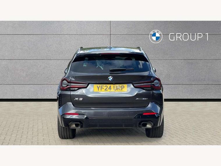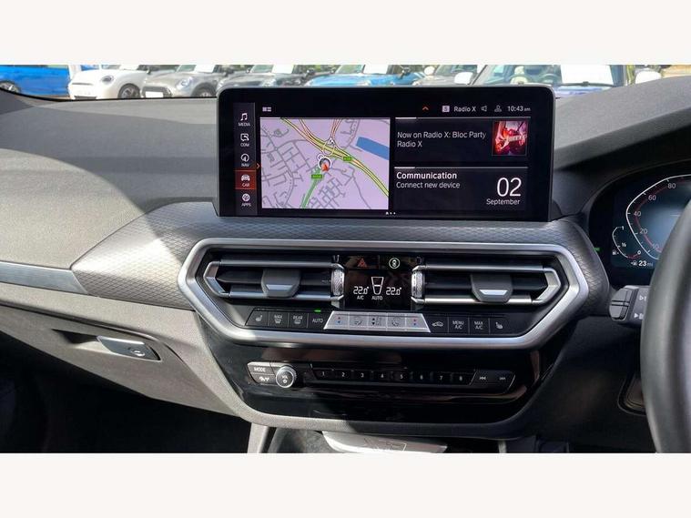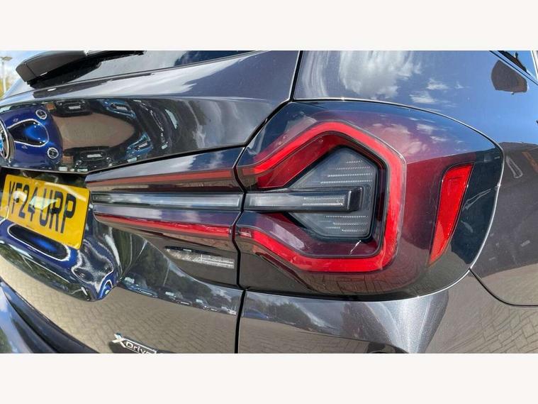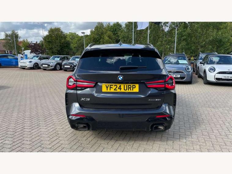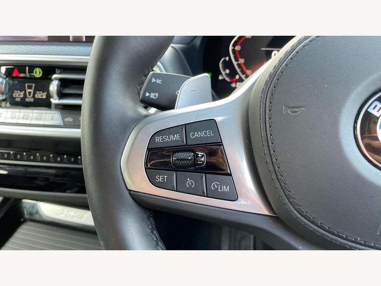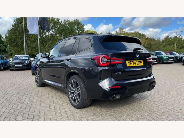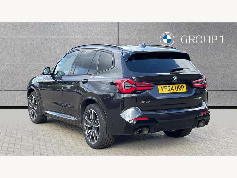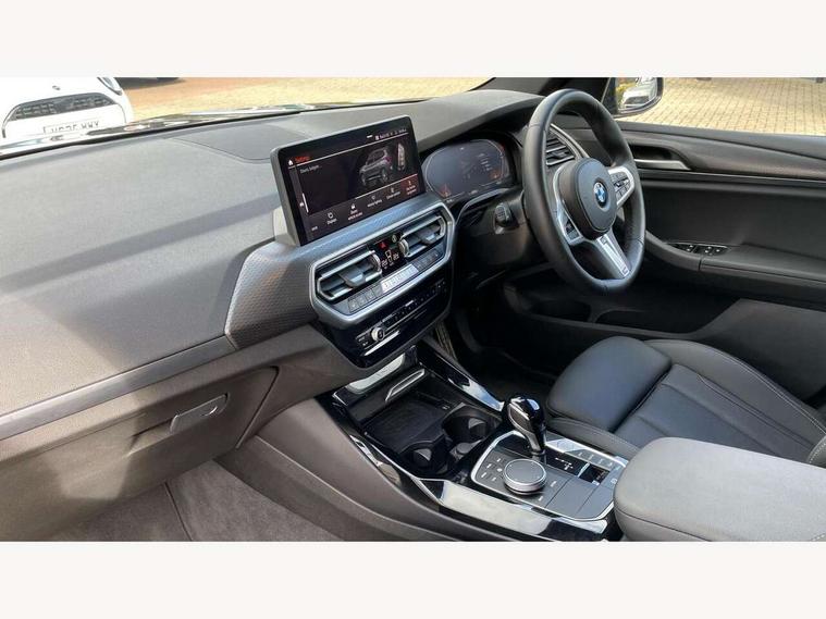 Active Guard, Attentiveness assist, BMW Live Cockpit Professional nav system including 12.3" instrument display + 12.3 high resolution control display, BMW Online services, BMW Teleservices, Brake pad wear indicator in front and rear, Check Control warning system for monitoring of lights and door/luggage compartment open warning, Condition based service - BMW service history, electronic service booklet, integrated owner's handbook, Connected drive services, Electric boot lid, Front/rear Parking distance control, iDrive touch controller with 8 favourite buttons, Instrument cluster with speedometer with mph readout, tachometer, fuel gauge and oil temperature gauge, Lights on warning by audio warning signal when ignition is switched off, Oil sensor for level and grade, warning by check control system, On board computer - average speed+fuel consumption, service interval, clock/date, odometer/trip meter, outside temperature display and ice warning, Optimum shift indicator, Personal Profile - automatic lock when driving away selectable, Run flat indicator, Stop/start system, Variable sports power steering with drive performance control Sport+ mode, Automatic transmission with gearshift paddles, Incorrect fuelling protection, M sport suspension, Multi-link rear suspension, BMW professional radio/CD/MP3, DAB tuner, Acoustic glazing, Automatic windscreen wipers and automatic headlight, Black finish on B pillars, Body colour door handles, Body colour electric adjust heated aspherical door mirrors, Body colour roof mouldings, Body coloured bumpers, Direction indicator, side repeaters, integrated in exterior mirrors, Dynamic brake lights, Exhaust tailpipes - dual, round, split left and right with chrome finisher, Fingertip control / anti-trap function on electric window, Folding wing mirrors with auto dimming, Follow me home headlights, Front and rear bumper system with replaceable deformation elements, Front and rear electric windows, Gloss chrome tailpipes finishers, Green tinted heat insulating glass, Heated windscreen washer jets, High beam assistant, High gloss black shadow line roof rails, High gloss shadowline exterior trim in decorative moulding side frame/recess cover/guide rail/B, C pillars/mirror frame and triangle with mirror base, High level 3rd brake light incorporating LED Technology, Interior rear view electrochromatic mirror with automatic anti dazzle function, LED tail lights, Lightweight engineering, M aerodynamic bodystyling, M Sport entry door sill strips, Model designation, Rain sensor, Rear side wing doors, Rear wing door, Rear wiper, Shark fin antenna, Side exterior M designation badges, Visible VIN plate, Welcome lighting, Windscreen wipers with adjustable interval, 12V power point in luggage area, 12V power socket in front centre console, 2 x USB Type C ports for charging and data transmission (front centre console) and 2 x USB Type C ports for charging (rear centre console), 3 rear headrests, 3 seat bench in 2nd row, 3 zone automatic air conditioning, 4 lashing points to secure luggage, 40:20:40 split folding rear seat with loading system, Ambient lighting, Anthracite headlining, Automatic interior light when door is opened/ignition switched off or via remote key, Floor mats in velour, Foldable storage floor with compartment, Four grab handles integrated in roof lining, Front and rear bottle holders integrated into door trim storage compartments, Front and rear side armrests integrated into door trim, Front centre armrest with storage compartment, Front footwell lights, Front head restraints, Front passenger seat, Front sports seats, Front/rear courtesy lights with soft on/off dimming, Front/rear reading lights, Heated front seats, Isofix rear child seat preparation, Leather gear knob, Lockable glove compartment, Luggage area underfloor compartment, Luggage compartment lighting, M sport leather steering wheel, Multifunction steering wheel, Parcel shelf removeable and storable under boot floor, Reach and rake adjustable steering column, Rear centre armrest with 2 cupholders, Removable / retractable luggage cover, Slope adjustable rear seats, Storage compartment in rear centre console and front/rear door trims, Sun visors with vanity mirrors and ticket pocket, Toolkit located in luggage compartment, Two front cupholders with removable oddments tray/lid, Connected pro pack - X3, ADB - Automatic Differential Brake, Anti-lock braking system (ABS) with brake assist, Automatic Stability Control (ASC), Battery safety cut-off, BMW emergency call, Brake drying, Brake energy regeneration, Braking pre-tensioning, Child locks on rear doors, Cornering brake control (CBC), Crash Sensor - activation of central locking release, hazard warning light and interior lighting, Deactivation of fuel pump in the event of a crash, Driver and front passenger front and side airbags with passenger deactivation and ITS front and rear head airbags, Driver and front passenger knee airbag, DSC+, Dynamic brake control, Dynamic Traction Control - DTC, Electromechanical parking brake, Hill descent control, Hill start assist, Seatbelt security check for front seats, Side impact protection, Three point seatbelts to all seats with front and outer rear pyrotechnic belt tensioners and seat belt force limiters, Two tone horn, Tyre pressure sensor, Ventilated front and rear disc brakes, Warning triangle and first aid kit, Central locking switch for all doors, fuel filler cap and luggage compartment, Electronic engine immobiliser, Locking wheel nuts, Remote control including two integrated key - one button for open/close all lockable content, windows and separate button for open luggage compartment, Remote control Thatcham category 1 alarm, Start/stop button with Comfort Go keyless engine start and auto Start/stop deactivation button, Low rolling resistance tyres,