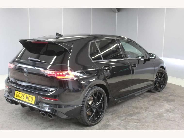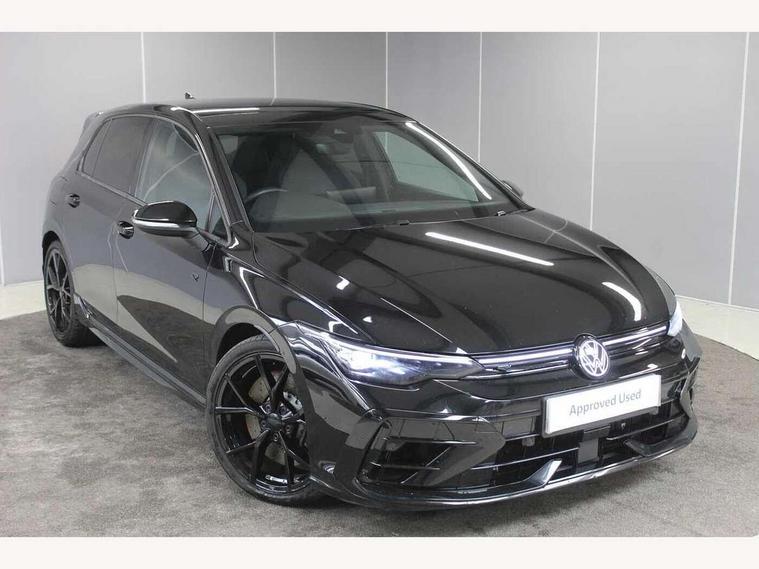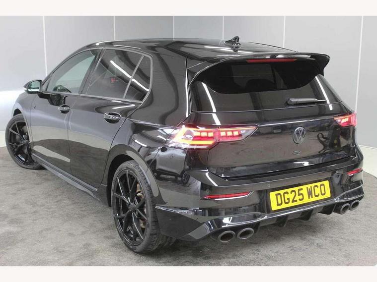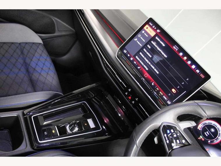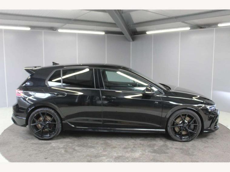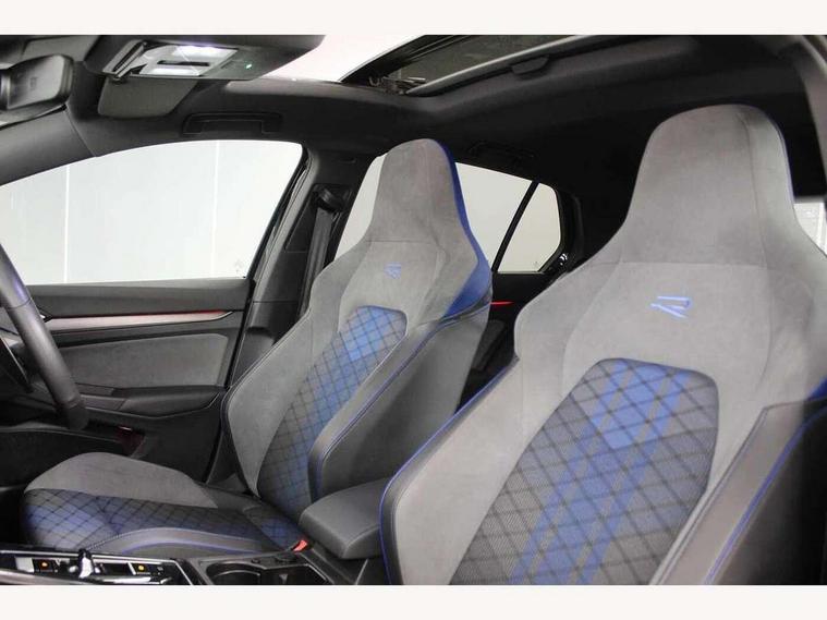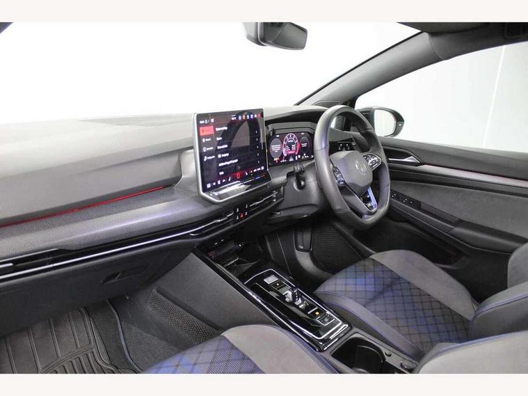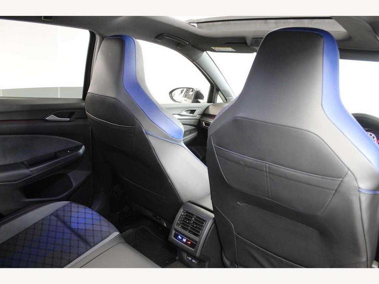 Activated carbon canister, Adaptive cruise control (ACC), Advanced driver attention and drowsiness monitor, Dynamic road sign display, E-Sim card for online connectivity, eCall emergency call system, Electronic maximum speed limit increased to 270 km/h, includes driving Modes 'drift' and 'special', larger roof spolier and GPS laptimer + G-Meter, Multi-color Digital cockpit pro, selection of different info profile possible, Multifunction front facing camera for distance control, Navigation system, Oncoming vehicle braking when turning including swerve support, Preparation for light assist system, Progressive steering, Side assist blind spot lane change system, rear traffic alert and exit warning system, Speed limiter, Speedo, rev counter, electronic odometer, trip, service interval display, exterior temperature and fuel gauge, Traffic jam assist, Voice enhancer and voice control, Warning signal and warning light for front and rear seatbelts not fastened, We connect plus preparation, We connect preparation, Wireless app connect, All wheel drive - 4Motion, Petrol Particulate Filter, Sports suspension, Start-stop system with battery regeneration (recuperation - energy recovery during braking), XDS electronic differential lock for improved traction and handling, 2 USB C ports in front, 2 USB charging sockets on the centre console in the rear charging capacity upto 45W, Comfort telephony + wireless charging, without wireless aerial connection, Digital radio reception (DAB), Diversity antenna for FM reception, Gaming platform via car app, Infotainment system with 12.9" display, Mobile phone interface with inductive charging feature, 3rd brake light, Auto dimming rear view mirror, Auto headlights, Automatic headlamp activation with Coming home and Leaving home feature, Black badge on B-pillar, Black mirror caps, Black strips on radiator grille and headlights, Body colour door handles, Darkened headlights, Darkened R Logos and VW logos in front, rear and on fender, Exhaust system with black tailpipe, Exterior ambient lighting with illuminated lighting animation and wake up/goodbye scenario, Exterior mirrors convex on the left and aspherical on the right, Front and rear electric windows, Front fog lamps and cornering light, Heat insulating windshield made of laminated glass, LED daytime running lights, LED matrix headlights with ambient light V2, advanced high beam, dynamic range contol with cornering, LED rear lamp with indicator, poor weather, R name plate, Rain sensor, Rear fog light on one side and reversing lights on both sides, Rear side wing doors, Rear tinted glass 65% light absorbing from B pillar backwards, Rear windscreen washer and wiper with interval delay, Remote electrically foldable door mirrors, puddle lights and reverse activated passenger's door mirror, Welcome light with surround lighting, 12V socket in front centre console, 12V socket in luggage compartment, 3 rear head restraints, 3 seat bench in 2nd row, 30 colour ambient lighting, illuminated center console storage compartment in front, Air care climatronic 3 Zone automatic climate control with rear air conditioning control panel, Aluminium gearshift handle, Brushed stainless steel pedals, Carpet mats, front and rear, Front centre armrest, Integrated front head restraints, ISOFIX anchors for child seats on outer rear bench seats and on front passanger seat compatible for i-Size, Luggage compartment lighting, Rear cupholder and loadthough, Single front passenger seat, Soul black instrument panel, Split folding backrest with centre armrest and unsplit rear seat bench, Storm grey roof lining, Sun visors with illuminated vanity mirrors, Driver assistance pack - Golf DSG Estate/Hatchback, R styling pack - Golf, Technology park and comfort pro package - Golf Hatchback, 3 point height adj front seatbelts + pretensioners, 3 rear three point seatbelts, ABS, Autonomous emergency braking front assist with pedestrian and cyclist monitoring, Child locks on rear doors, Disc brakes in rear incl. brake calipers in black with darkened R-logo, Driver and front passenger airbag with front passenger airbag deactivation, Electronic parking brake with auto hold, ESC (Electronic Stability Control), Extended pedestrian protection measures, Hill start assist, Two tone horn, Tyre pressure loss indicator, Volkswagen roadside assistance, Anti theft wheel bolts, Preparation for alcohol interlock, Wheel hub cover with darkened R-logo,