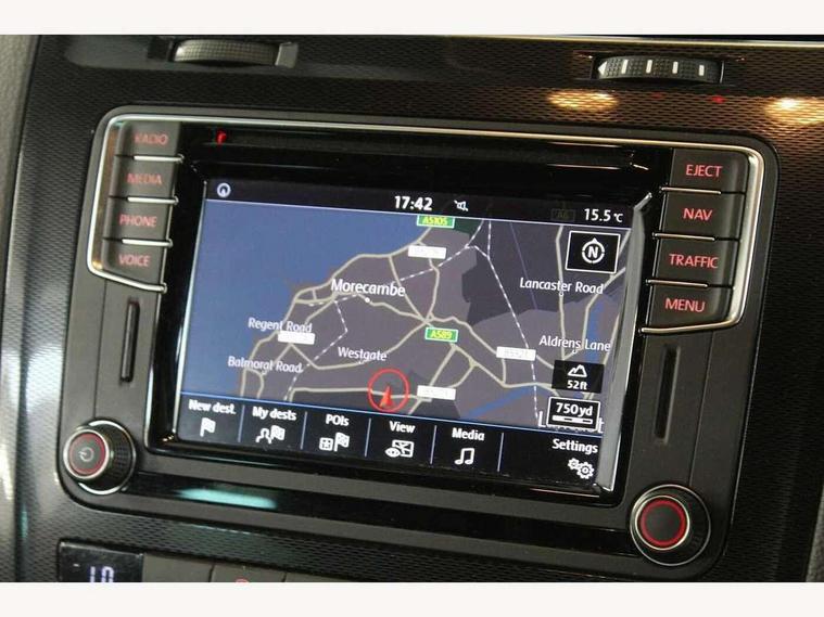 'Lights On' Reminder warning buzzer, Bluetooth system, Discover navigation system with 6.5" colour screen + radio/CD player and aux in, Exterior temperature gauge, Flat tyre indicator, Front and rear parking sensors, Multifunction computer - Highline, Rev counter, Service interval indicator, Speed sensitive variable PAS, DAB Digital radio, MDI with USB/iPod connection cables, Volkswagen media control, Auto dimming rear view mirror/rain sensor, Automatic activation of hazard warning lights, Body colour door handles, Body colour door mirrors with integral indicators, Body coloured bumpers, Coming home function, Dusk sensor + auto driving lights, Electric front windows, Electrically heated + operated door mirrors, Front fog lights, Intermittent rear wash/wipe, LED rear lights, Range adjustable headlights, Rear roof spoiler, 12V socket in luggage compartment, 2 bag hooks in luggage compartment, 2 cupholders, 2 rear head restraints, 2 Zone electronic climate control with automatic air recirculation, 3 spoke multifunction leather steering wheel with radio controls, 4 lashing points on luggage floor, 50/50 split folding rear seat backrest, Aluminium pedals, Black roof lining, Dust/pollen filter, Easy entry slide seats (access to rear seats), Front + rear carpet mats, Front centre armrest with storage compartment, Front footwell illumination, Front reading lights, Height adjustable front seats, Height/reach adjust steering wheel, Illuminated vanity mirrors, Interior light with delay, Isofix Preparation 2 Rear child seats, Leather gear knob, Leather handbrake grip, Lockable/illuminated air conditioned glovebox, Luggage compartment cover, Luggage compartment lighting, Sports front seats, Storage compartments in doors, 2 rear 3 point safety belts, 2x3 point front seatbelts with pre-tensioners, ABS+EBD+Brake assist, Door open warning reflectors, Driver/Front Passenger airbags, Driver/Passenger whiplash optimised head restraints, ESP with EDL + ASR, Front and rear curtain airbags, Front seat side impact airbags, Hill hold function, Passenger airbag deactivation system, Seatbelt warning, Two tone horn, Alarm with interior protection, Electronic engine immobiliser, Remote central locking with 2 remote folding keys, Brushed aluminium instrument surrounds, Chequered flag decorative inserts, Steel space saver spare wheel,
