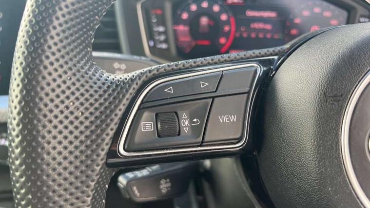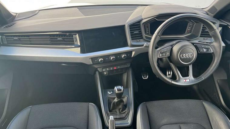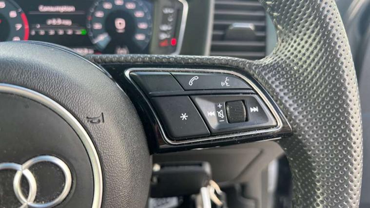 10.25" Digital instrument cluster display screen, Audi connect safety emergency and service including E-call, Audi drive select, Audi smartphone interface, Automatic start/stop system, Bluetooth interface, Driver's information system, Electromechanical power steering, Lane departure warning system, Service interval indicator, Speed limiter, Voice control system, Washer fluid level indicator, Sports suspension, 1 x SDXC card reader, 1 x USB type C and 1 USB type A charging points, Audi music interface, Bluetooth audio streaming, DAB Digital radio, MMI radio plus with 8.8" colour MMI display screen and MMI touch, Auto dimming rear view mirror, Body colour side sill mouldings, Body coloured bumpers, Body coloured door mirrors, Door sills with aluminium inlays and S Line logo, Electric front and rear windows, Front side air inlets in grained matt black and C frame in titanium black, Heat insulating glass windscreen and side windows, Heated rear windscreen, LED headlights with LED rear lights + dynamic rear indicators, Matt aluminium silver tailpipe trim, Matt black radiator grille frame, Matt platinum grey in front spoiler clip and rear diffuser clip, Rain and light sensors, Rear fog lights, Rear wiper, S line badges on front wings, S line exterior bumpers, S line roof spoiler, Side air inlet frames titanium black, Side front spoiler lips in grained matt black, 12V socket in centre console with two cup holders, 3 rear seats, Black cloth headlining, Driver and passenger seat with manual height adjust with forward and backwards adjustment, Front and rear black floor mats with contrast stitching in fine silver, Front head restraints, Height and reach adjustable steering wheel, ISOFIX child seat mounting in front passenger and rear outer seats, Leather gear knob with aluminium trim, Leatherette handbrake grip, Luggage compartment light with front and rear reading lights, Lumbar adjustment for front seats, Rear head restraints, Split folding rear seats, Stainless steel pedals, 3x3 point rear seatbelts, Audi pre-sense front with pedestrain and cyclist recognition, Brake assist function, Driver and front passenger airbag with front side and head airbags, Electronic Stability Control including ABS, EBD, ASR and EDL, Front and rear seatbelt reminder, Front passenger airbag deactivation switch, Hill hold assist, Seatbelt height adjustment for front seats, Seatbelt monitoring, Tyre pressure warning light, Warning triangle and first aid kit, Anti theft alarm, Anti theft wheel bolts and loose wheel warning, Immobiliser, Remote central locking with 2 remote folding keys, Aluminium trim for control switches, air vents and digital instrument cluster, Silver grey inlays polygon structure in diamond paint finish, Structured grey accent areas including air vents, door handle recesses and centre console in quartz paint finish,