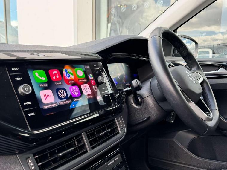 'Lights On' Reminder warning buzzer, Adaptive cruise control including front assist, forward collision warning, autonomous emergency braking, speed limiter, Blind spot monitoring, Bluetooth telephone and audio connection for compatible devices, Car information display, Digital cockpit, Driver alert system, eCall emergency call system, Lane assist, Low washer fluid warning light, Multifunction computer with visual gear change recommendation for fuel consumption, Operating permit alteration, Power assisted speed sensitive steering, Speedo, rev counter, electronic odometer, trip, service interval display, exterior temperature and fuel gauge, Stop/start system, Warning sound and light for doors and tailgate open, Warning sound and light for front seatbelts unfastened, We Connect Go Dongle, Wireless Car net app connect with Apple CarPlay, combined functionality of Apple CarPlay/Android Auto and MirrorLink, Battery regeneration during braking, Misfuel prevention device, 2x USB connection with USB charging sockets and in rear centre console, DAB Digital radio receiver, Diversity antenna for FM reception, Multi device interface (MDI) with USB connection, Music playback - MP3, WMA and AAC files, Premium USB cable for Apple or Android smartphone compatibility, Simultaneous pairing of 2 compatible mobile devices, Title and cover art display, Automatic hazard lights activation under emergency braking, Black door mirrors, Black roof rails, Body colour door handles, Body coloured bumpers, Dusk sensor + automatic driving lights, Electrically foldable, adjustable and heated door mirrors with reverse activated kerb view adjustment on passenger's side, Front and rear electric windows, Front fog lights with static cornering function, Galvanised body, Heated rear window, LED third brake light, Lower door sills and door pillars in black, Radiator grille with high gloss surface and chrome strip, Rear fog light on one side, reversing light on both sides, Rear lights incorporating LED technology, Rear side wing doors, Rear tinted glass 65% approx light absorbing from B pillar backwards, Rear window aerial, Rear windscreen washer and wiper with interval delay, Reflectors in all doors, Tailgate with integrated roof spoiler, Windscreen wipers/ intermittent wipe + 4 position delay, 12V Accessory socket in centre console, 3 rear head restraints and 3 rear three point seat belts with ECE label, 3 seat bench in 2nd row, 60/40 split folding rear seat backrest, Comfort front sport seats, Diag cloth upholstery, Drawer under drivers seat, Driver and front passenger sunvisor with vanity mirror, Driver's sunvisor with ticket holder, Dust and pollen filter, Front + rear carpet mats, Front and rear reading lights X 2, Front centre armrest with storage compartment, Front seat back storage pockets, Front seats with adjustable lumbar support, Glovebox, Heating and fresh air system with 4 stage blower, Height/reach adjust steering wheel, Instrument lighting white adjustable panel illumination, Interior light with delay, Isofix child seat preparation for 2 rear child seats, Luggage compartment cover, Luggage compartment lighting, Manual air conditioning, Moveable and foldable Rear bench seat, Single front passenger seat, Storage compartment in drivers and front passengers door, Three spoke multi-function leather trimmed steering wheel and gearknob, Variable boot floor, Anti-lock Braking System (ABS) with Hydraulic Brake Assist (HBA), Automatic post collision braking system, Driver and front passenger safety-optimised head restraints, Drivers and Front Passengers airbags with front passengers airbag deactivation switch, ESC with EDL, ASR, EDTC and trailer stabilisation function, Front and rear curtain airbags, Front disc brakes and rear drum brakes, Front seat side impact airbags, Height-adjustable front three-point seat belts with tensioners, Hill start assist, Pre crash preventive occupant protection, Rear door child safety locks, Rigid safety cell with front and rear crumple zones, Single torn horn, Tyre pressure loss indicator, Volkswagen roadside assistance, Alarm with interior protection and deactivation via infotainment system, Child security locks in rear doors, Electronic engine immobiliser, Remote tailgate unlocking using key fob, Decorative inserts transition high gloss black/platnium grey, 17" Manila black diamond turned surface alloy wheels + anti theft wheel bolts, Breakdown kit,