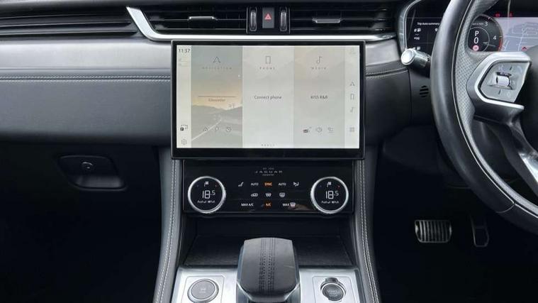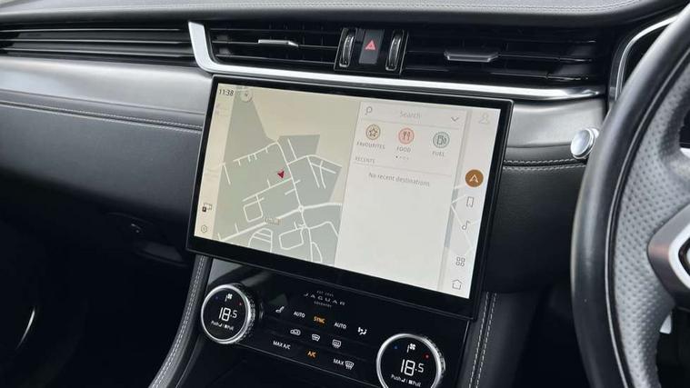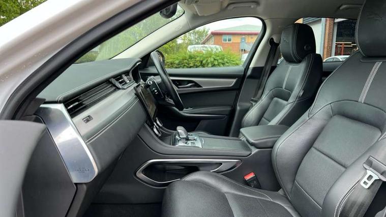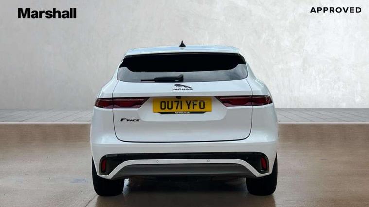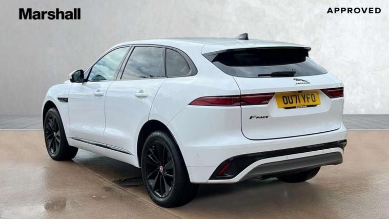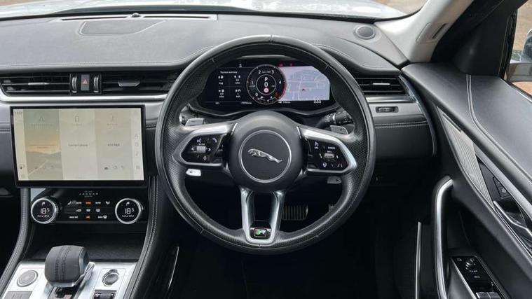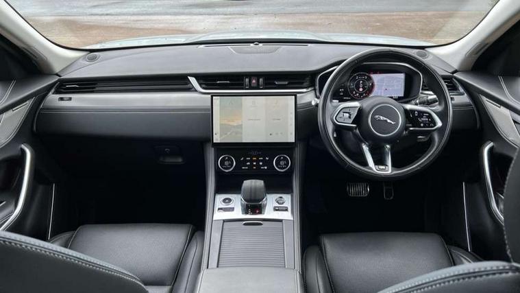 11.4" touchscreen, Android Auto, Apple car play, Blind spot assist, Bluetooth connectivity, Clear exit monitor, Driver alert system, Driver condition monitor, Eco driving style assistant, Electric power assisted steering, InControl remote, Interactive Driver display instrument cluster, Jaguar Toggle shift selector, Lane departure warning system, Lane keep assist, Outside temperature gauge, Personalisation profile management, Pivi pro connected navigation system with app interface and media storage, Pro services and wifi hotspot, Push button starter, Rear traffic monitor, Service interval indicator, Speed proportional steering, Start up sequence with movement in dials and lighting, Traffic sign recognition with adaptive speed limiter, Trip computer, Voice control system, 8 speed automatic transmission, All terrain progress control, All Wheel Drive (AWD), Open differential with torque vectoring by braking, AM/FM radio, Bluetooth streaming, DAB Radio (Digital Audio Broadcasting), Dynamic volume control, InControl apps, InControl protect, iPod integration, 3 flash lane change indicators, Animated directional indicators, Approach Illumination, Auto dimming rear view mirror, Automatic headlights, Body colour door mirrors, Electric heated/power fold memory door mirrors with approach lights and auto dimming driver side, Electric windows with one touch open/close and anti trap, F-Pace badge, Green tinted glass, Heated front windscreen + heated washer jets, Heated rear window with timer, Illuminated metal tread plates with Jaguar script, Jaguar script and leaper, LED tail lights, Non acoustic front windscreen, R Dynamic badge on side door, Rain sensor windscreen wipers, Rear fog lights, Rear metal tread plates, Rear wiper, Trailer stability assist, Variable front intermittent wipers, 12V power point front, 3 rear headrests, Air distribution speed, Bright metal foot pedals, Centre armrest console, Centre console with side storage, Door sill tread plates, Electrically adjustable steering column, Fold flat front seats, Front centre armrest with storage compartment, Front door storage space, Glovebox finisher with jaguar script, Heated steering wheel, Hooks in loadspace, Illuminated glovebox, Interior front door handles with separate locking switches, ISOFIX on outer rear seats, Jaguar sense, Luggage tie downs in loadspace, Mist sensing, Multifunction steering wheel, Overhead lighting console, Overhead stowage for sunglasses, Passive front head restraints, Premium cabin lighting, Premium carpet mats, R-Dynamic branded leather steering wheel, Rear air vents, Rear armrest with twin cupholders, Rear centre headrest, Rear door storage space, Reversible boot floor, Satin chrome gearshift paddles, Shopping bag hook, Sunvisors with illuminated vanity mirrors, Twin front cupholders with cover, Online Pack with data plan - F-Pace, 355mm front brakes and 325mm rear brakes, 3x3 point rear seatbelts, ABS, All surface progress control (ASPC), Brake pad warning light, DSC - Dynamic Stability Control, Electric parking brake (EPB), Emergency brake assist, Front airbags with passenger seat occupant detector, Front and rear seatbelt reminder, Front side airbags, Full length side window curtain airbag, Hill launch assist, Power operated child locks, Torque vectoring brake, Traction control, Tyre pressure monitoring system, Immobiliser, Keyless entry, Keyless Start, Locking wheel nuts, Perimeter alarm, Remote central locking, Valet mode,