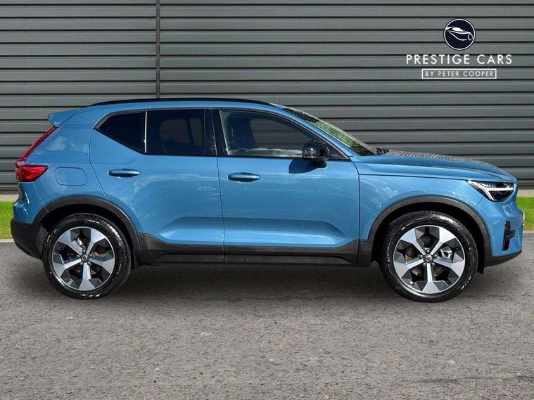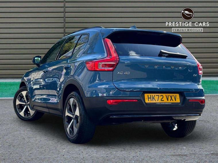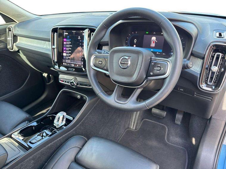 12.3" Progressive Driver Display, 360 degree surround view parking camera with side proximity sensors, 9" centre console portrait touch screen, Adjustable steering wheel force, Bluetooth hands free telephone kit, E-call, Front park assist, Google automatic services - Nav with google maps, apple carplay/android auto, voice recognition with google assistant, Hands free power tailgate, Lane keep assist with driver alert control, Oncoming Lane Mitigation, Rear park assist, Speed limiter, Speed sensitive steering, Wireless/Inductive Mobile Phone Charging, Dynamic chassis, DAB Digital radio, Premium Sound by Harman Kardon, Dolby Pro Logic II Surround Sound, Dirac Unison, 12 speakers/600W and subwoofer, Steering wheel mounted remote controls, Active bending pixel LED headlights with adaptive shadow technology, Active high beam incorporating daytime running lights, Adaptive brake lights with high level LED brake lights, Auto dimming interior mirror, Automatic headlamp levelling, Dark tinted windows for rear door side windows and cargo compartment, Front aluminium tread plates, Front and rear electric windows, Headlight cleaning system, High gloss black front and rear skid plate, High gloss black mesh front grille with high gloss black surround, High gloss black window trim, Home safe and approach lighting, Integrated roof rails in high gloss black, LED front fog lights, Power glass tilt and slide panoramic sunroof with sun curtain, Puddle lights, Rain sensor with automatic windscreen wiper activation, Rear side wing doors, Rear wiper, Roof antenna, Roof spoiler, Visible VIN plate, 12V socket in front tunnel console and luggage compartment, 2-Zone electronic climate control with CleanZone air quality system and pollen filter, 3 seat bench in 2nd row, 3 Spoke tailored steering wheel with chrome trim, 60/40 versatile split folding rear seat, A-pillar parking ticket holder, Ambient front door and instrumental panel lighting, Centre console cupholders and storage, Flexible load floor and grocery bag holder, Floor mats, Front door pocket and front cupholder illumination, Front footwell illumination, Front headrests, Front reading light and theatre lighting, Front seat cushion extensions, Front tunnel pocket, Glovebox bag hook, Heated front seats, Height adjustable passenger seat, Height/reach adjustable steering column, High gloss centre tunnel deco, Illuminated glovebox, Illuminated luggage compartment, Illuminated tailgate, Illuminated vanity mirrors, Integrated waste bin, Isofix attachments on outer rear seats, Load protection net, Multi directional lumbar support, Power driver seat with memory + exterior mirrors memory, Power folding rear headrests, Power passenger seat, Rear armrest / integral cup holders / storage tray, Rear reading and courtesy lights, Single front passenger seat, Underfloor cargo storage, Climate pack without heated front seats - XC40, Driver assist pack - XC40, 3x3 point rear seatbelts, City safety with steering support with Pedestrian + cyclist + front collision warning with full auto brake and rear auto brake, Drivers knee airbag, Dual stage driver/passenger airbags, Electronic parking brake with auto hold, First aid kit, Front and outer rear seatbelt reminder and pretensioners, Front seats SIPS airbags, Hill descent control, Hill start assist, Inflatable curtain, Passenger airbag cut-off device, Power child locks on rear doors, Road sign information display, Run off Road Mitigation, Run off Road Protection, SIPS (Side Impact Protection System), Slippery road and hazard light alert, Stability and Traction Control with Spin control, Engine Drag Control and Corner Traction Control, Tyre pressure monitoring system, Vehicle deceleration control with Anti-lock Brake System, Electronic Brake Distribution and Emergency Brake Assist, Warning triangle, WHIPS whiplash protection system - front, Anti-theft alarm including immobiliser/volume sensor + level sensor, Key integrated remote control central locking + fuel flap with deadlocking system and auto open/close power windows, Keyless drive includes keyless entry and keyless start, Locking wheel nuts,