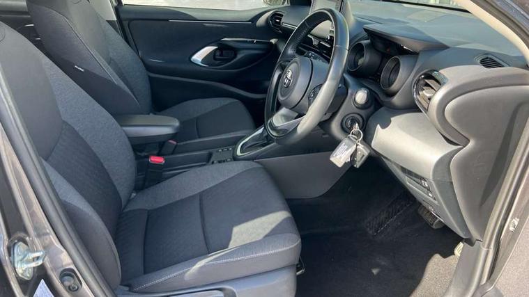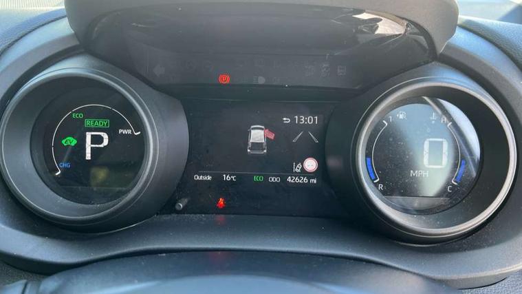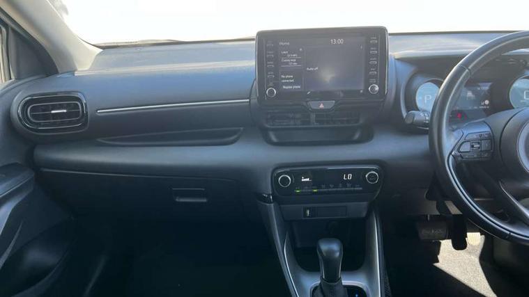 Adaptive cruise control, Adjustable speed limit with speed warning, Bluetooth connectivity, Colour binocular inspired displays with digital speedometer, E-call, Electric power steering, Hybrid energy display, Multi information display switches on steering wheel, Reversing camera, Smartphone integration with Apple CarPlay and Android auto, Tailgate, Voice recognition, Vehicle Stability Control (VSC), 4 speakers, 8" Multimedia display touch screen, USB connection, Acoustic windscreen glass, Auto windscreen wipers, Automatic headlights, Body coloured door mirrors, Electric adjustable heated door mirrors, Follow me home headlights, Front auto power windows with anti jam protection, Full LED rear lights, LED daytime running lights, LED front fog lights, LED front light guide, LED Headlights, LED High mounted stop lamp, LED Indicators, LED rear light guide, Manual headlight levelling, Painted chequered front grille, Rain sensor, Rear auto power windows with anti jam protection, Rear privacy glass, Rear side wing doors, Rear spoiler, Rear wiper, Shark fin antenna, Turning signal integrated indicators in door mirrors, Variable front intermittent wipers, 3 adjustable rear headrests, 3 spoke leather steering wheel, 60/40 split folding rear seat, Active headrests, Adjustable boot height, Auto air conditioning, Coat hooks in rear grab handles, Cup holders (2 front & door), Data Communication Module (DCM) connected services, Fabric upholstery, Front armrest, Glovebox, Grey roof lining, Height adjustable driver's seat, Isofix seat fixing, Leather gearshift, Pollen filter, Shopping bag hooks, Single front passenger seat, Tilt/telescopic steering column, 3 point seatbelts on all rear seats, ABS+EBD+Brake assist, Electronic parking brake, Emergency brake light system (EBS), Front passenger airbag on/off switch, Front seatbelt reminder, Hill start assist control (HAC), Rear child proof door locks, Rear seat belt reminder, Supplemental Restraint System (SRS) 8 airbags: Driver & passenger's airbags, dual side curtain airbags, side impact airbags, front centre airbag, Toyota Safety Sense 2, Precollison + Night time Pedestrian & Cyclist Detection, Lane Trace Assist, Auto High Beam, Intelligent ACC & Road Sign Assist, Tyre pressure warning system, 2x Master key, Alarm/immobiliser, Remote powered central double locking doors, Soft touch instrument panel, Space saver spare wheel,