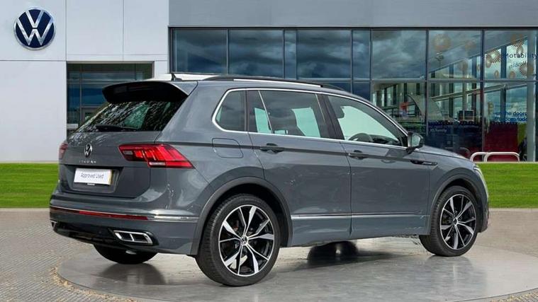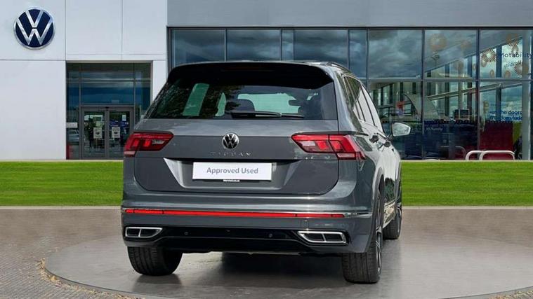 Adaptive cruise control ACC stop and go including speed limiter, App-Connect incl. App-Connect Wireless for Apple CarPlay and Android Auto, Bluetooth phone integration system, Distance control assist, Driver alert system, Driver profile selection, Dynamic road sign display, eCall emergency call system, Electromechanical speed sensitive power steering, Engine start/stop button, Lane keeping system Lane Assist, Lights on warning, Multifunction front facing camera, Outside temperature display, Premium multifunction display with multi colour display, Remote control boot opening, Rev counter, Revision / skills operating concept travel assistant, Service interval indicator, Speed limit display, Start/stop system with regenerative braking, Trip computer, Warning sound and light for doors and tailgate open, Battery regeneration during braking, XDS electronic differential lock for improved traction and handling, 4 X 20 watt output, 8 speakers, Diversity antenna for FM reception, Radio, SD card slot, Simultaneous pairing of 2 compatible mobile devices, SMS functionality - read, compose and send SMS messages using touch-screen display, Title and cover art display, USB C ports, Auto dimming interior rear view mirror, Automatic headlight control system, Body colour door handles, Chrome moldings on the side windows, Coming/leaving home lighting function, Dynamic headlight range control, Front and rear electric windows, Heated rear window, High level 3rd brake light, Laminated safety glass windshield, heat and sound insulating, LED headlamps with LED separate daytime running light and dynamic cornering light, LED rear combination lamps, LED rear number plate lights, License plate carrier in front and rear, Poor weather light and cornering light, R Line body kit, R Line side sills, Rain sensor windscreen wipers, Rear exhaust tailpipe, Rear fog lamp, Rear side wing doors, Rear spoiler in R style, Rear windscreen washer and wiper with interval delay, Side and rear windows in heat insulating glass, Trailer Stability Programme, Unique R Line badging, Windscreen wipers/ intermittent wipe + 4 position delay, 12V outlet in center console rear and in luggage compartment, 12V outlet in front and tray, 2 cup holders in front, 2 LED front reading lights, 2 LED rear reading lights, 3 bench rear seats in 2nd row, 3 rear headrests, 4 load lashing points, 40:20:40 split folding rear seats, Air Care Climatronic 3 zone automatic climate control with enhanced air filter and controls in the rear, Backrest release for left front seat, Black headlining, Brushed stainless steel pedals and footrest, Carpet mats in front and rear with decorative stitching in Gray, Climate control unit rear with touch function, Door and side trim panel in foam film, insert in leatherette, Front centre armrest, Front footwell illumination, Front seats head restraints (x-adjustment), Height adjustable front seats, Height/reach adjust steering wheel, Instrument lighting white adjustable panel illumination, Interior light with delay, Isofix Preparation 2 Rear child seats, Leather gear knob, Lockable cooled glovebox, Luggage compartment lighting, Luggage net, Rear bench seat asymetrically split folding, longitudinally movable and folding with load-through hatch and center armrest, Remote unlocking for rear seat backrest, Removable luggage cover, Removable rear headrests, Safety optimised front head restraints, Single front passenger seat, Sliding/reclining rear seats, Standard rear seat release, Storage compartment in driver's door, Storage compartment in passenger's door, Storage compartment in rear doors, Storage compartments in luggage area left and right, Storage tray on dashboard, Sun visors with illuminated vanity mirrors, Tool kit, Top front comfort seats, Variable boot floor, height adjustable and removable, Driver assistance pack plus - Tiguan DSG, 3 point seat belt for centre rear seats, 3 point seat belts with seat belt pretensioners for the outer rear seats, Active bonnet, Curtain airbags for front and rear passengers, Driver/Front Passenger airbags, Drivers knee airbag, Electronic parking brake with auto hold, Electronic Stability Control with driver steering recommendation, ABS, ASR, EDL, EDTC and trailer stabilization, Front assist with autonomous emergency braking (for Adaptive Cruise Control ACC up to 130 mph), Front disc brakes, Front passenger airbag deactivation, Front side airbags, Height adjustable front 3 point seatbelts + pretensioners, Hill hold control, Manual child proof rear door locks, Pedestrian monitoring system, Power assisted brakes, Proactive passenger protection system in combination with front assist, Rear disc brakes, Rigid safety cell with front and rear crumple zones, Two tone horn, Warning sound and light for front seat belts if unfastened, Anti theft alarm system with interior monitoring, backup horn and towing protection, Anti theft wheel bolts, Electronic engine immobiliser,